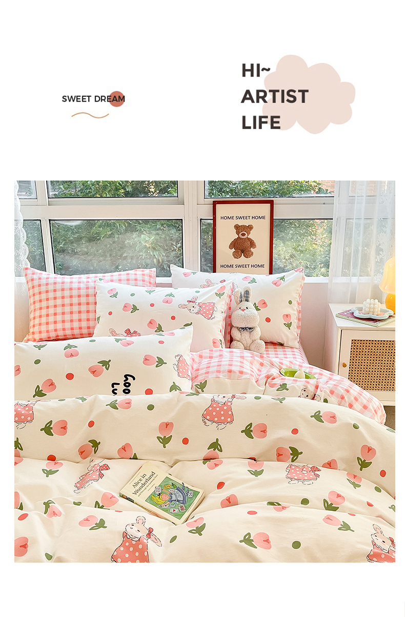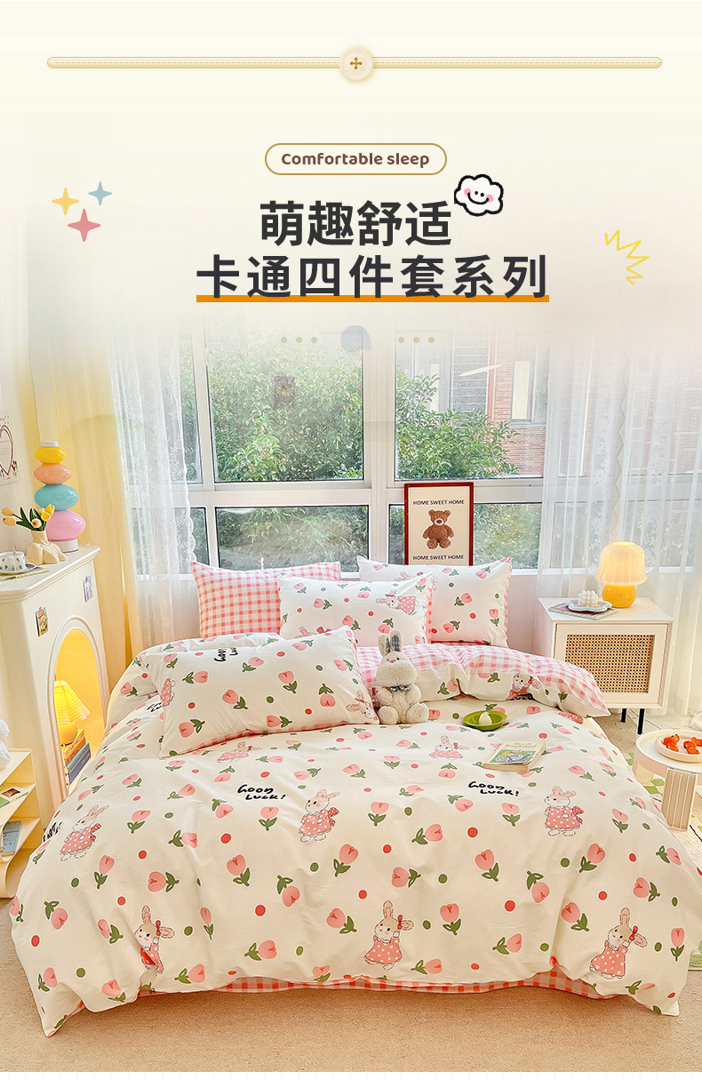 吉象家纺13070全棉四件套纯棉四件套直播小清新男孩女郁金香粉兔