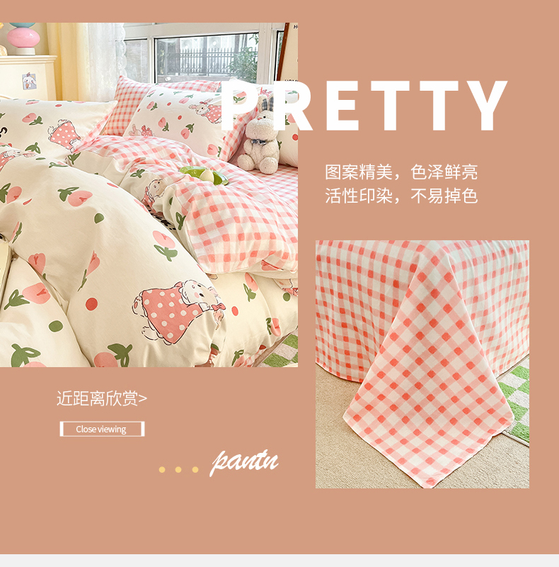 商品名称:吉象家纺13070全棉四件套纯棉四件套直播小清新男孩女郁金香粉兔