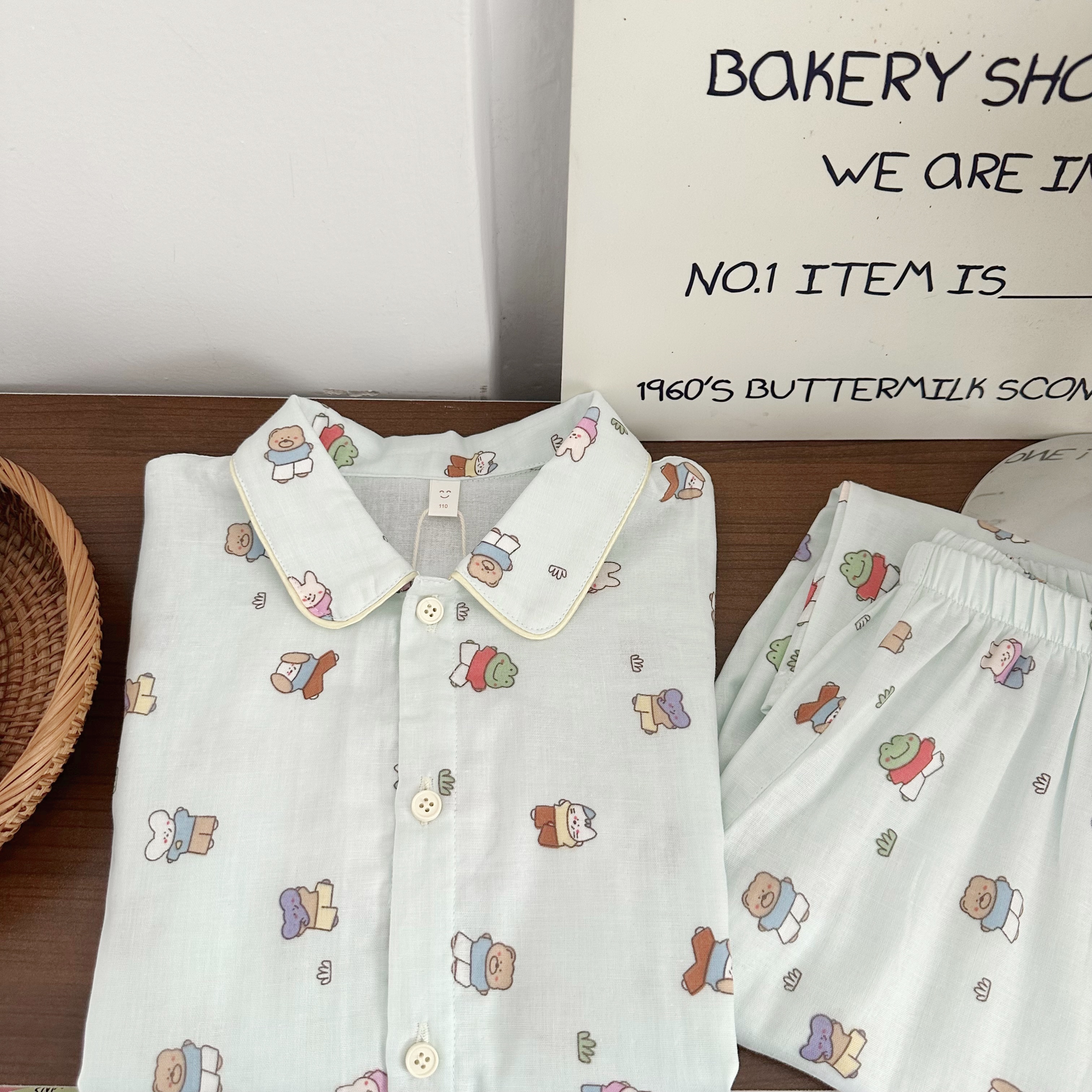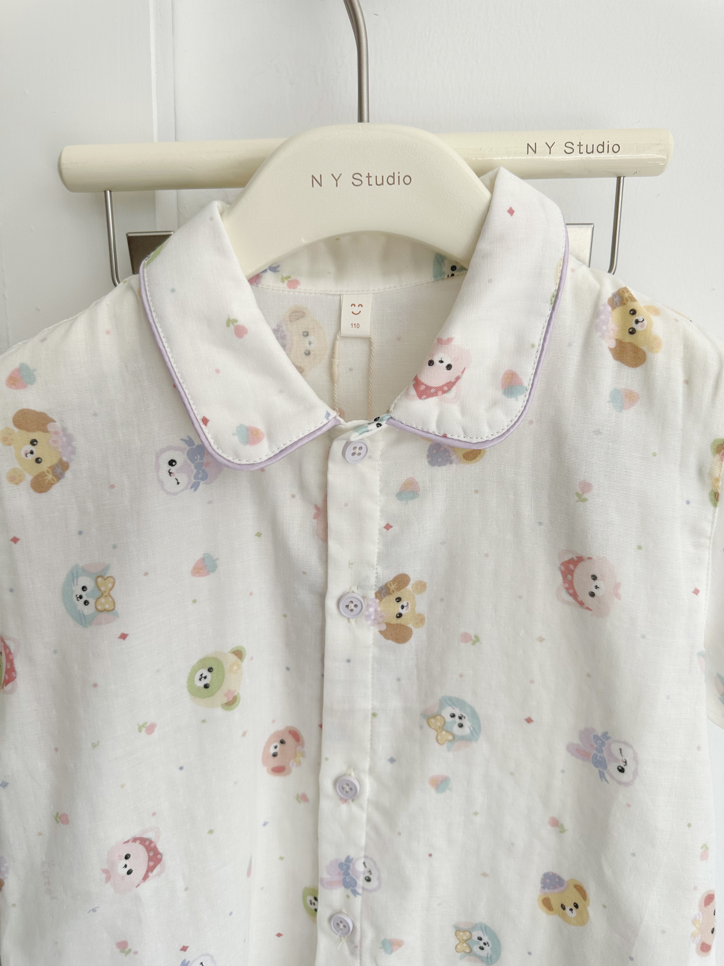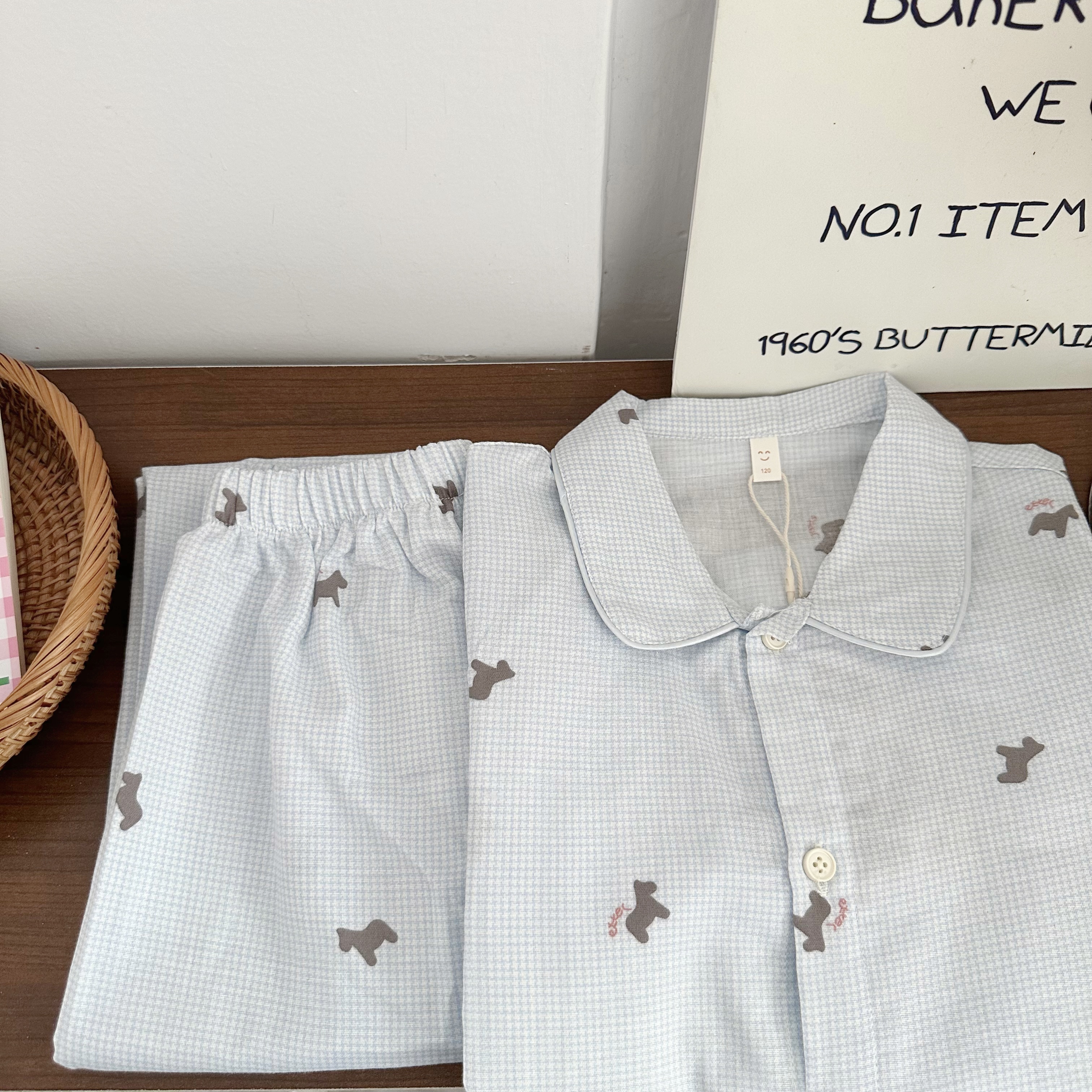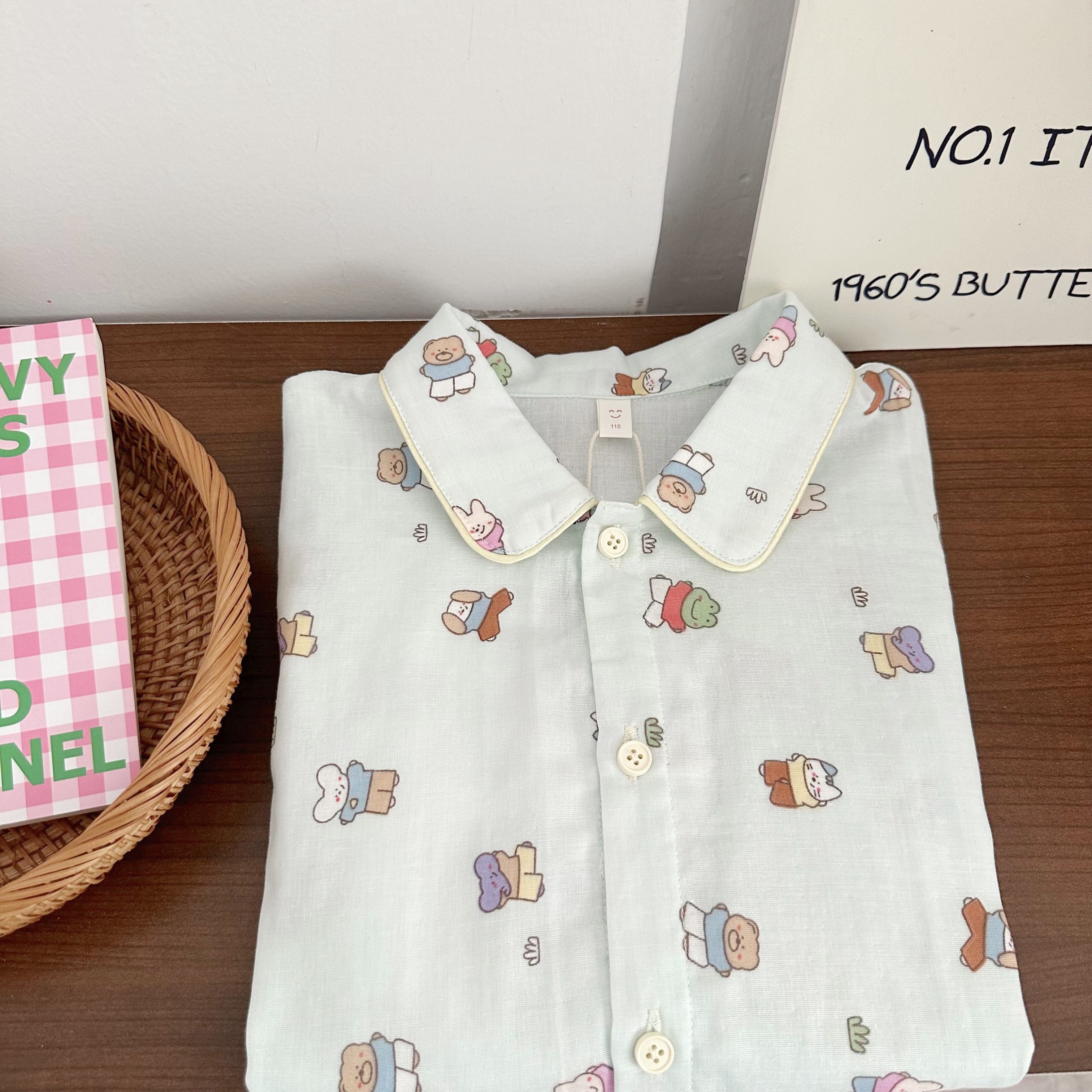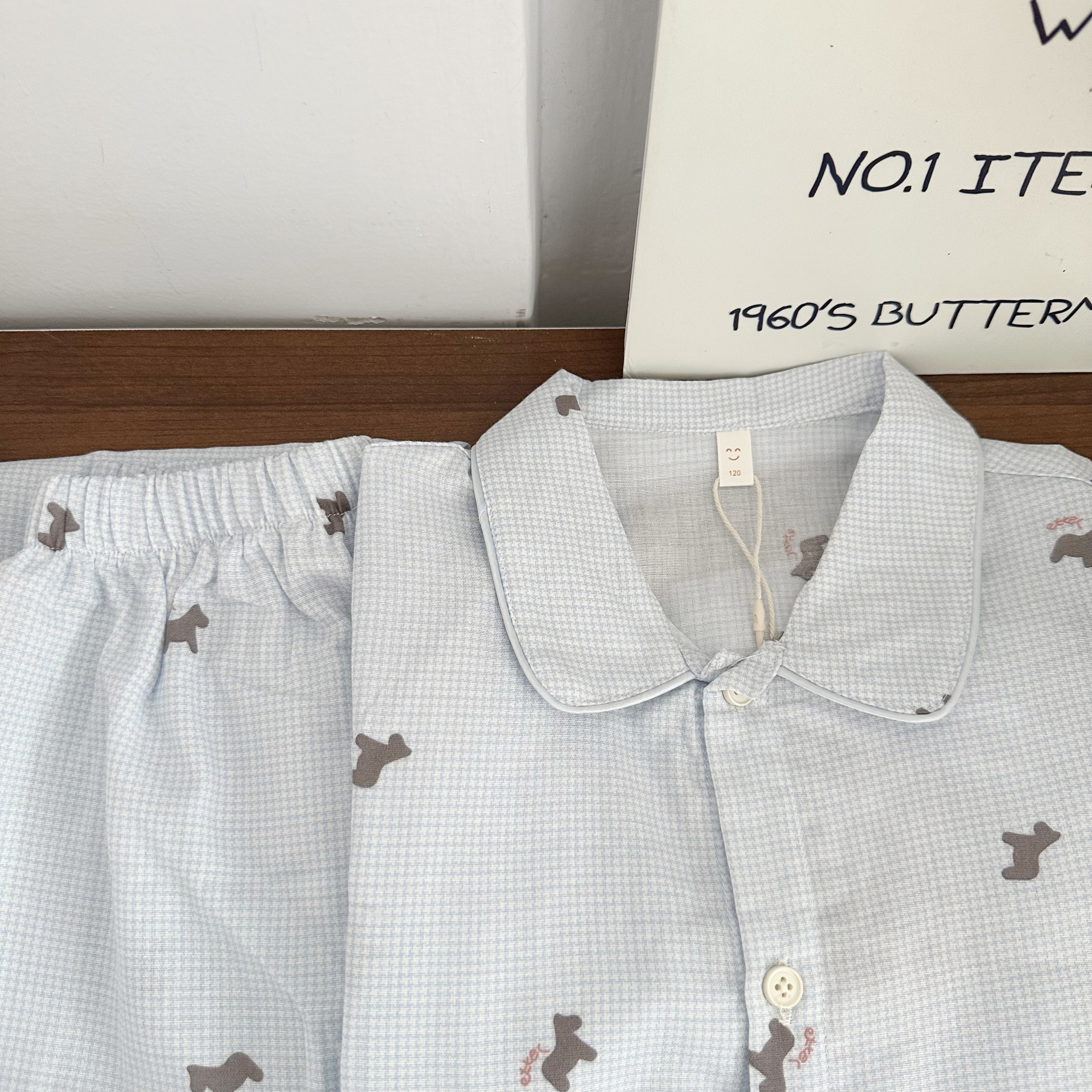 (总)纽约生活 2025新款绉布圆领开扣长袖长裤(会员-5),波比熊,黑碎花猫咪,蝴蝶结粉熊,花花狗,蓝碎花,塞纳花房