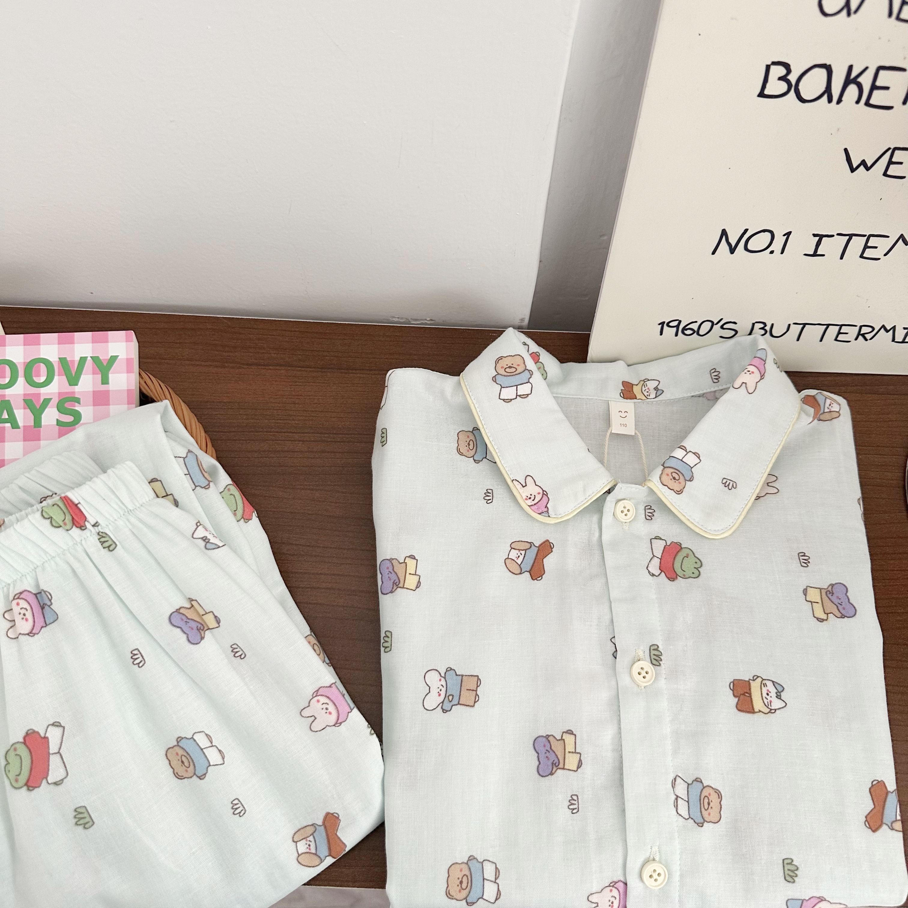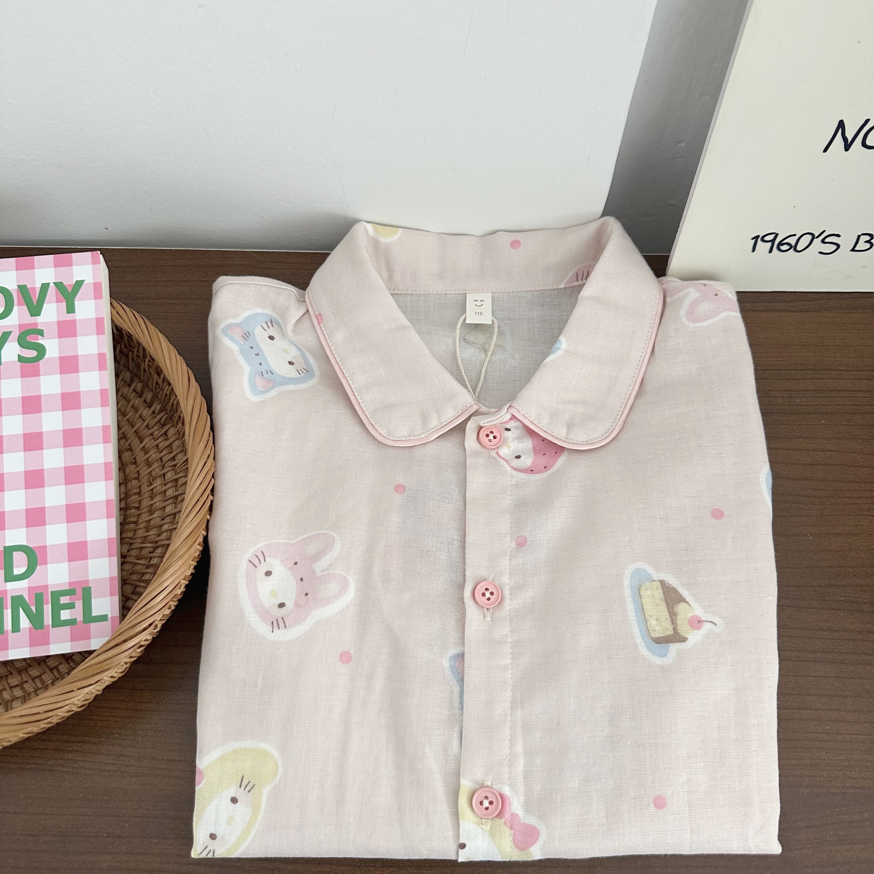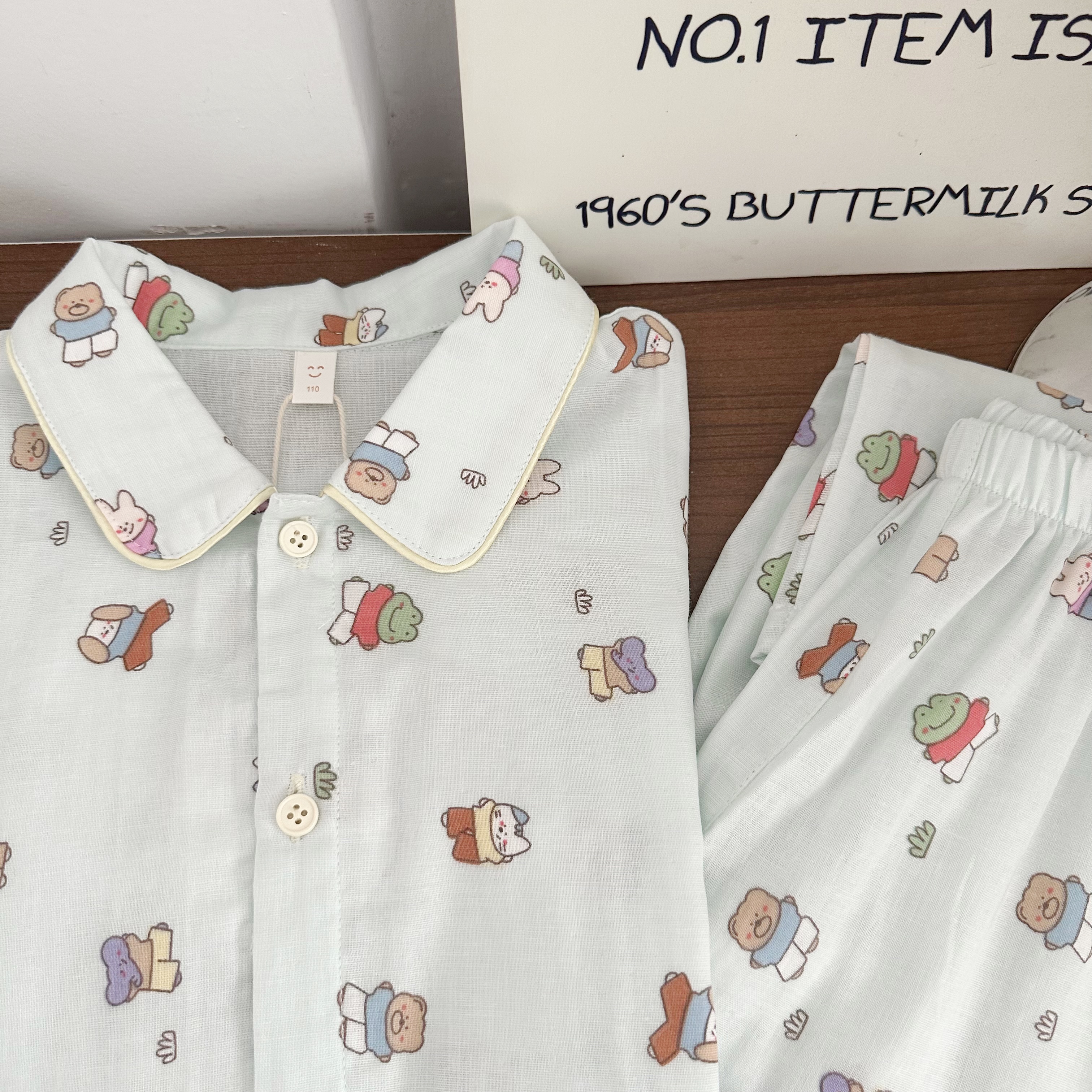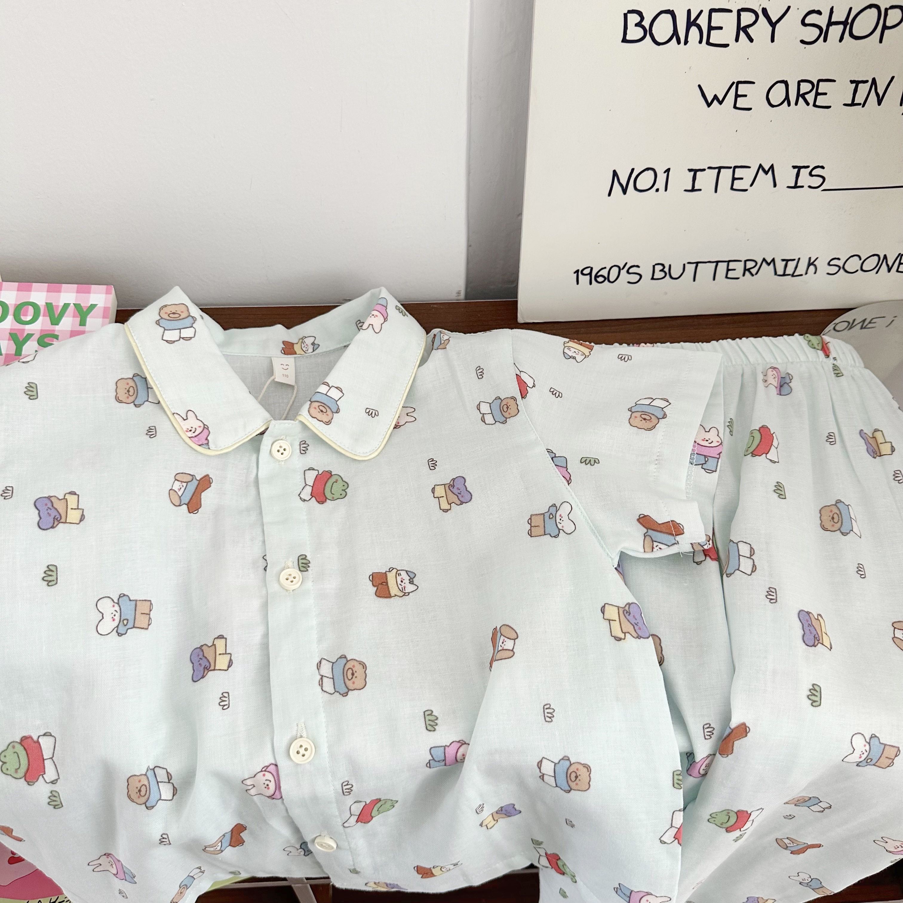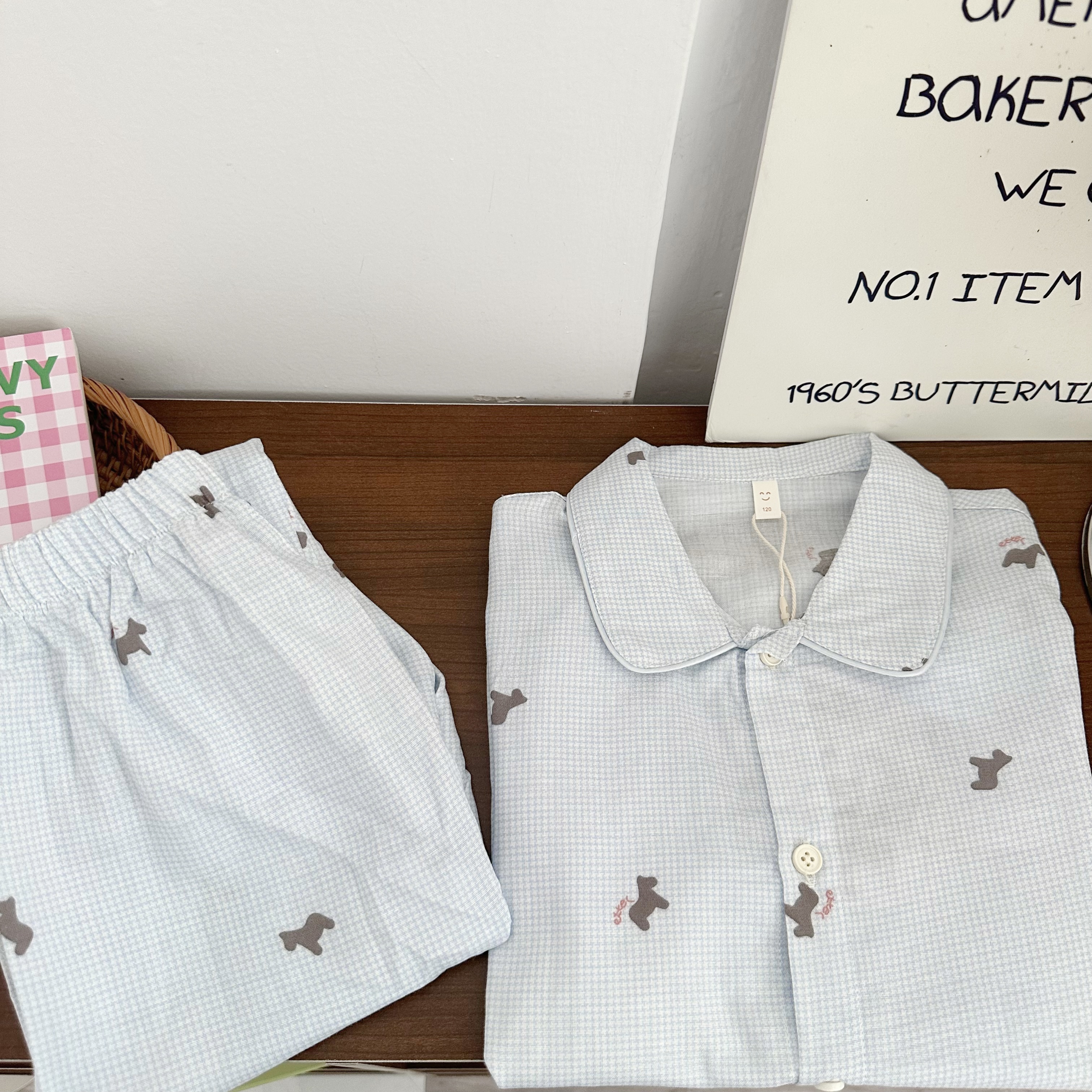 (总)纽约生活 2025新款绉布圆领开扣长袖长裤(会员-5),波比熊,黑碎花猫咪,蝴蝶结粉熊,花花狗,蓝碎花,塞纳花房