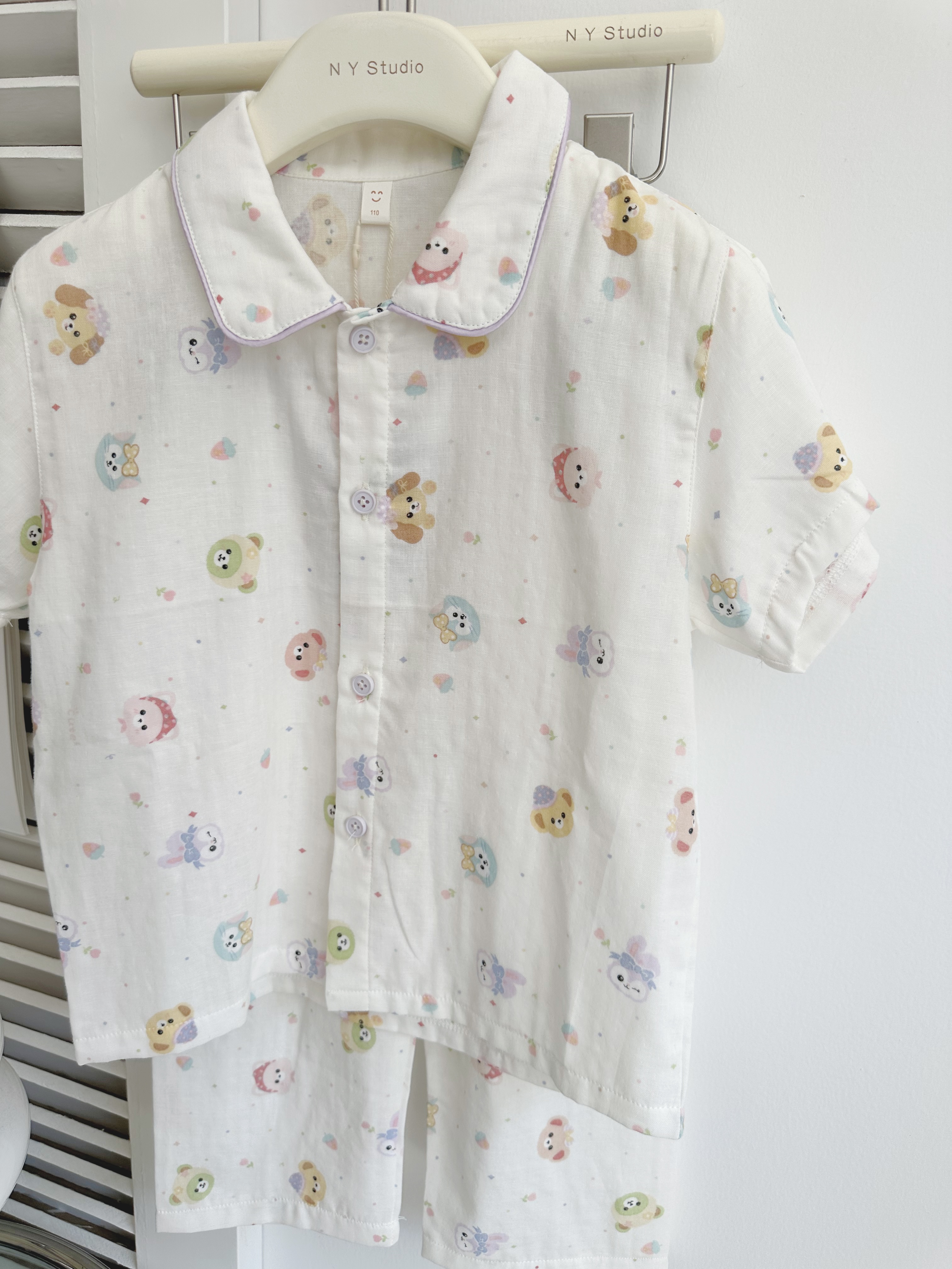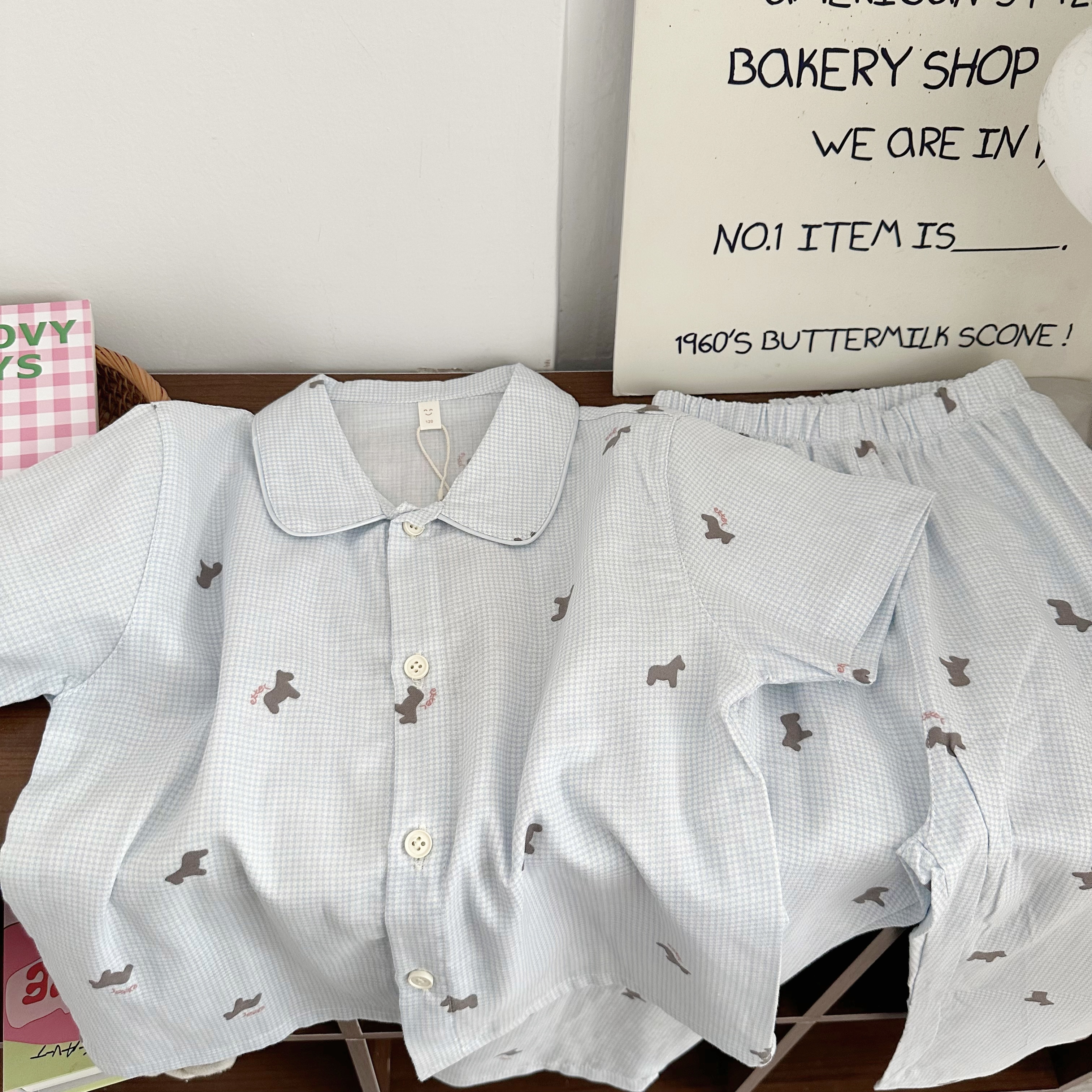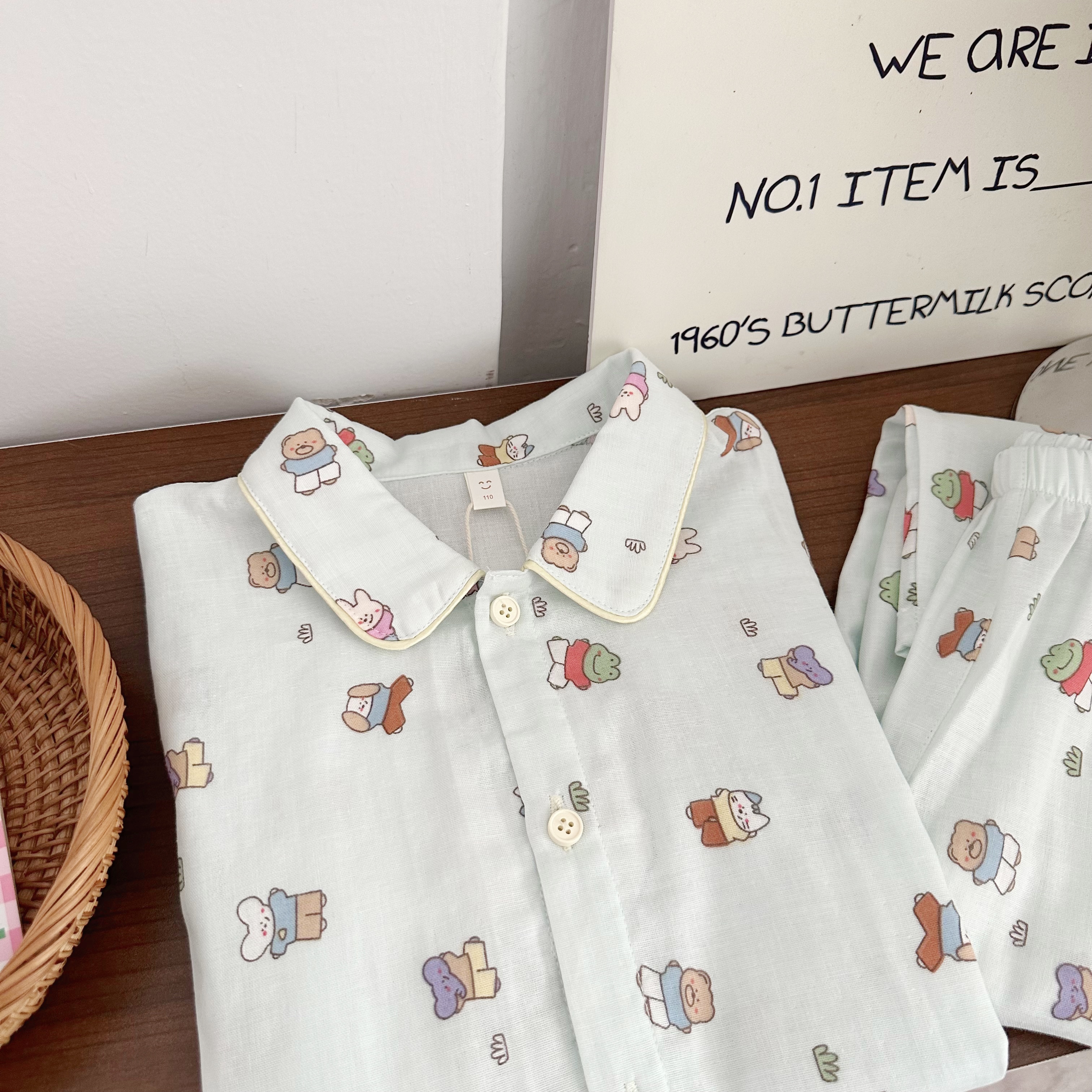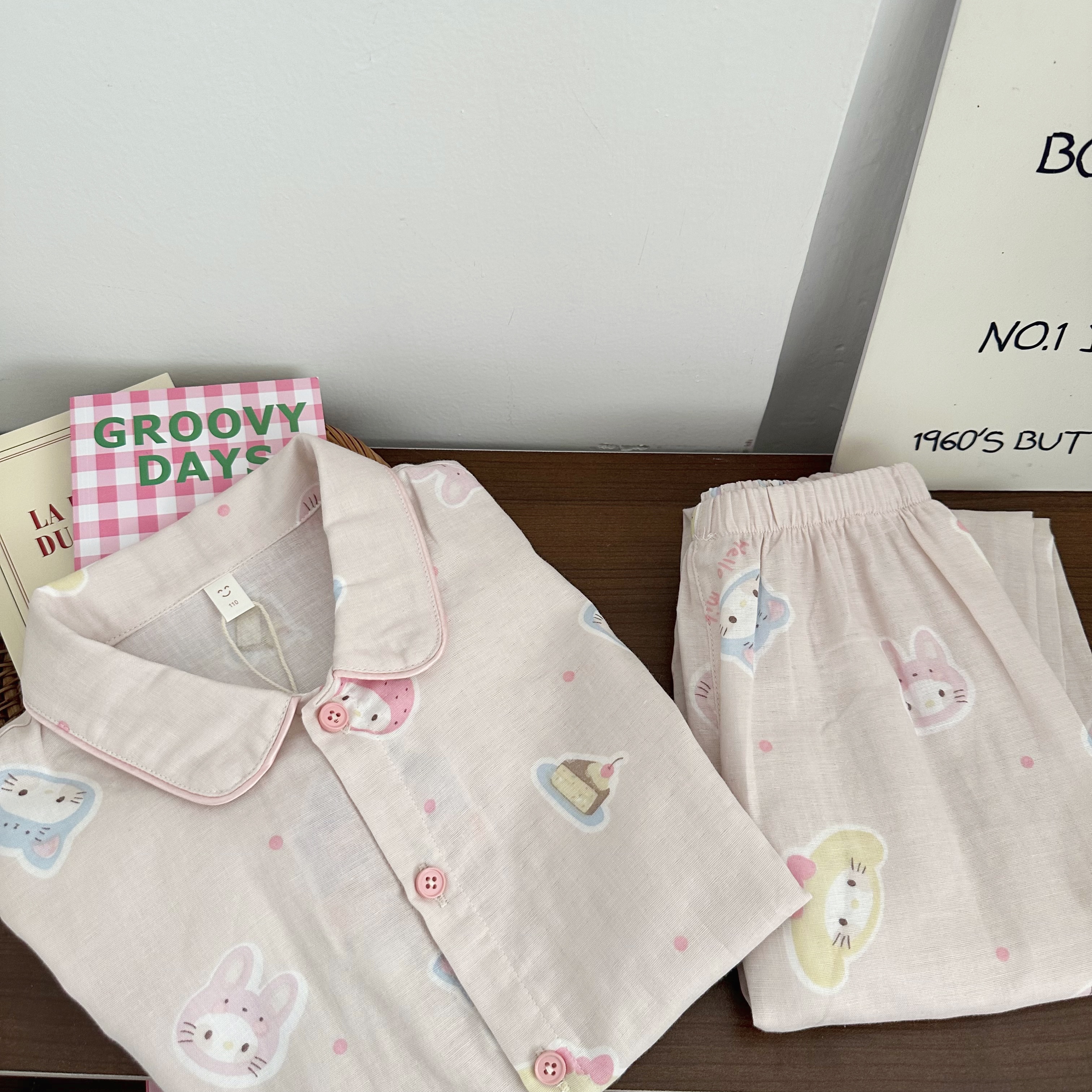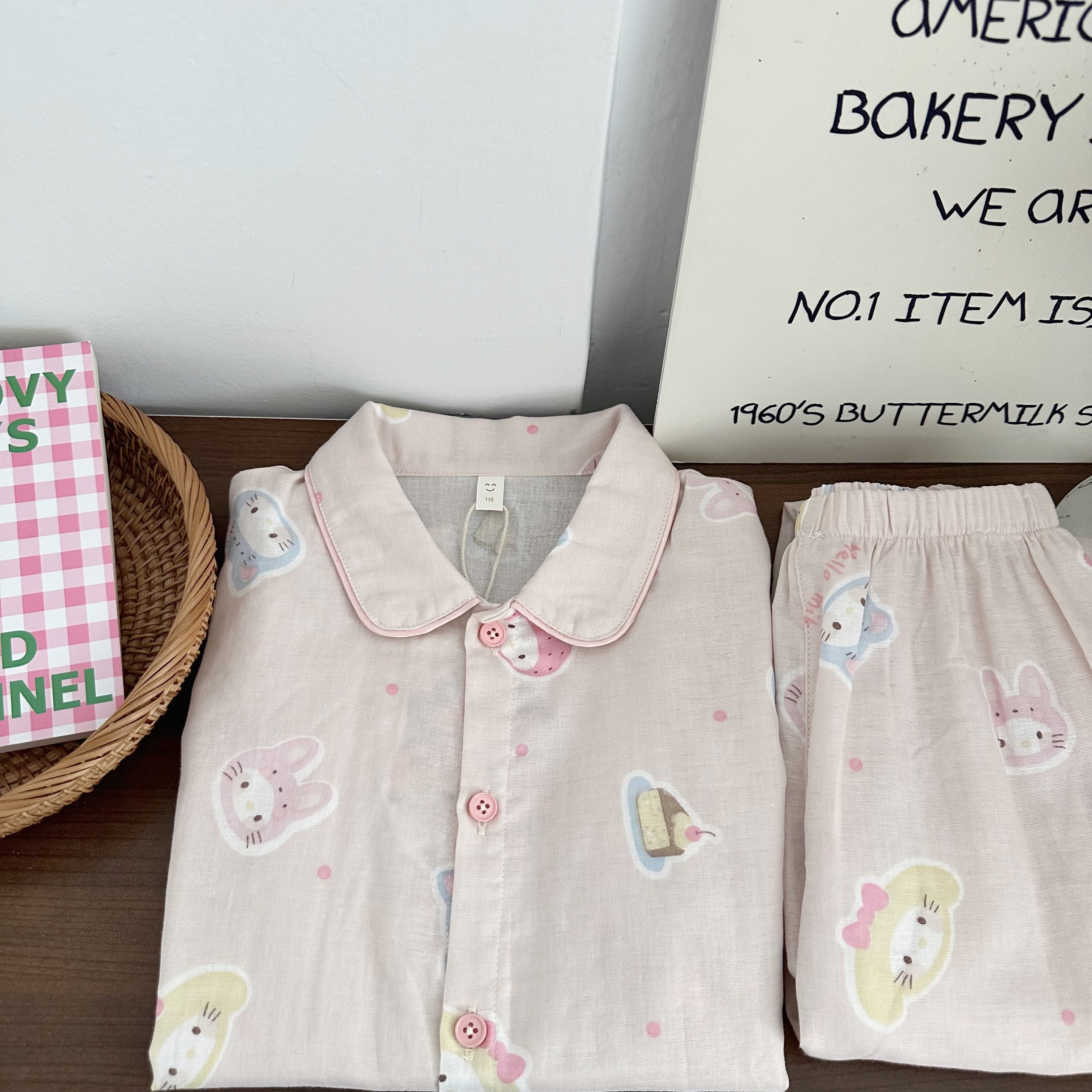 (总)纽约生活 2025新款绉布圆领开扣长袖长裤(会员-5),波比熊,黑碎花猫咪,蝴蝶结粉熊,花花狗,蓝碎花,塞纳花房