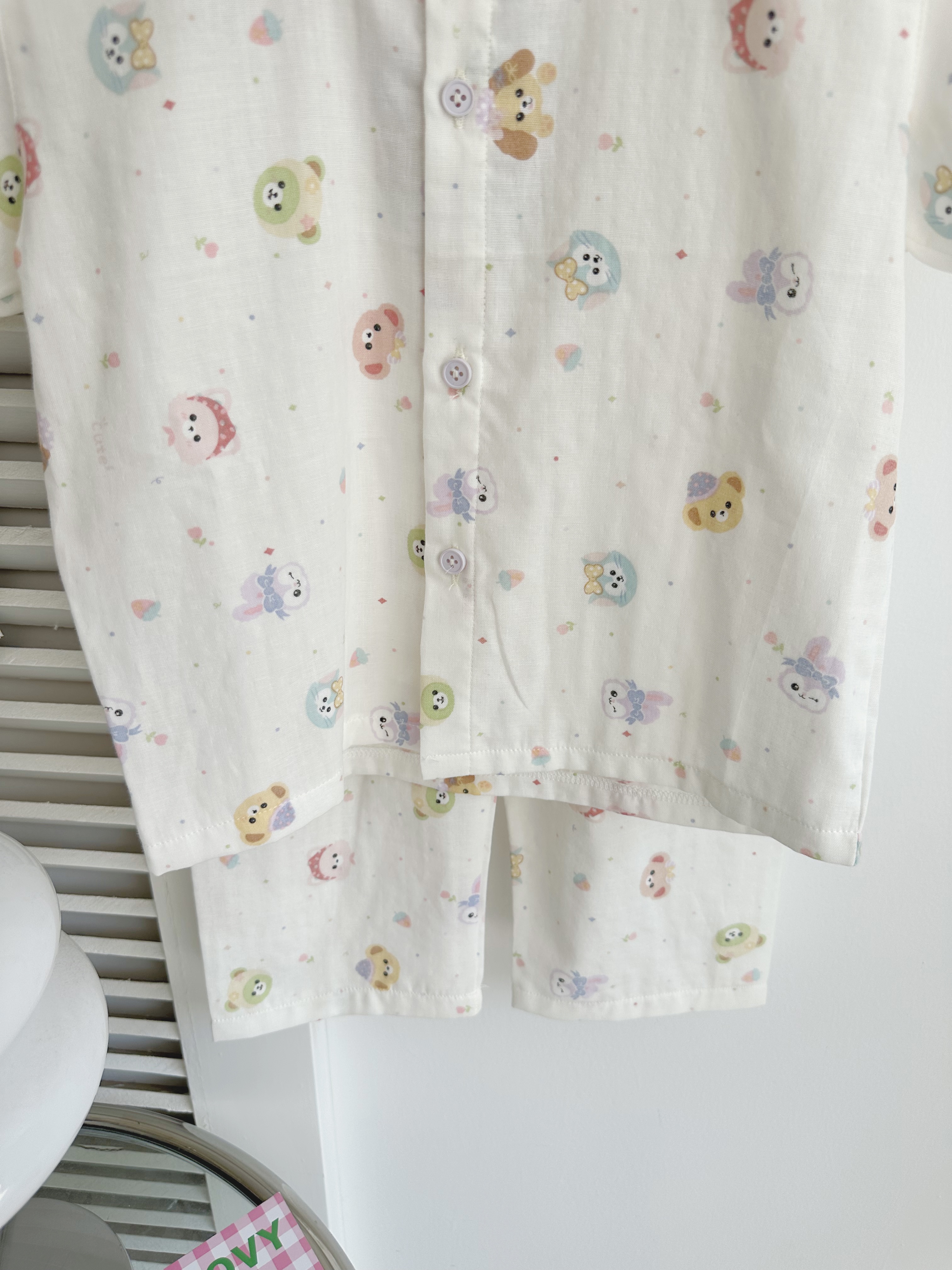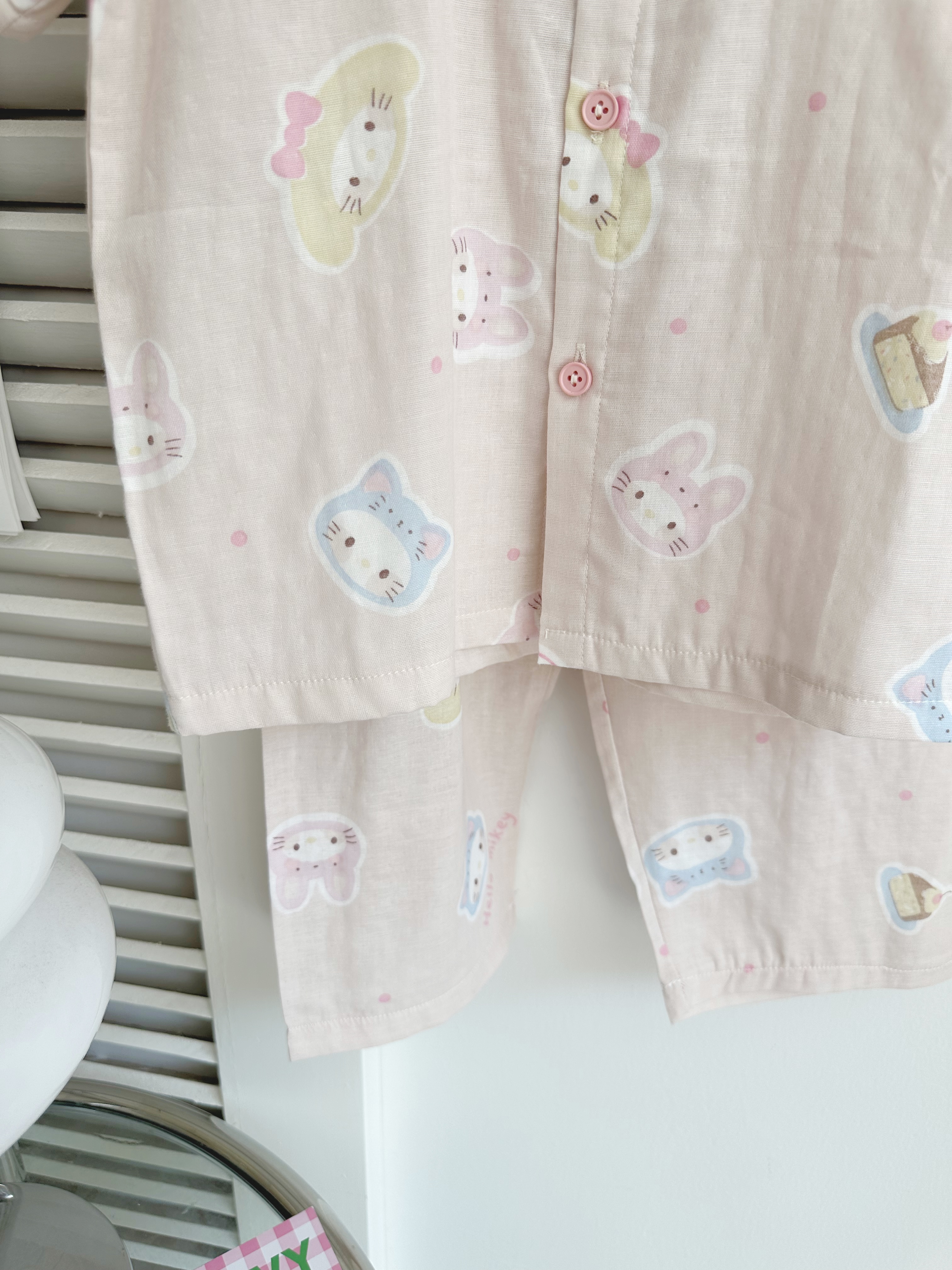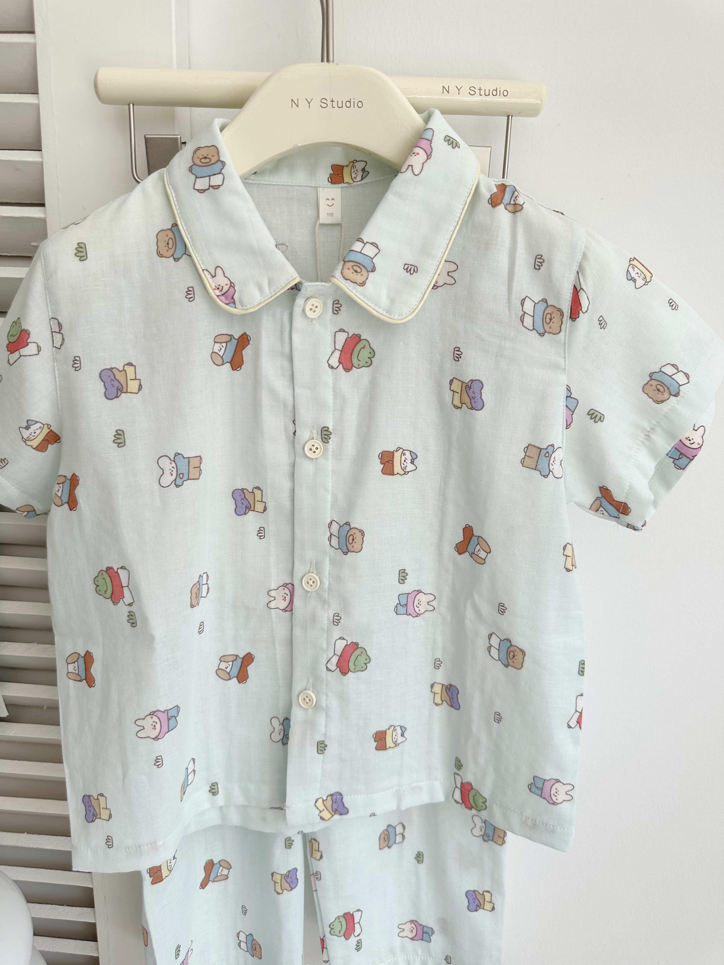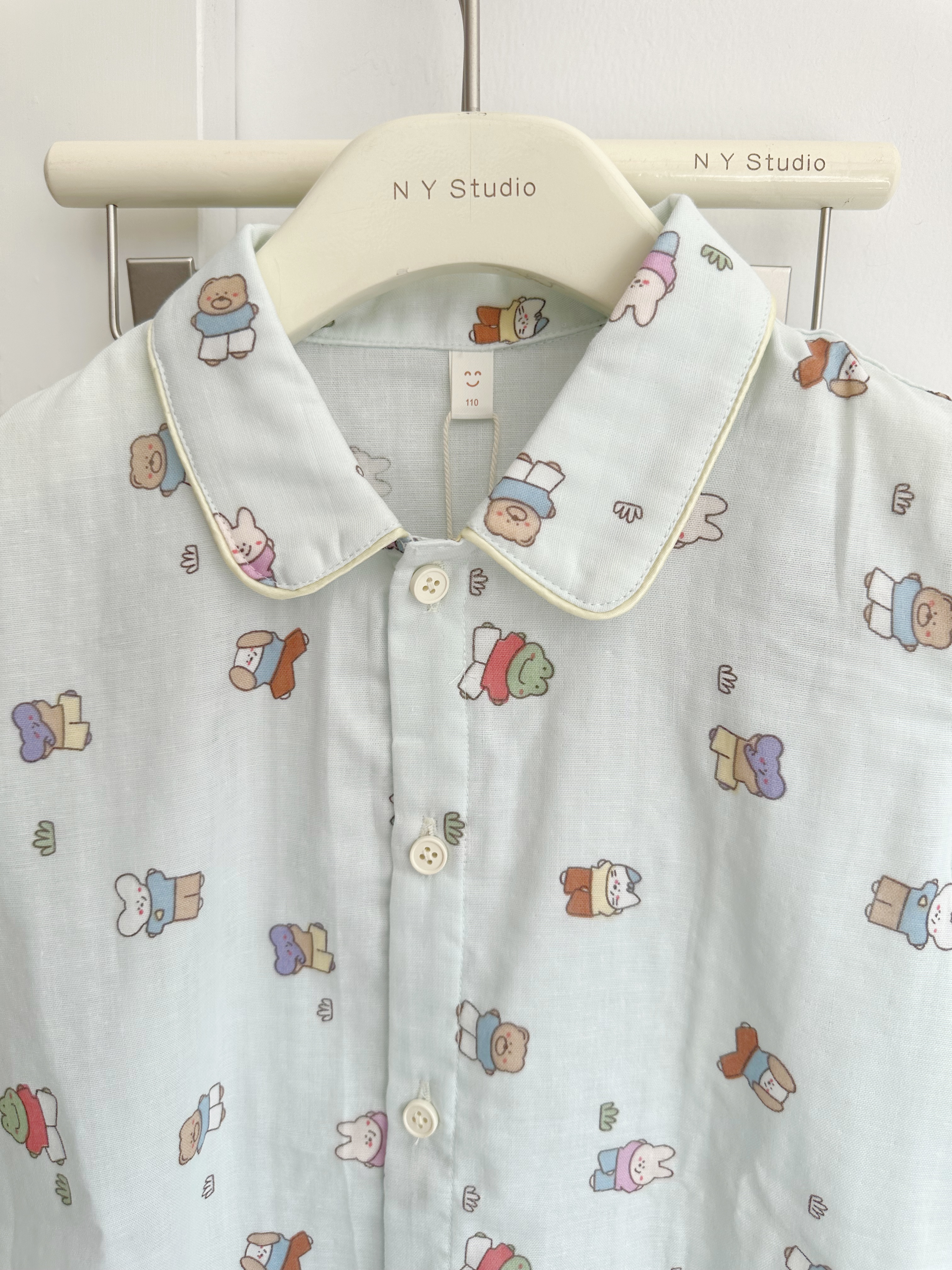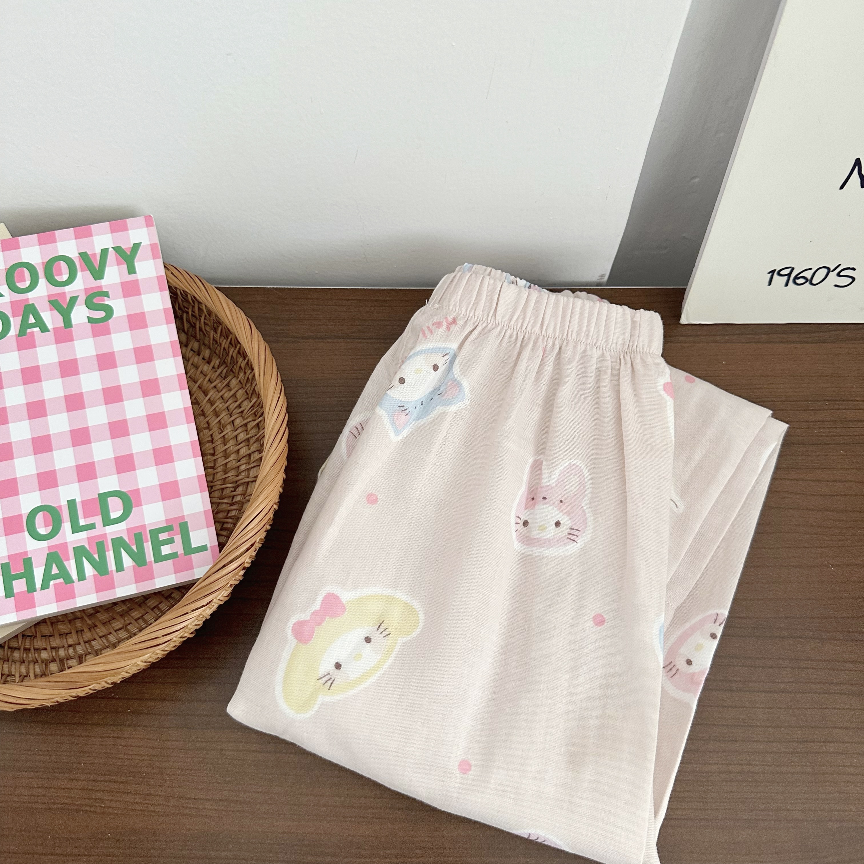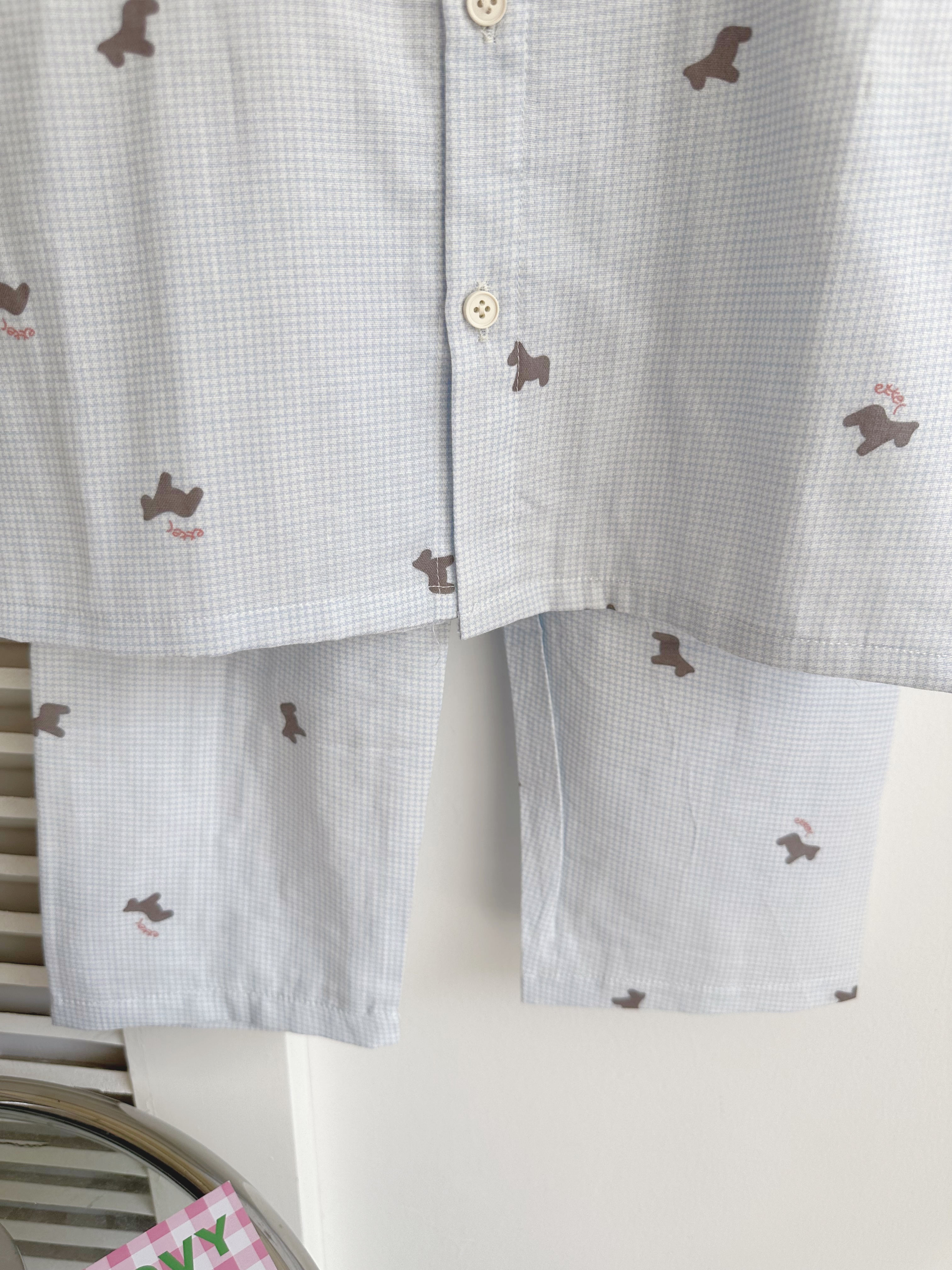 (总)纽约生活 2025新款绉布圆领开扣长袖长裤(会员-5),波比熊,黑碎花猫咪,蝴蝶结粉熊,花花狗,蓝碎花,塞纳花房