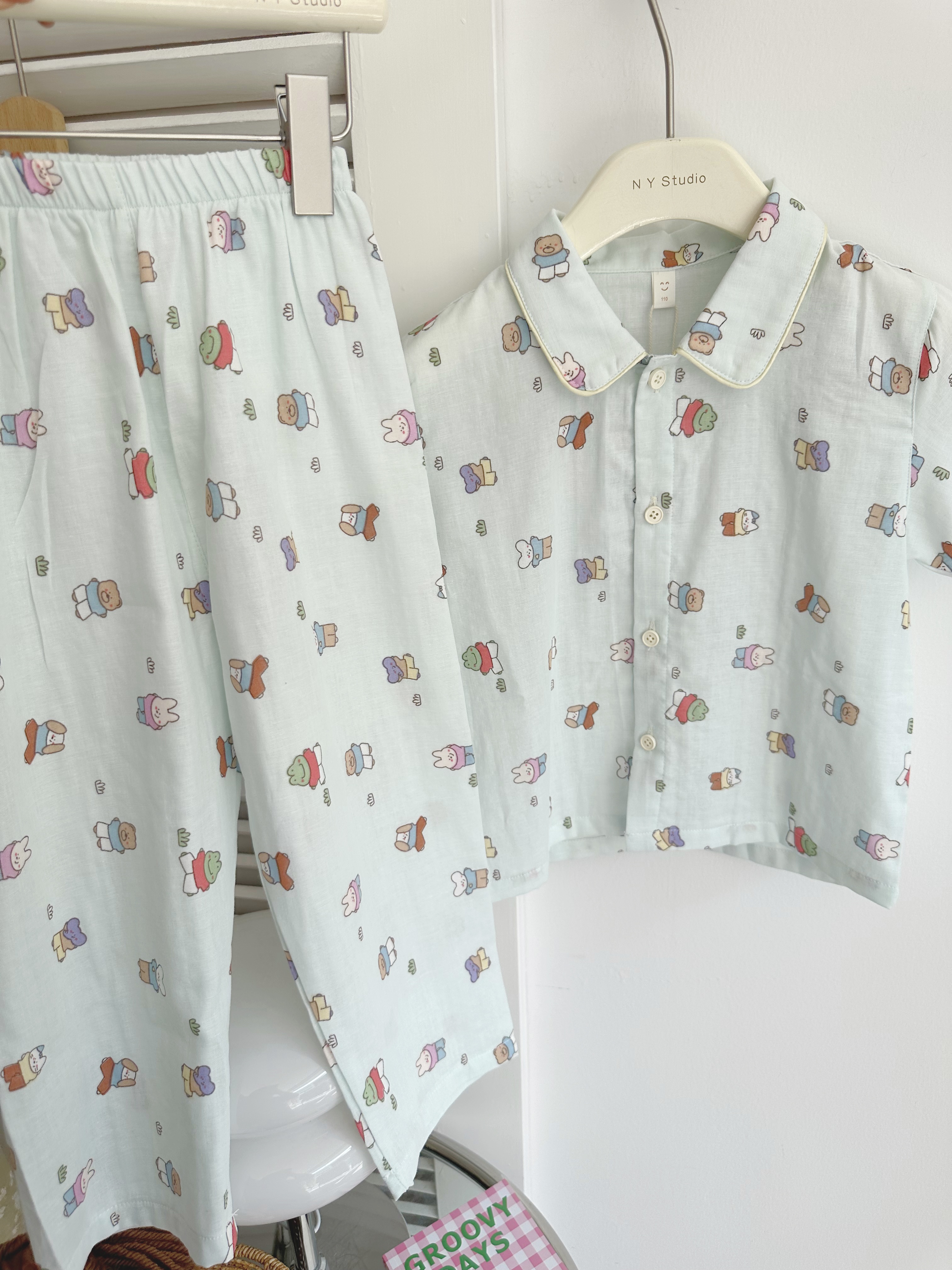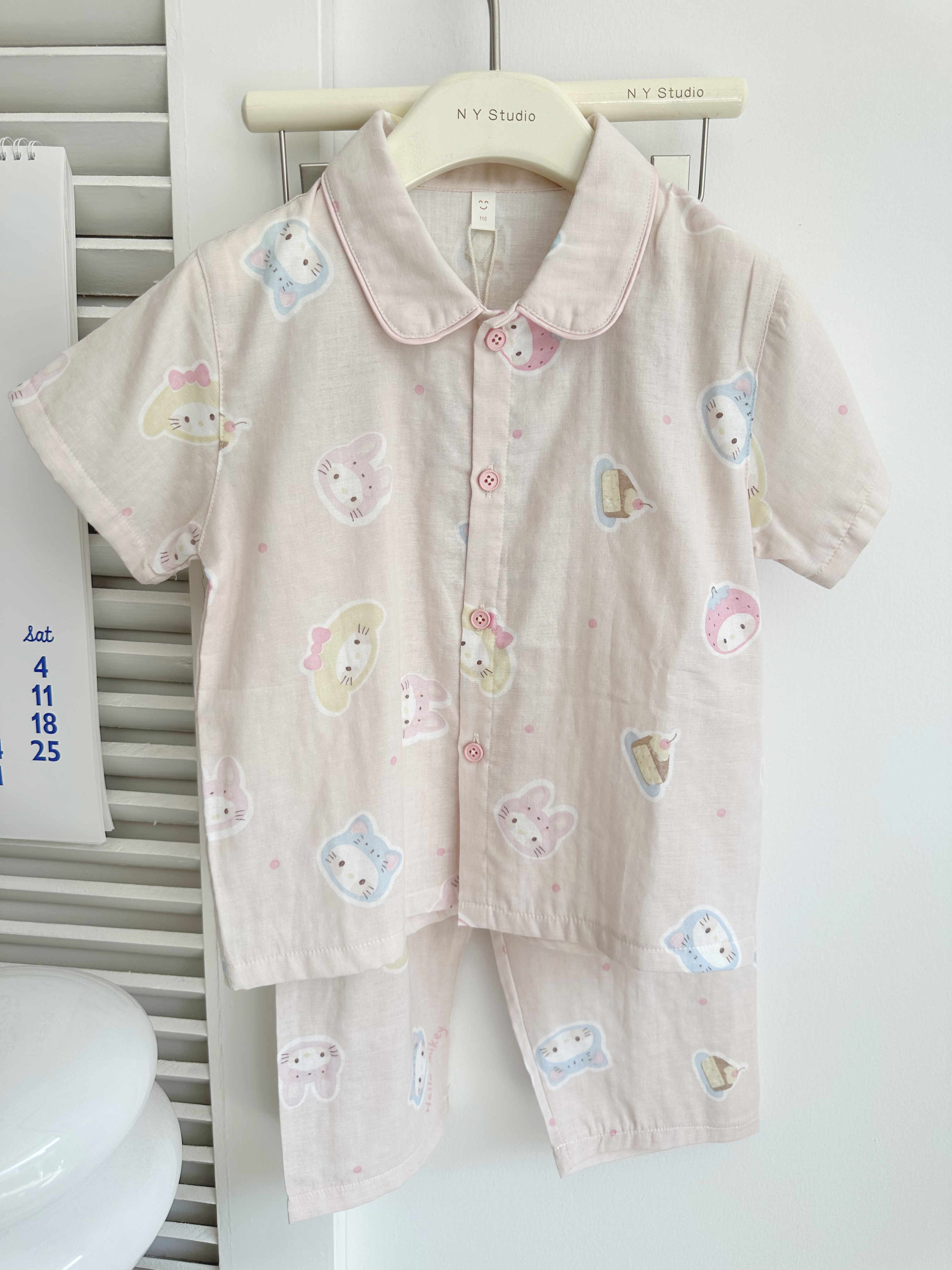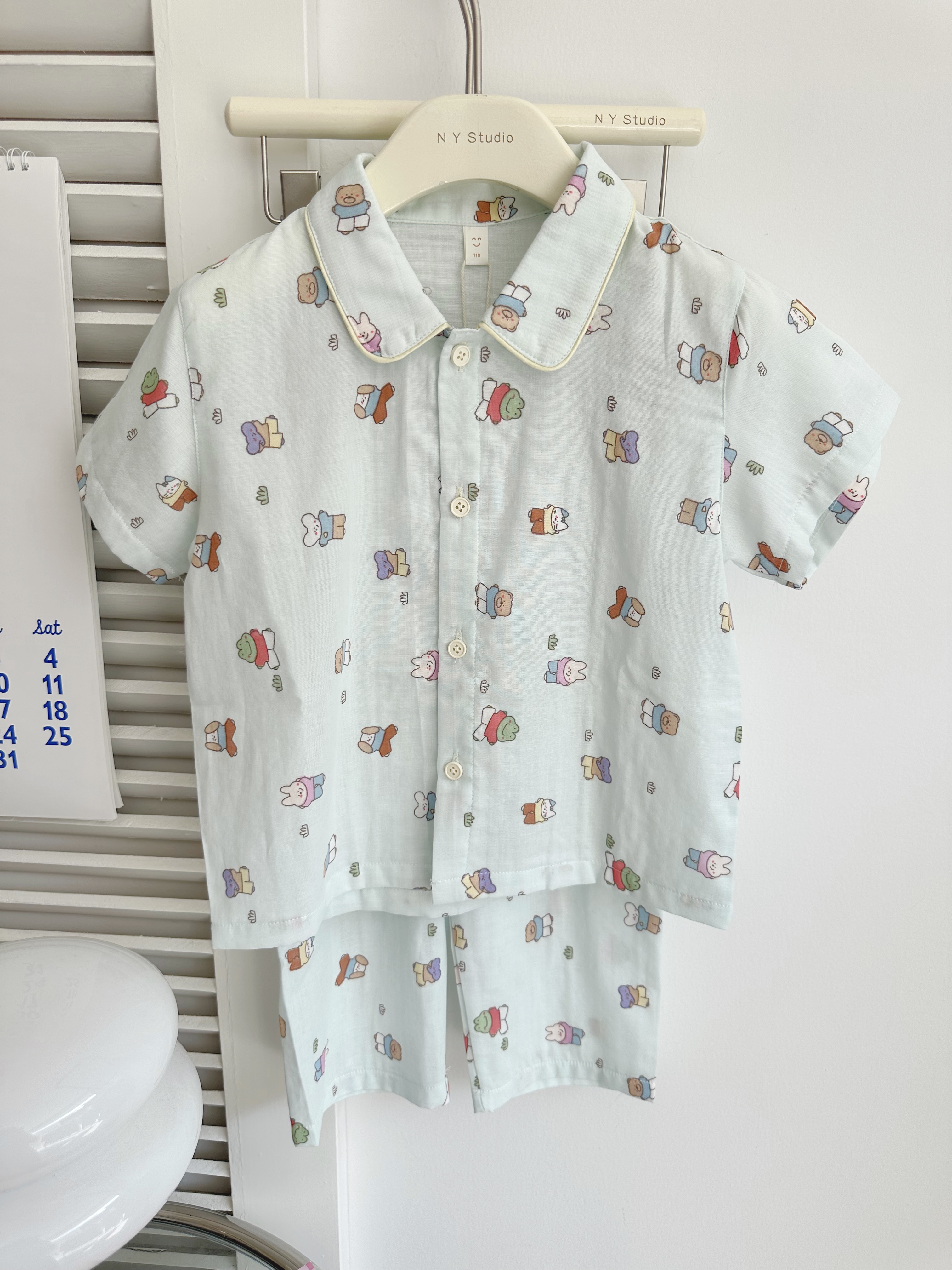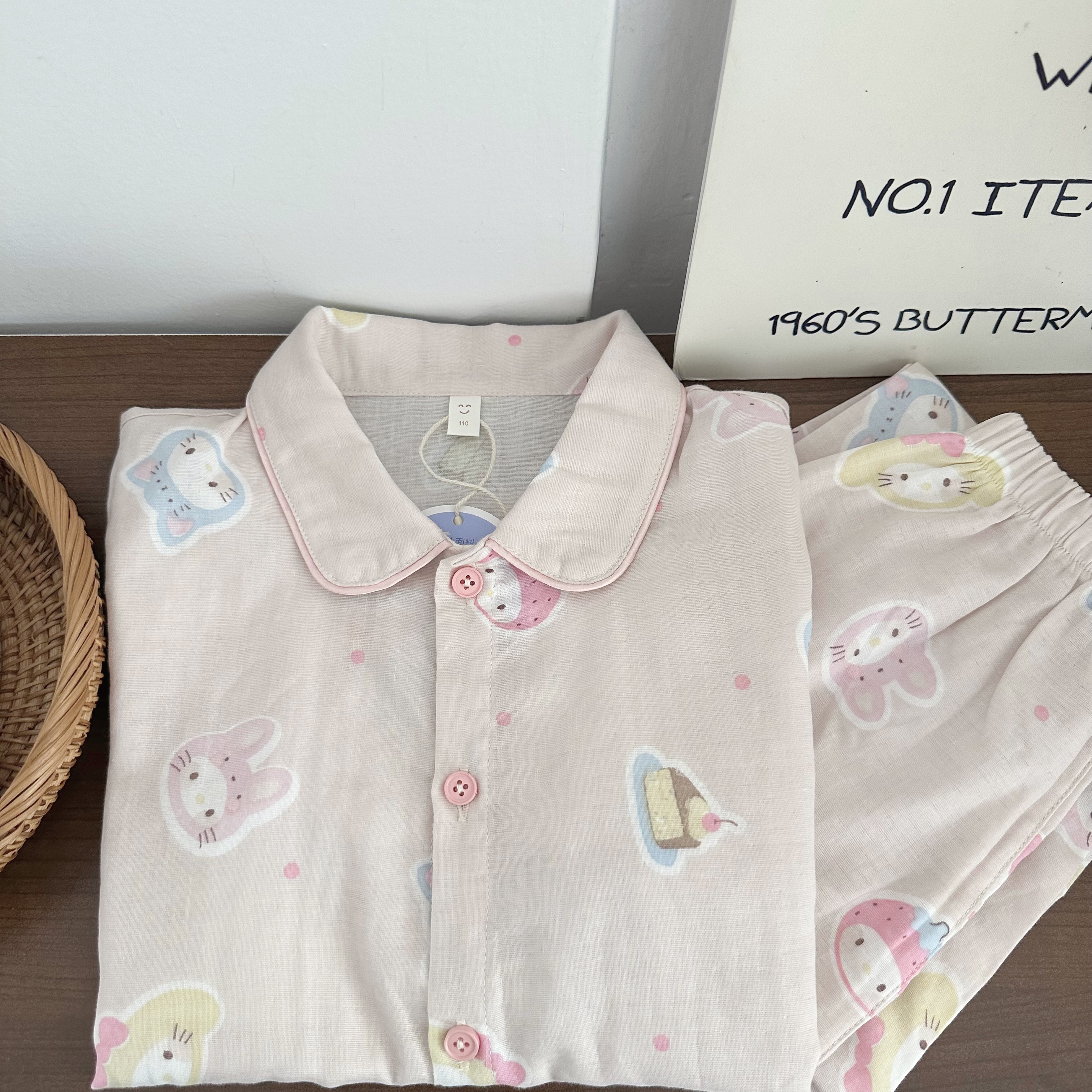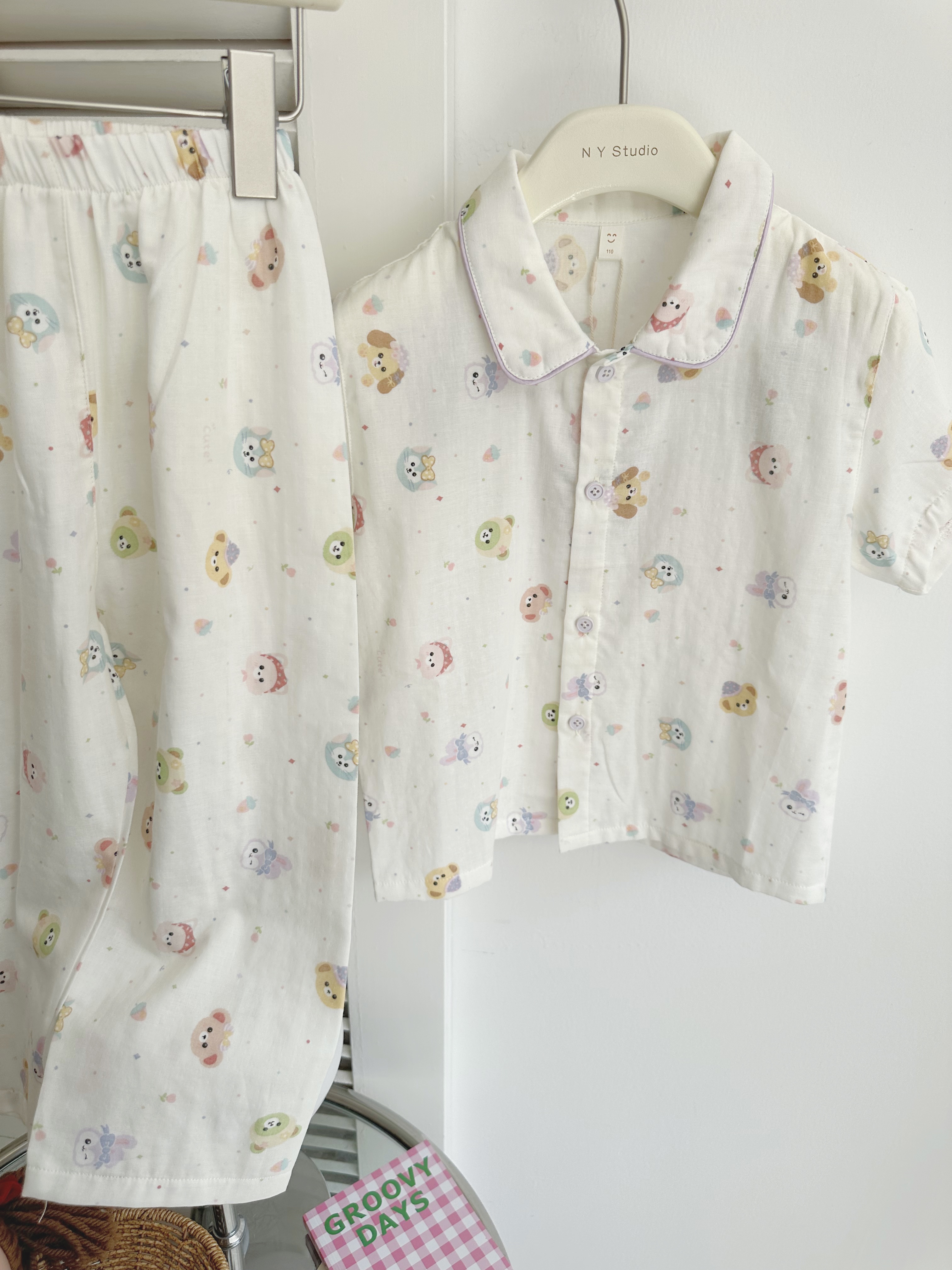 (总)纽约生活 2025新款绉布圆领开扣长袖长裤(会员-5),波比熊,黑碎花猫咪,蝴蝶结粉熊,花花狗,蓝碎花,塞纳花房