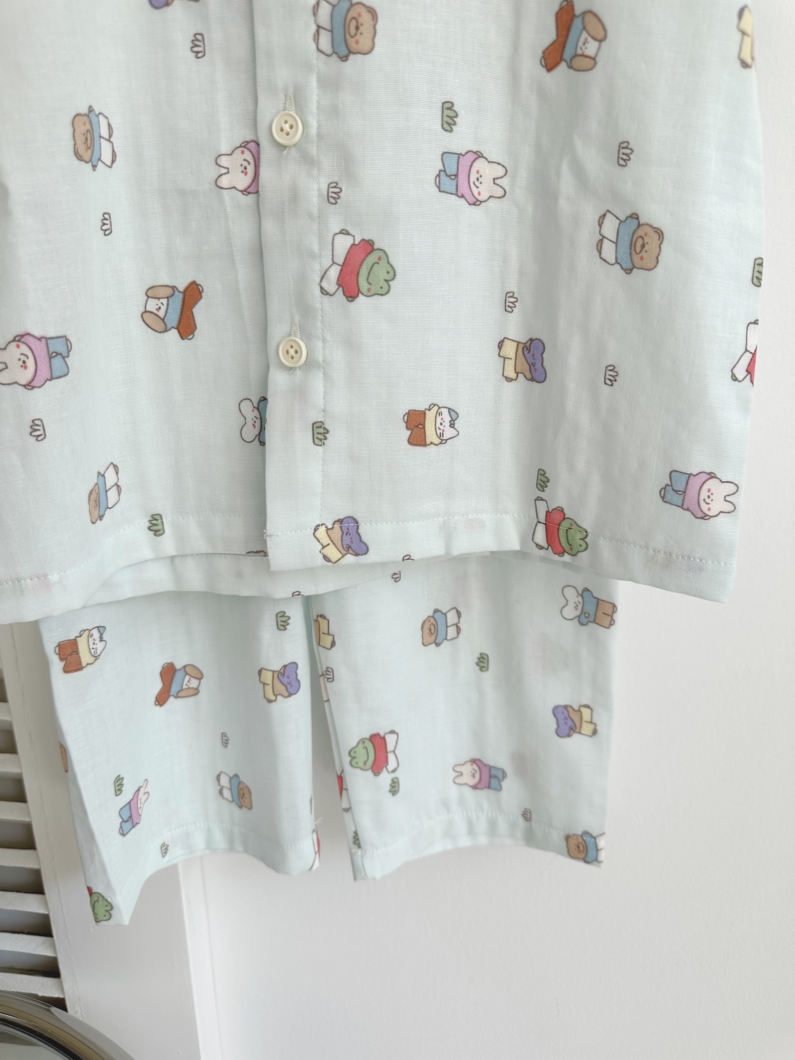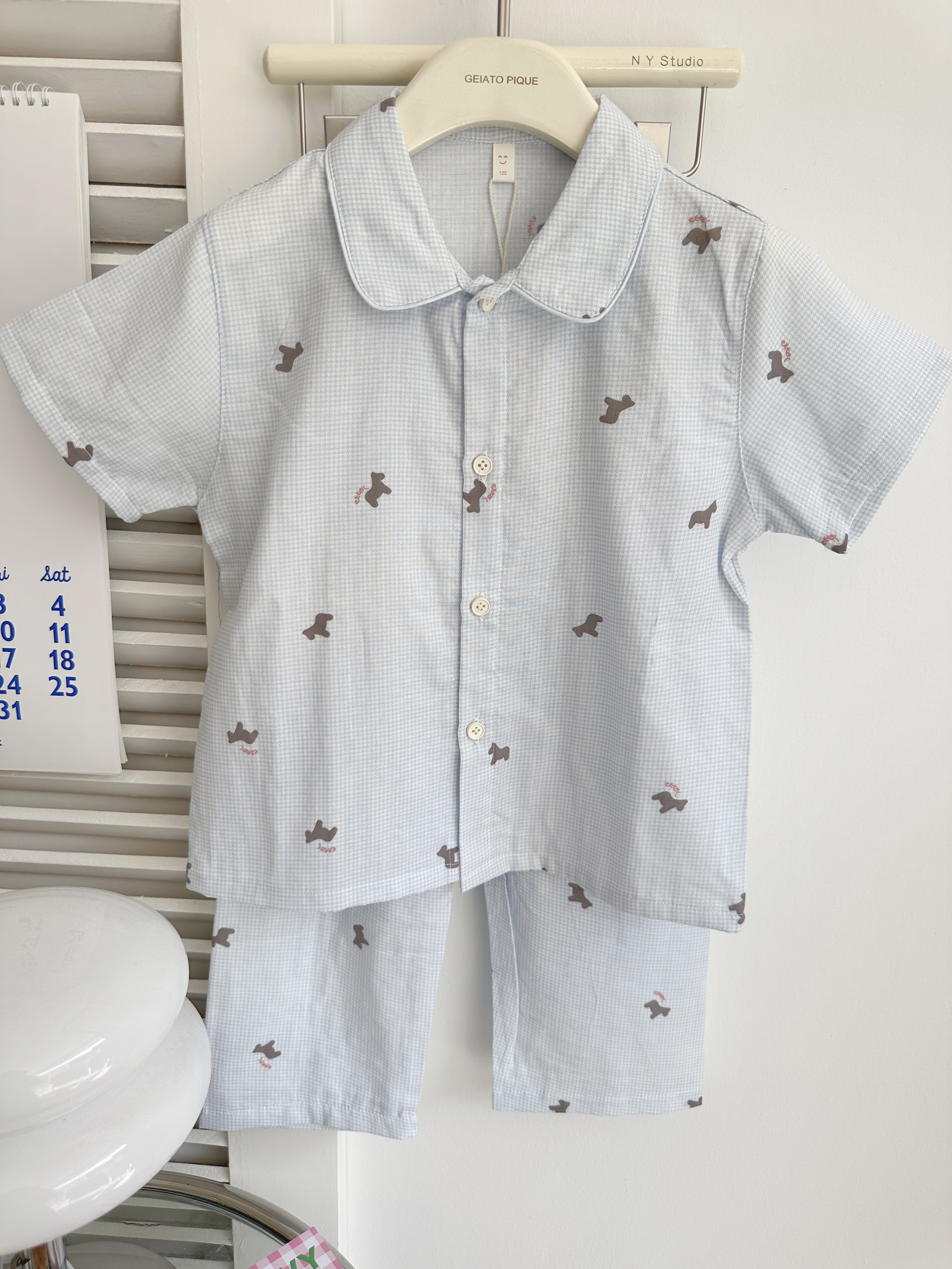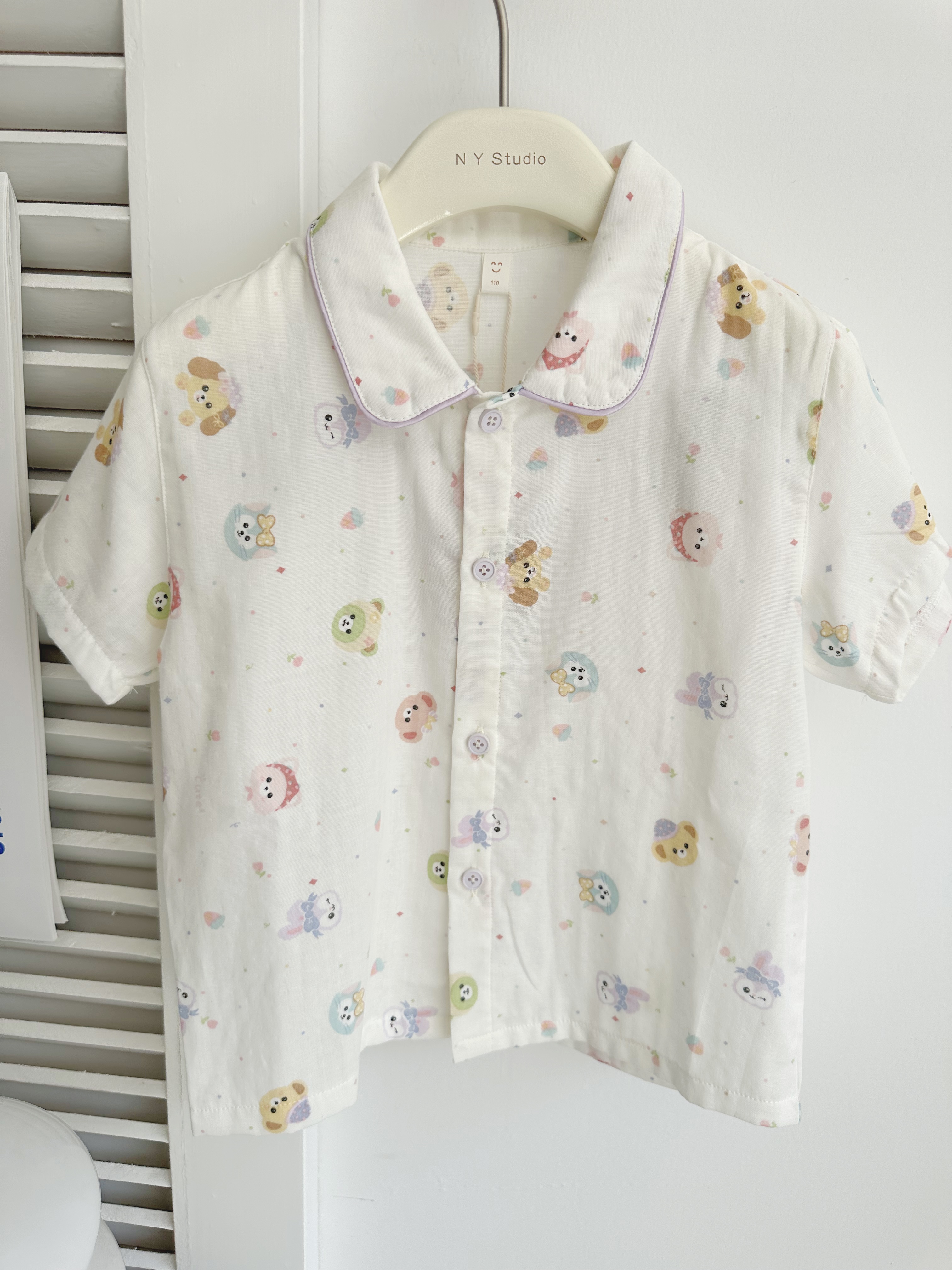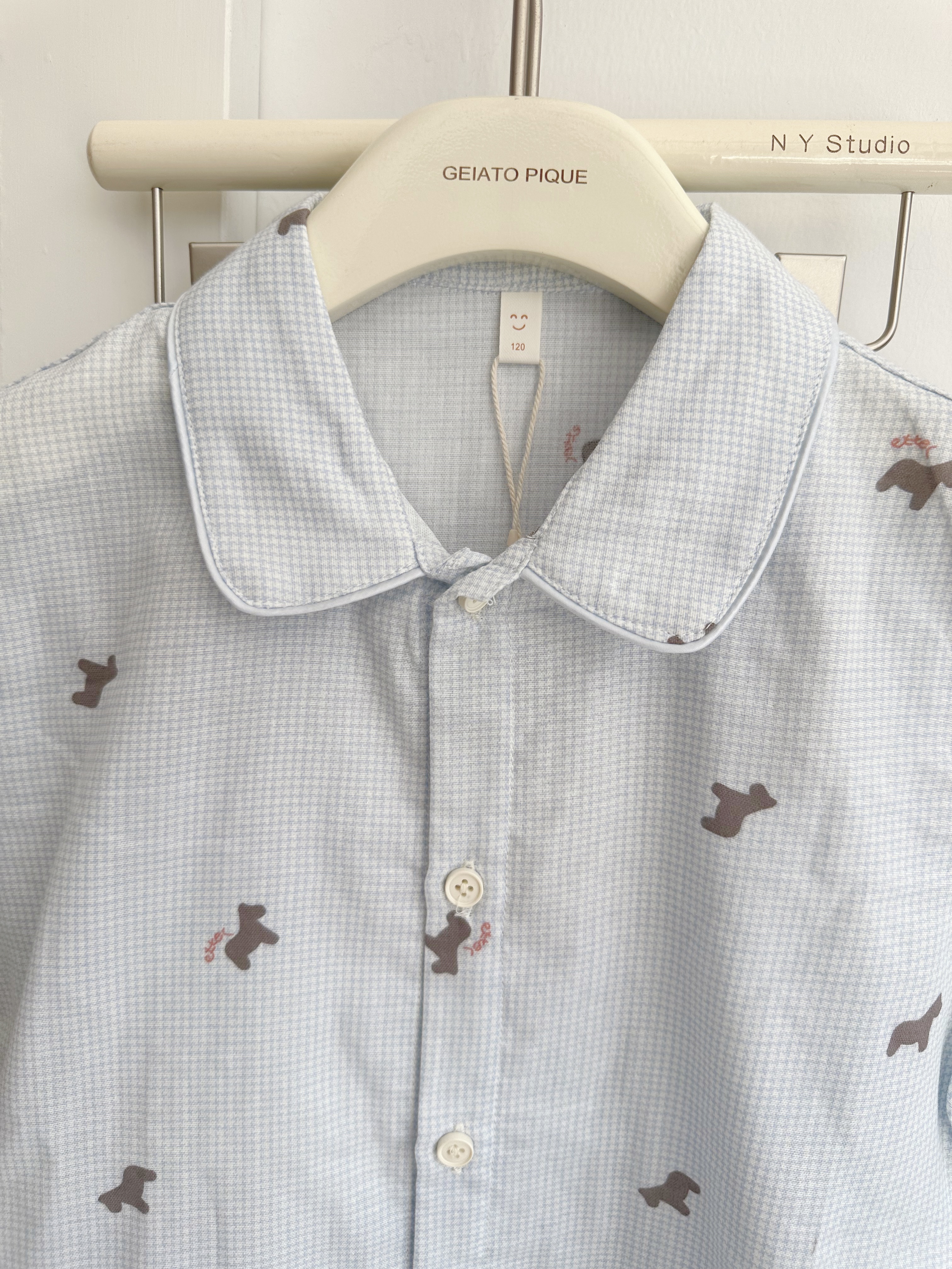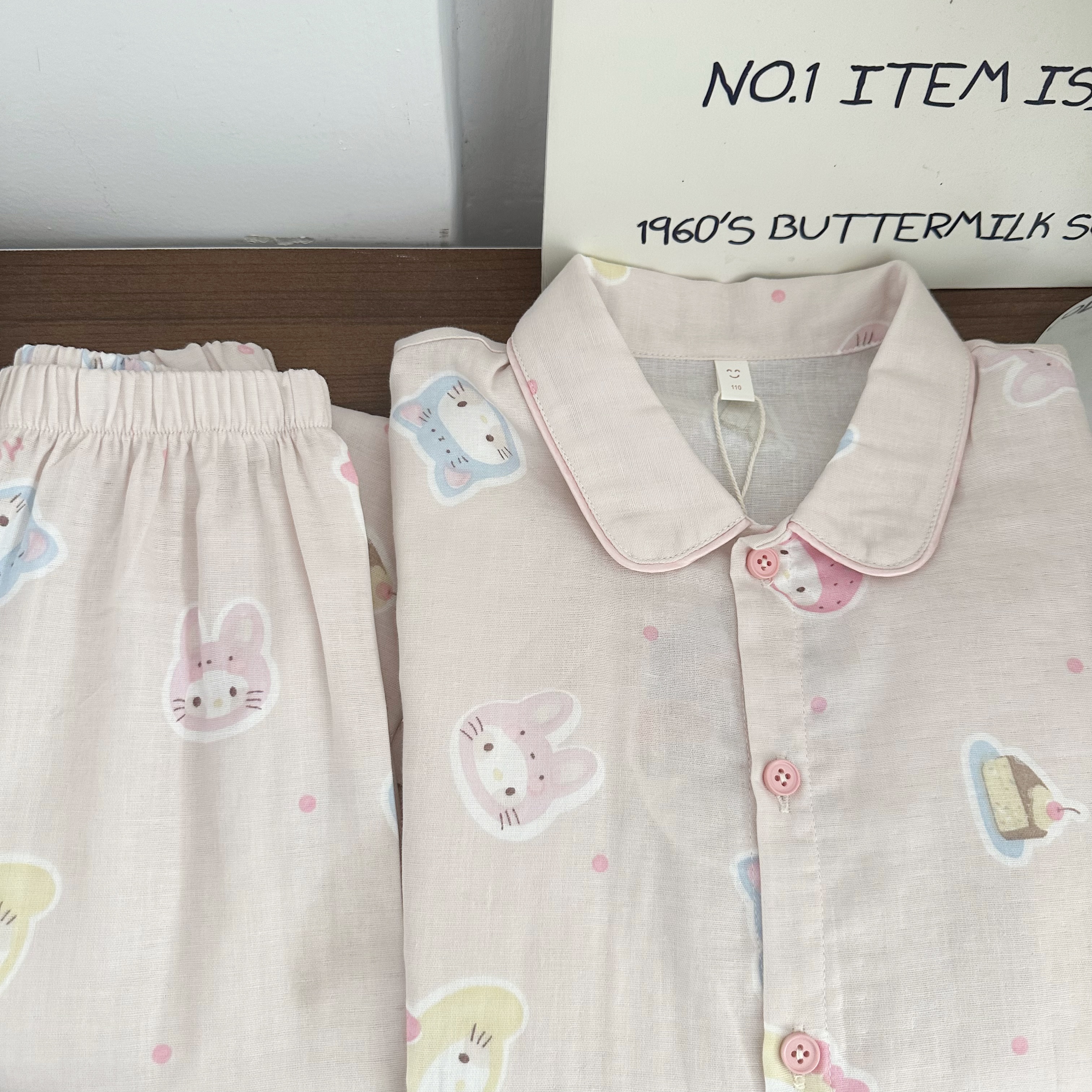 (总)纽约生活 2025新款绉布圆领开扣长袖长裤(会员-5),波比熊,黑碎花猫咪,蝴蝶结粉熊,花花狗,蓝碎花,塞纳花房