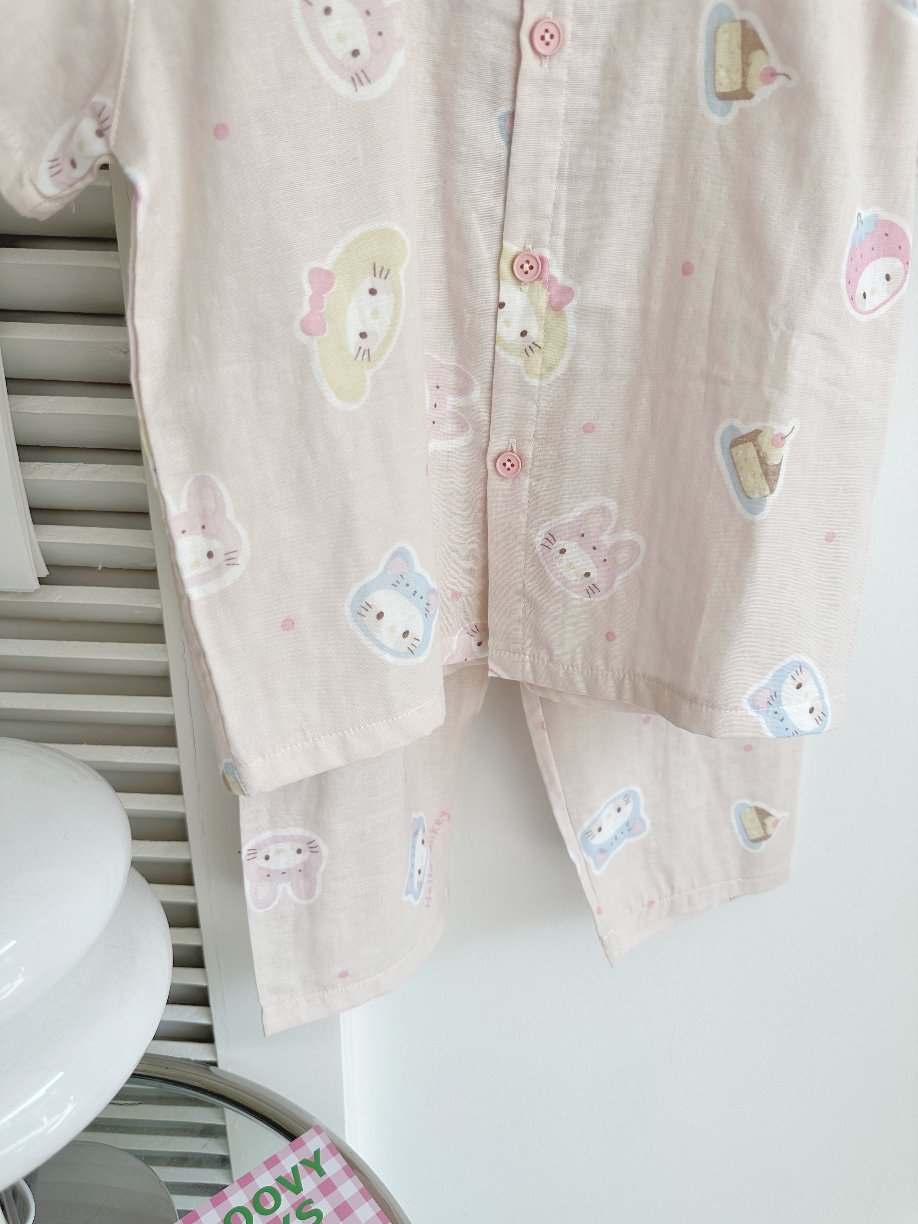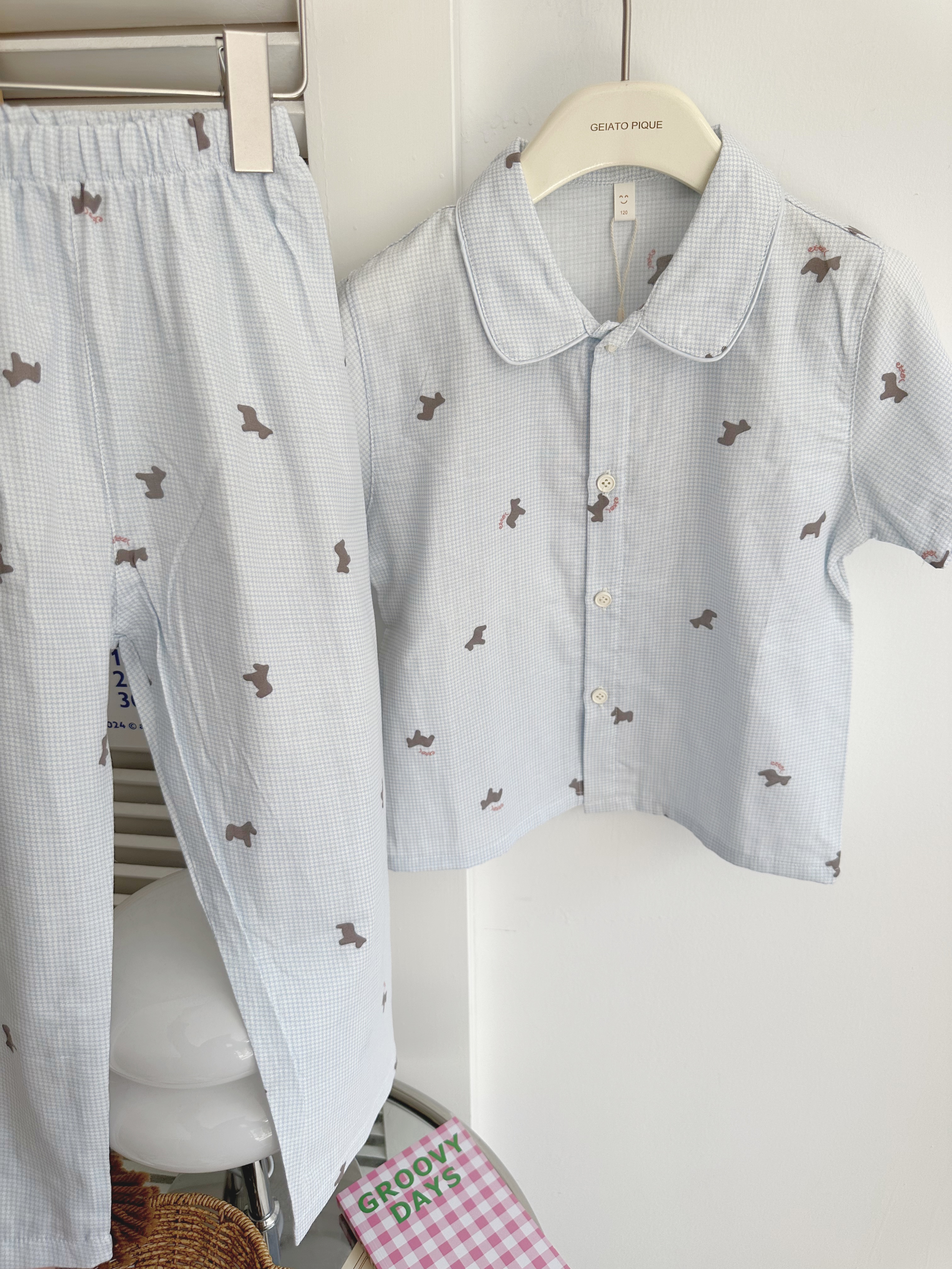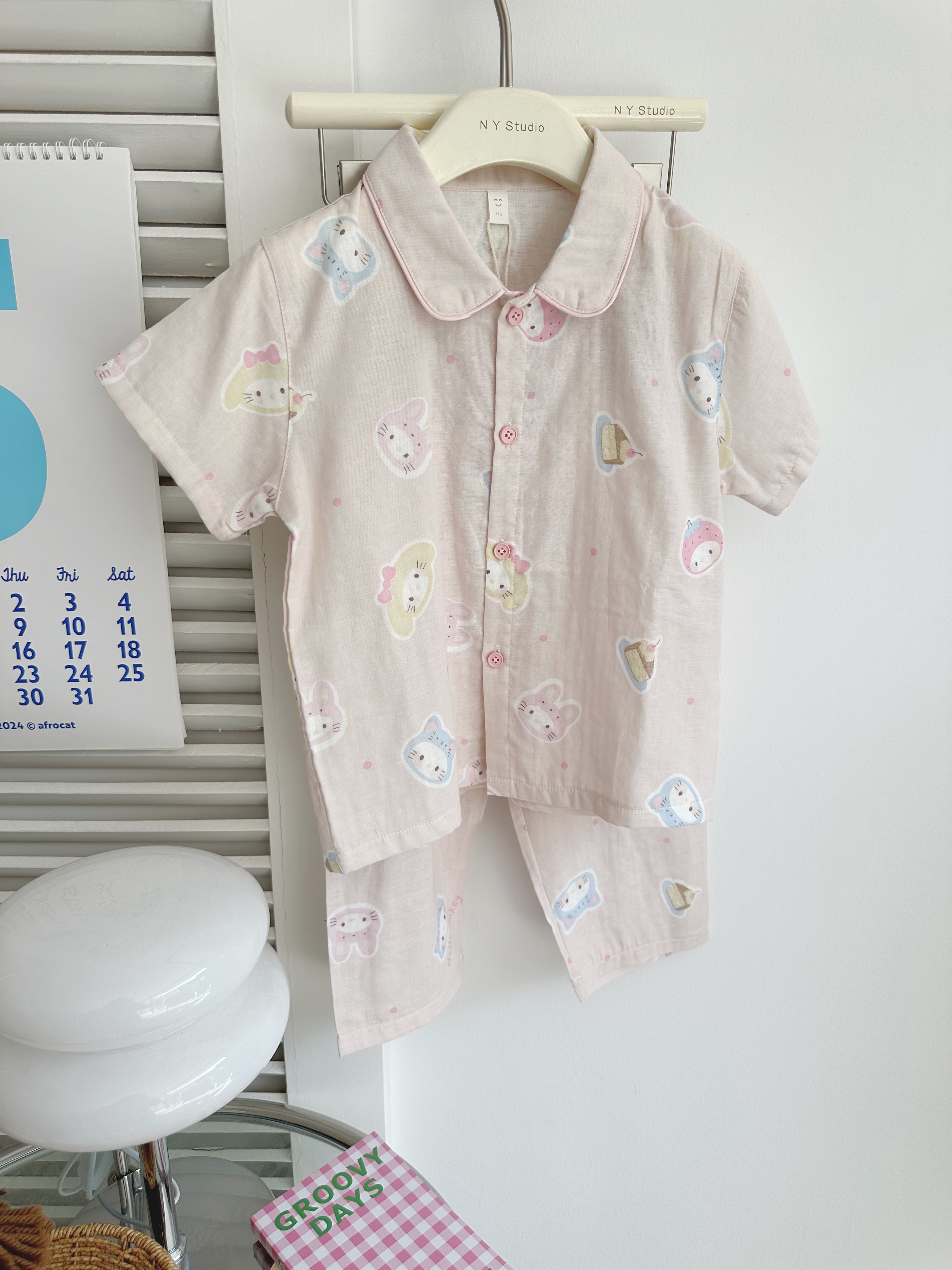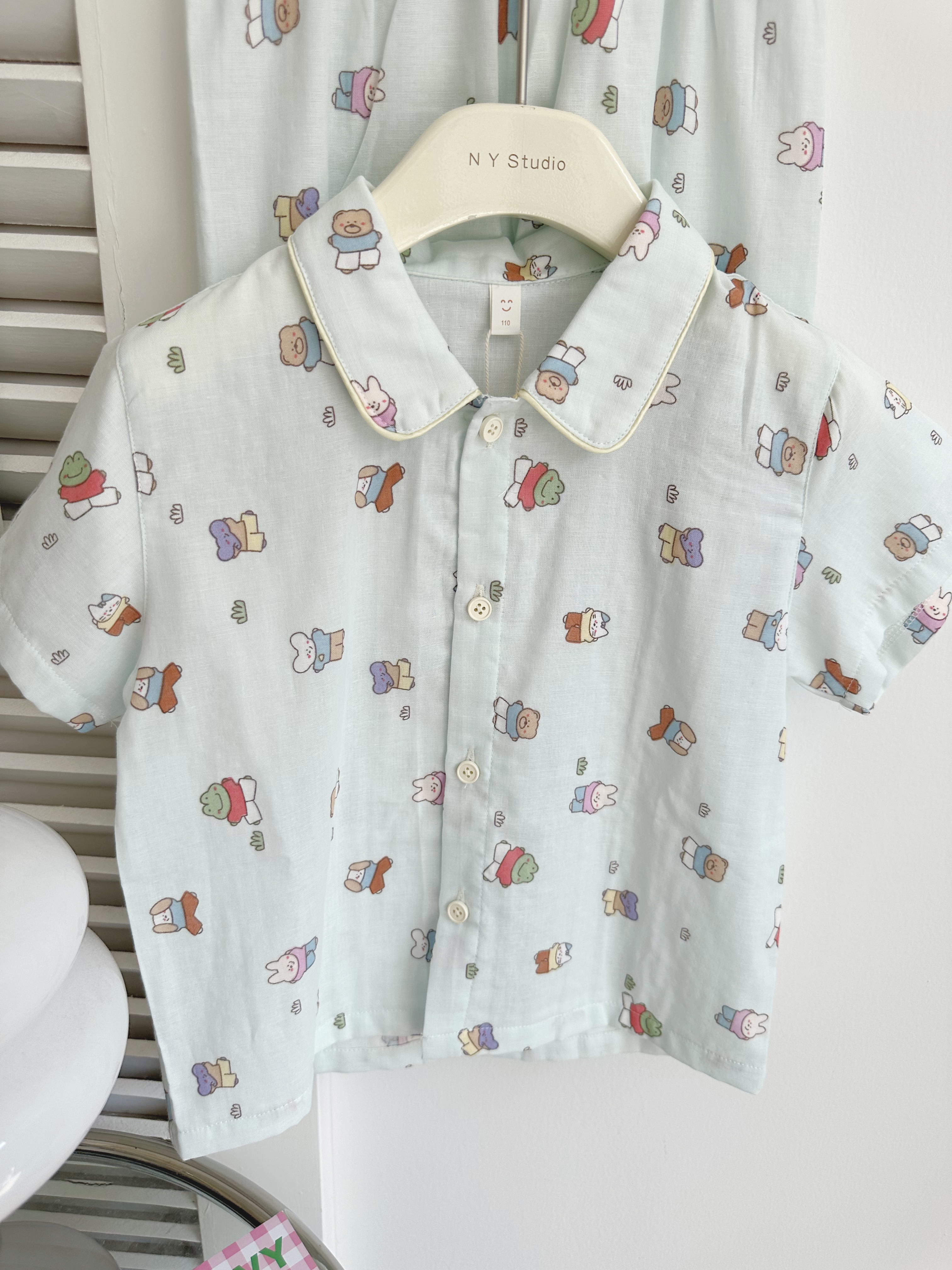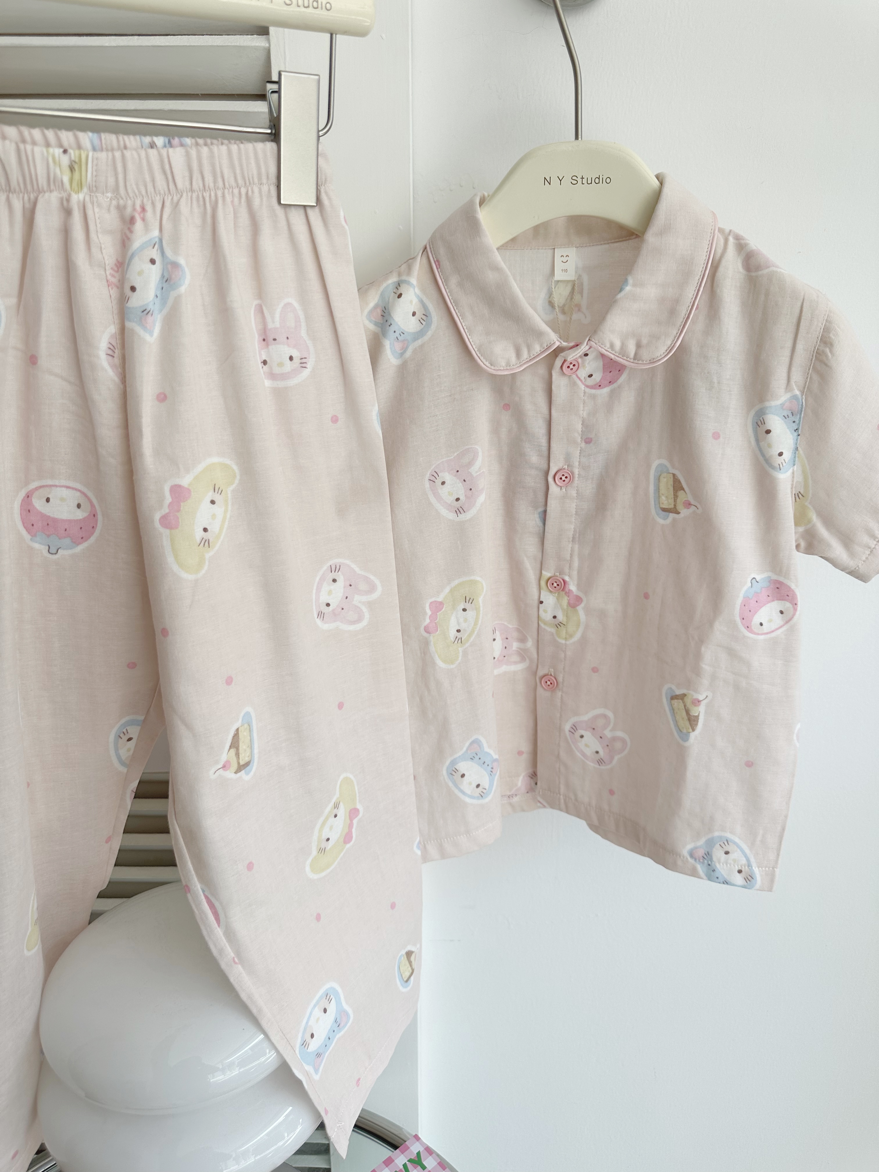 (总)纽约生活 2025新款绉布圆领开扣长袖长裤(会员-5),波比熊,黑碎花猫咪,蝴蝶结粉熊,花花狗,蓝碎花,塞纳花房