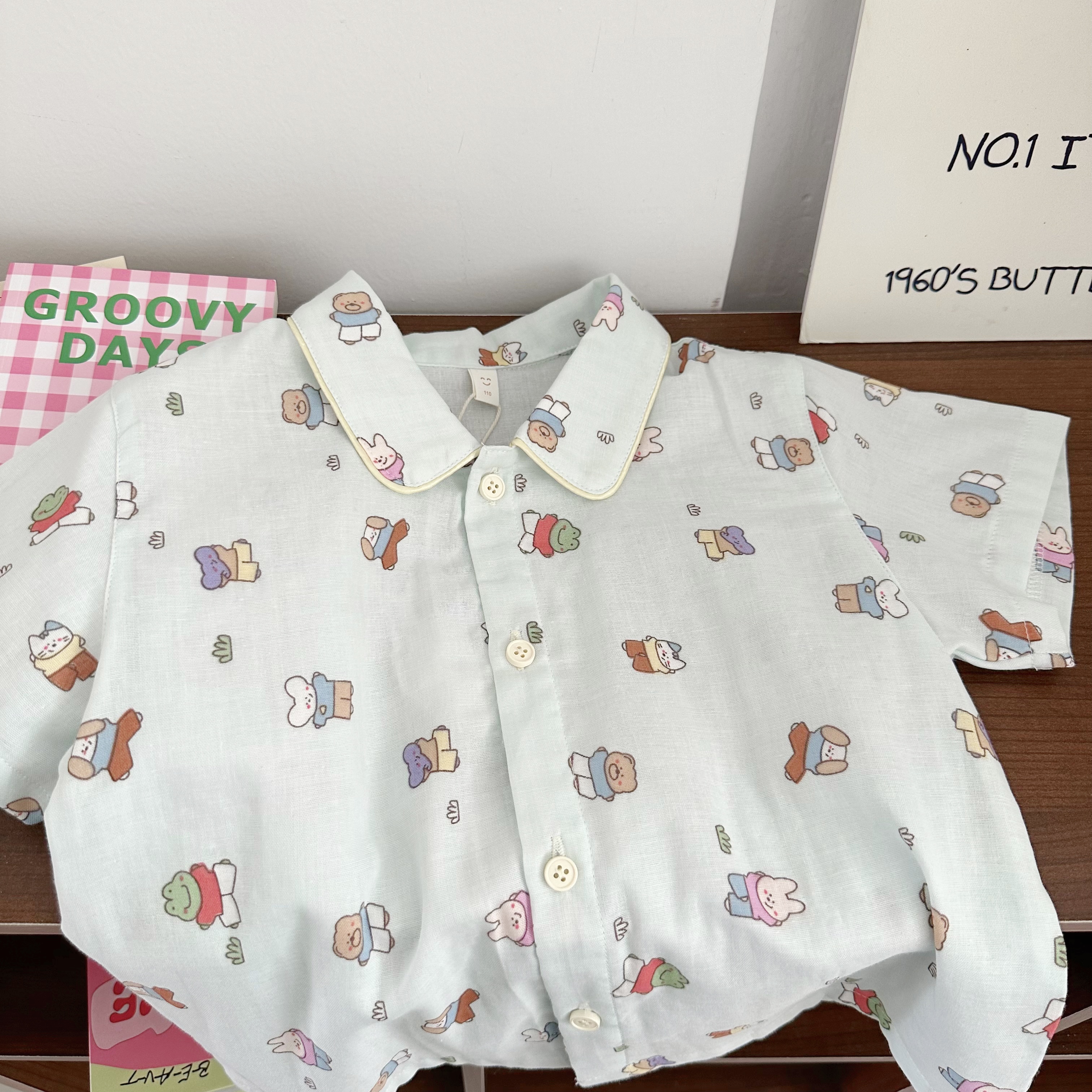 (总)纽约生活 2025新款儿童小翻领短袖长裤