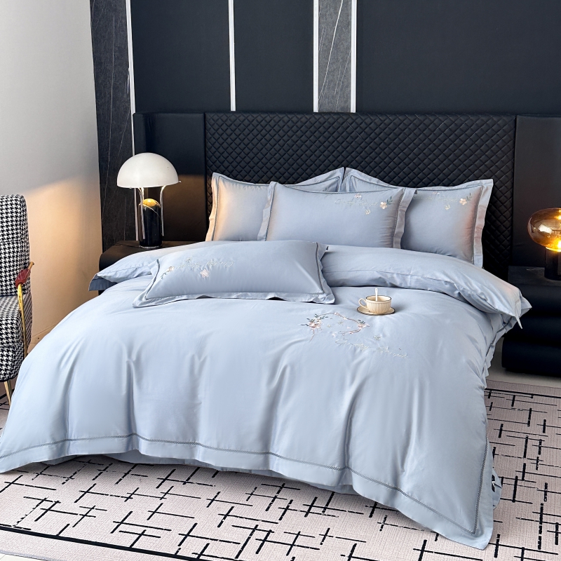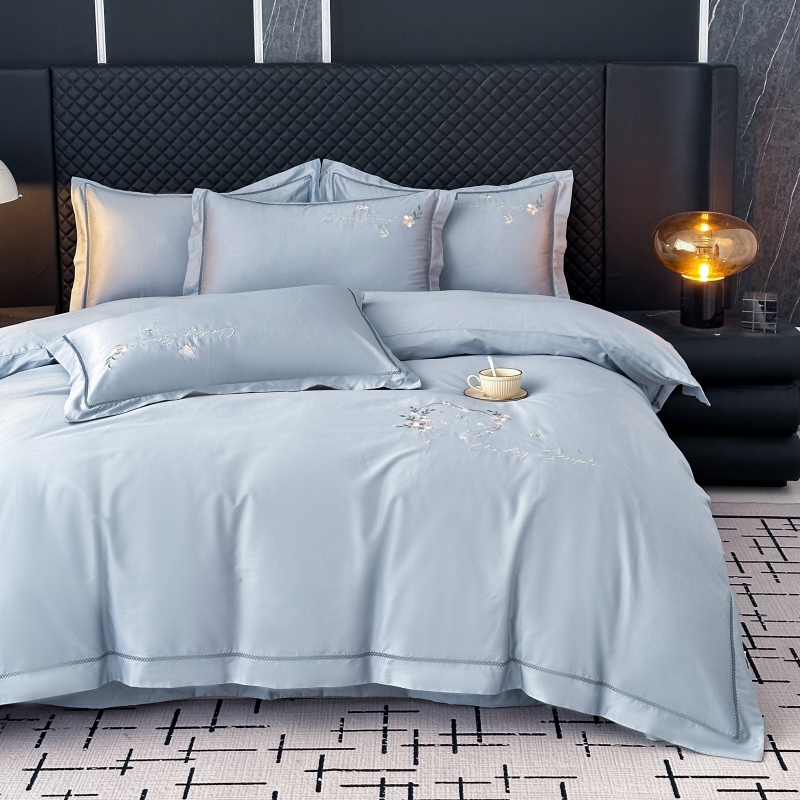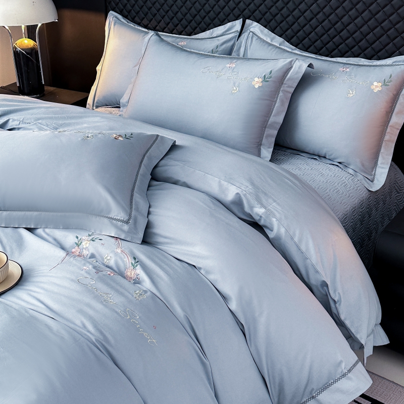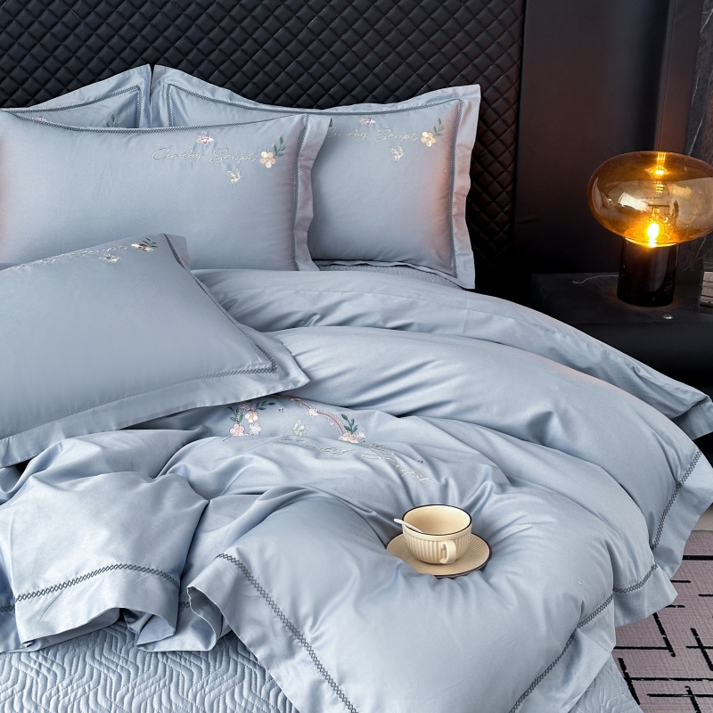 商品名称:美伦美焕 2025新款简约轻奢绣花四件套-蔓绣 蔓绣-北极蓝