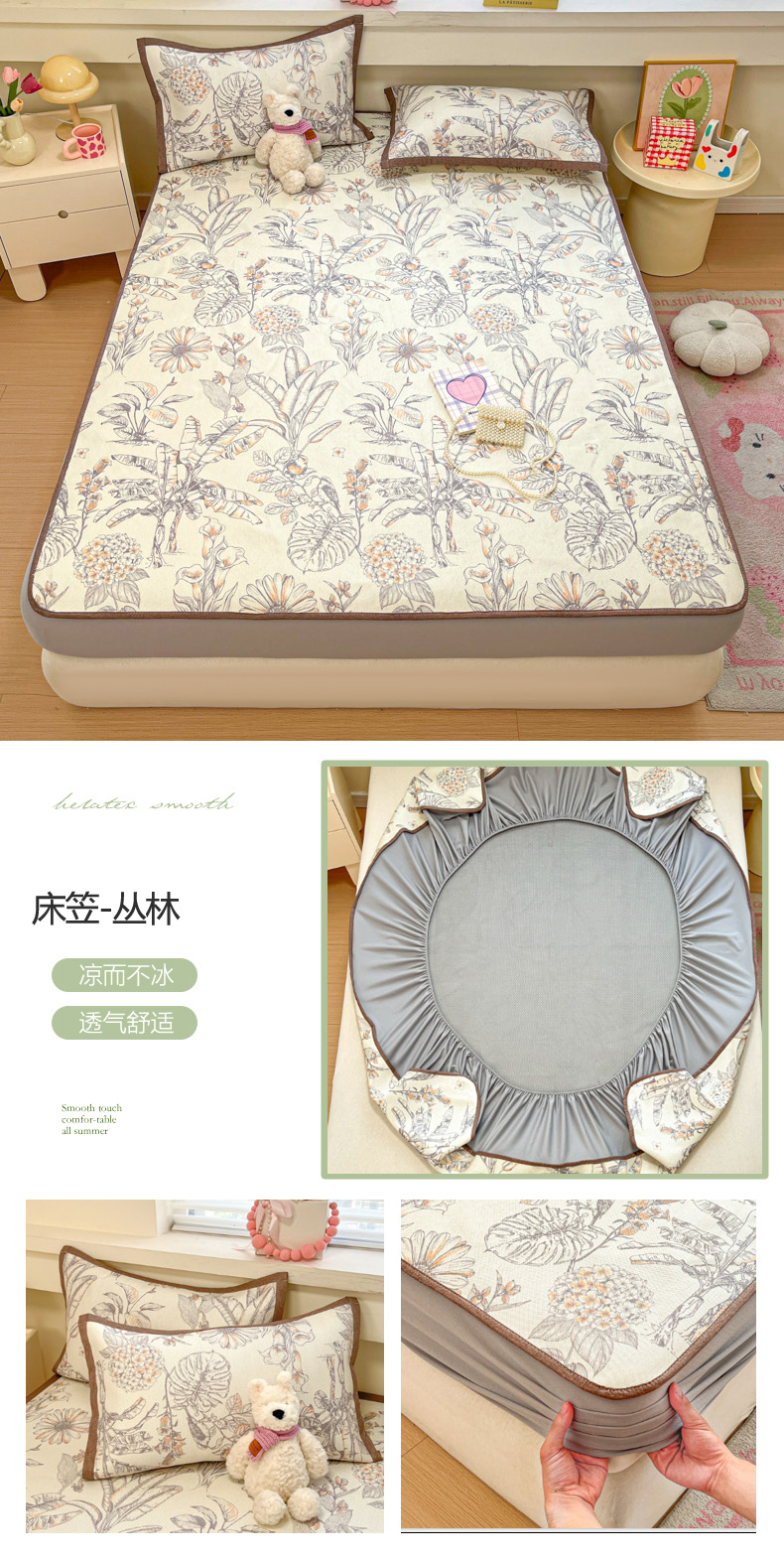 当前位置: 91家纺网 > 商品网购 > 床上用品 > 凉席 > 慕澄家纺 2025新款小清新印花真冰藤系列凉席床笠款 床笠-缇蓝
