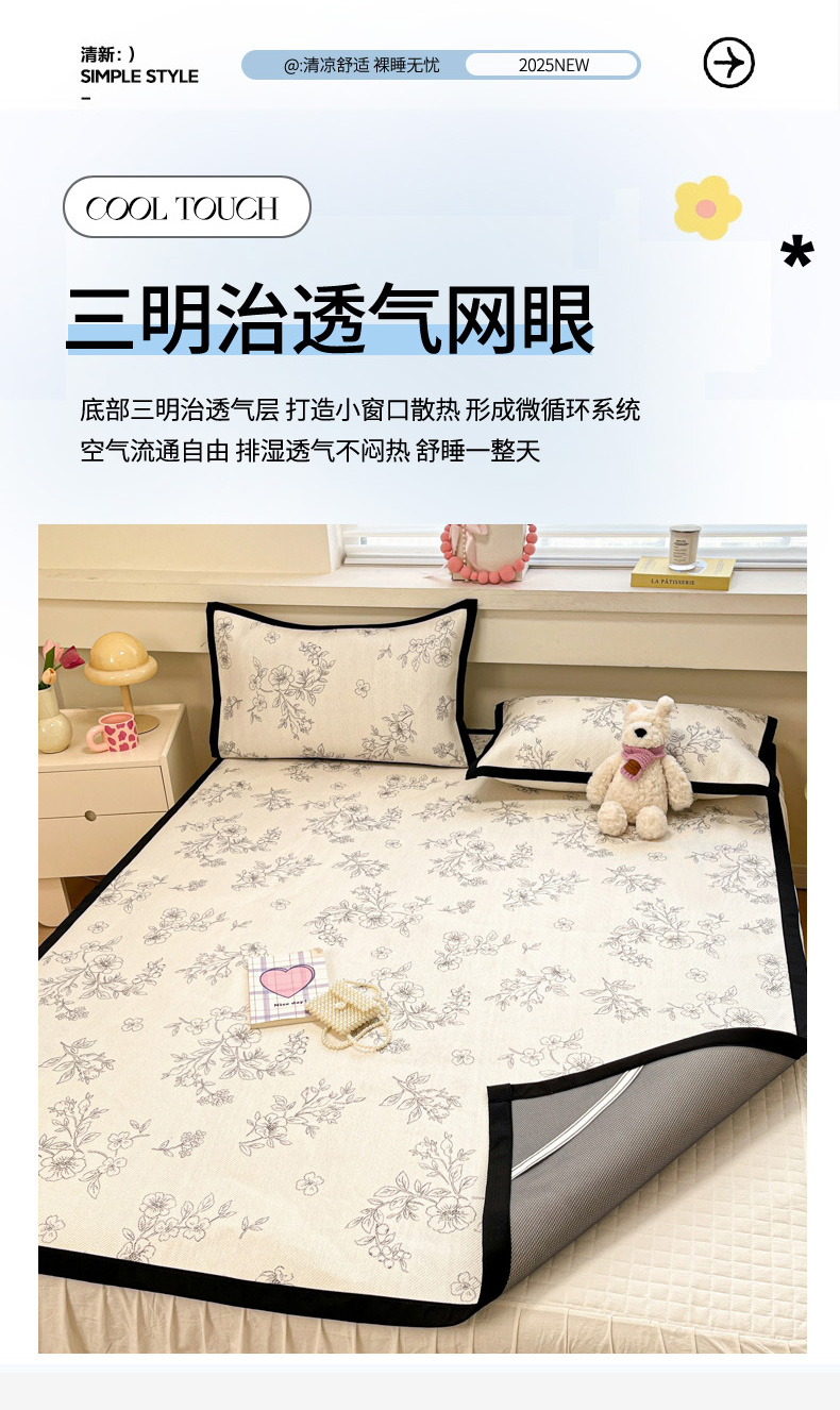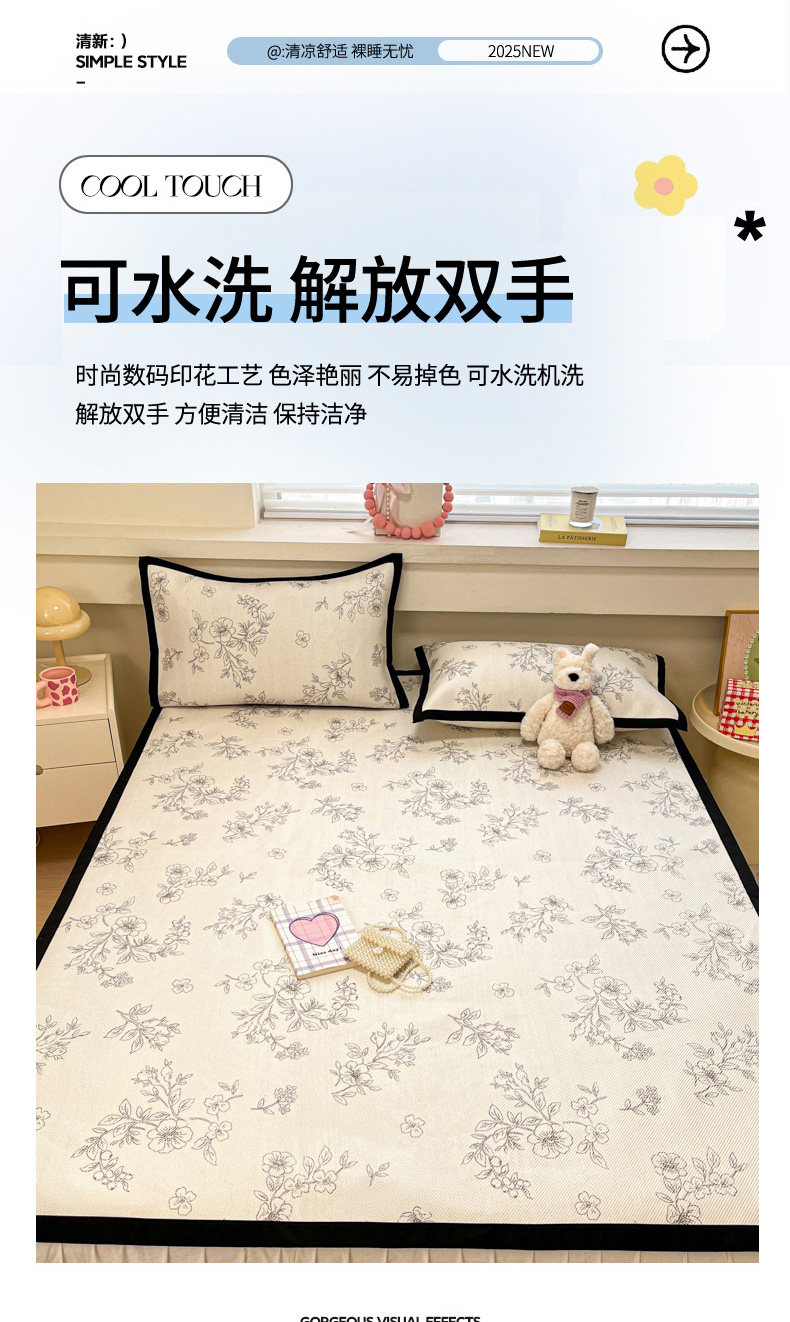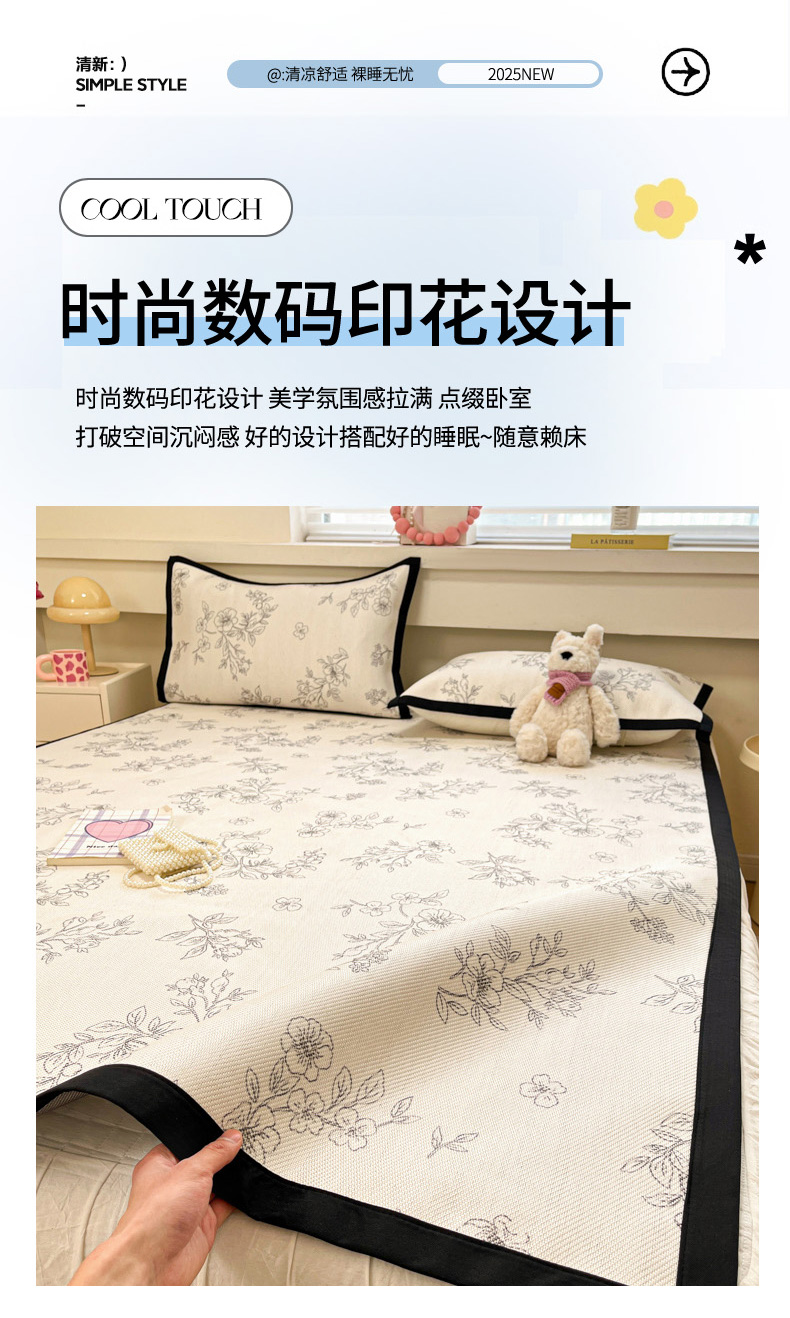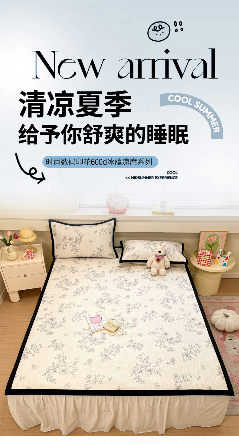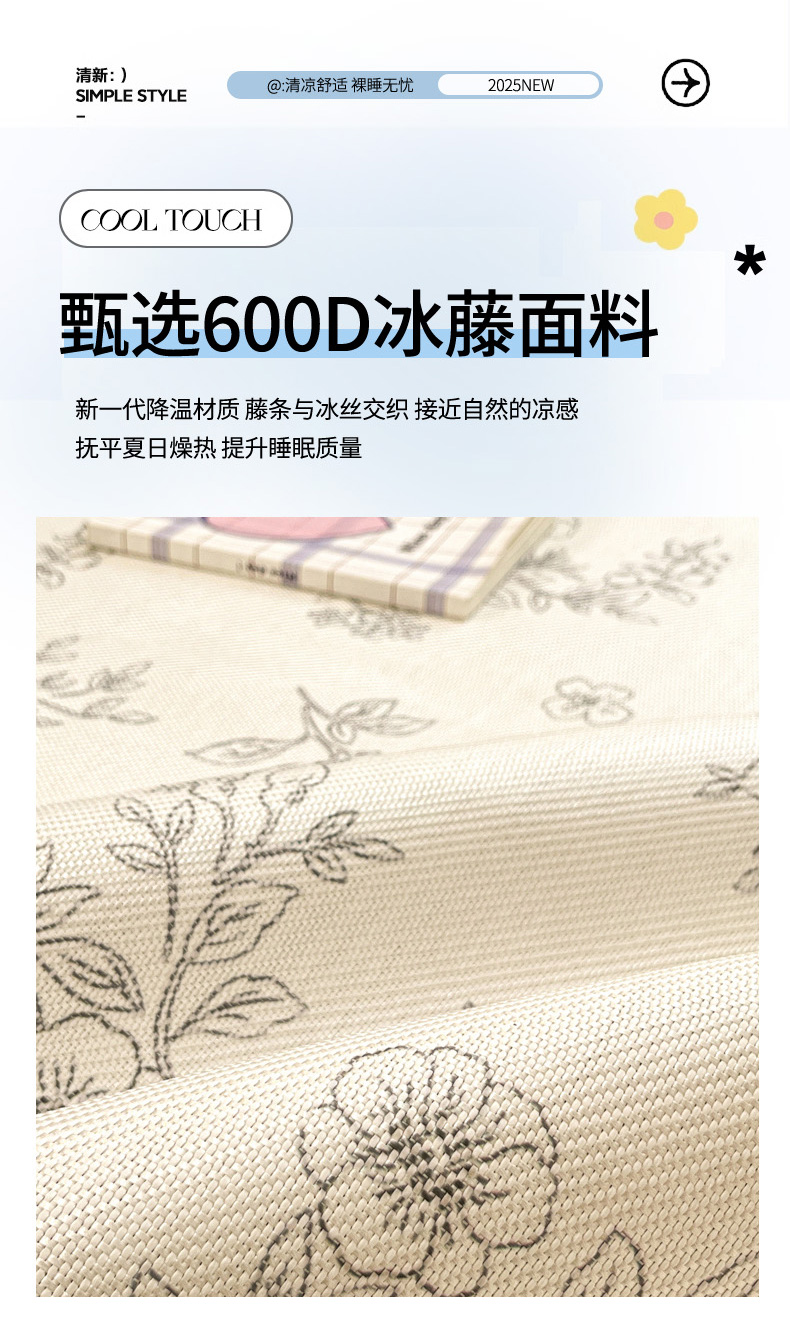 慕澄家纺 2025新款小清新印花真冰藤系列凉席床席款 床席-花影