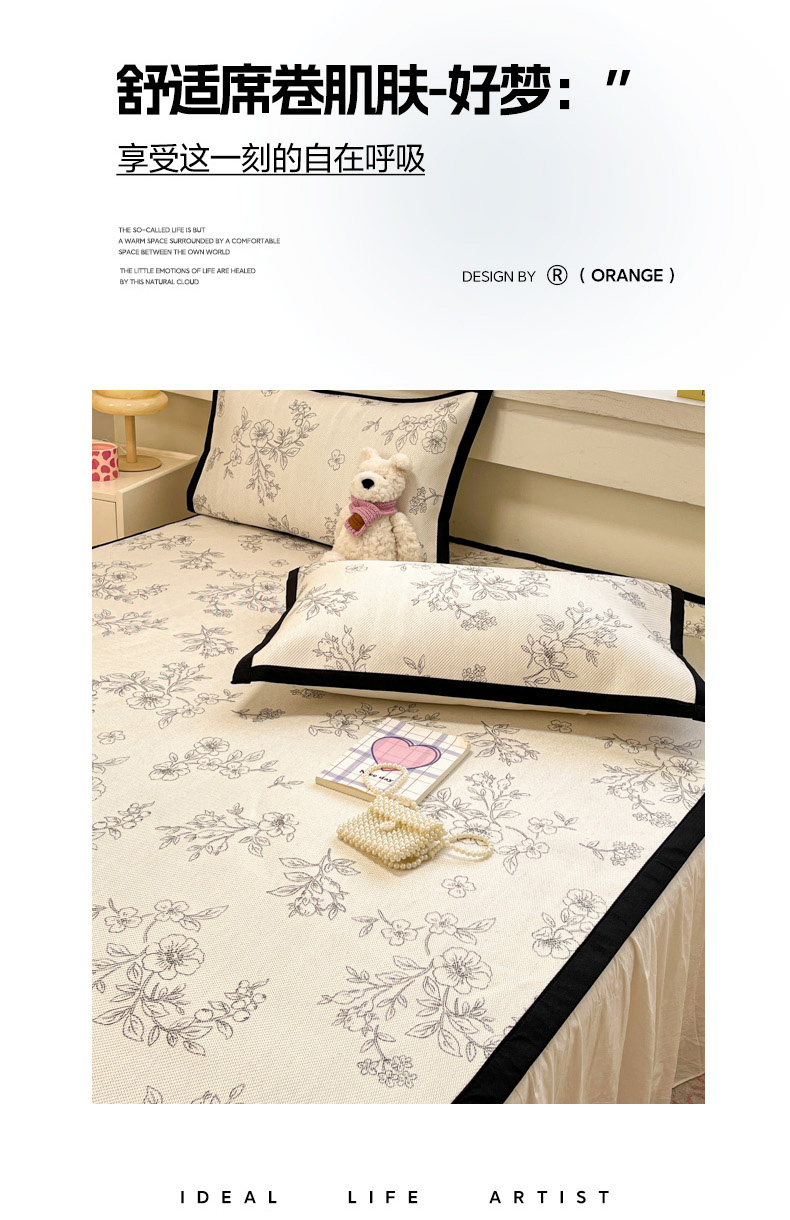 商品名称:慕澄家纺 2025新款小清新印花真冰藤系列凉席床席款 床席-花影