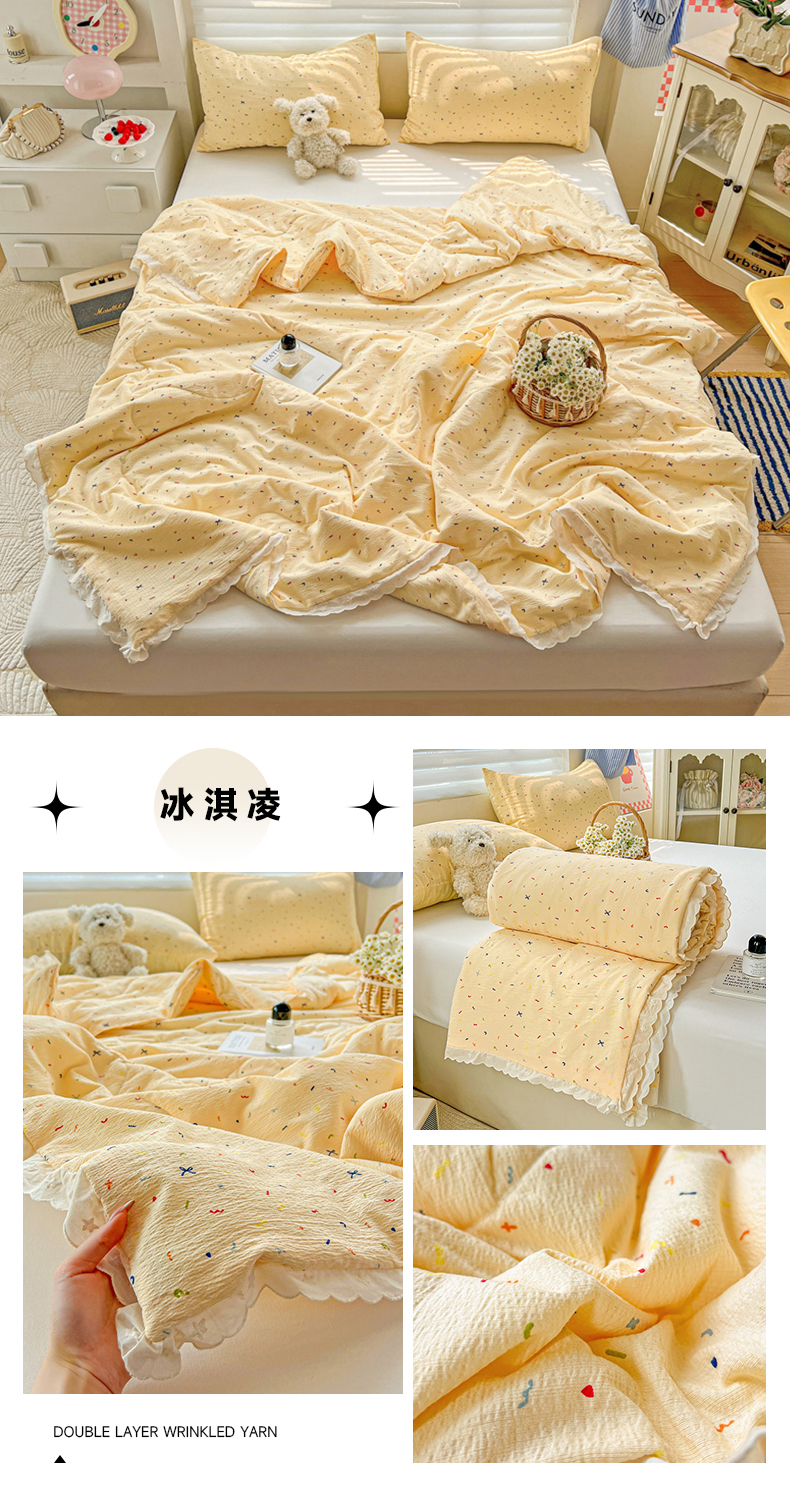 商品名称:一比一家纺 2025新款云感皱皱双层纱全棉纯棉花边单夏被夏凉被空调被系列 冰淇凌