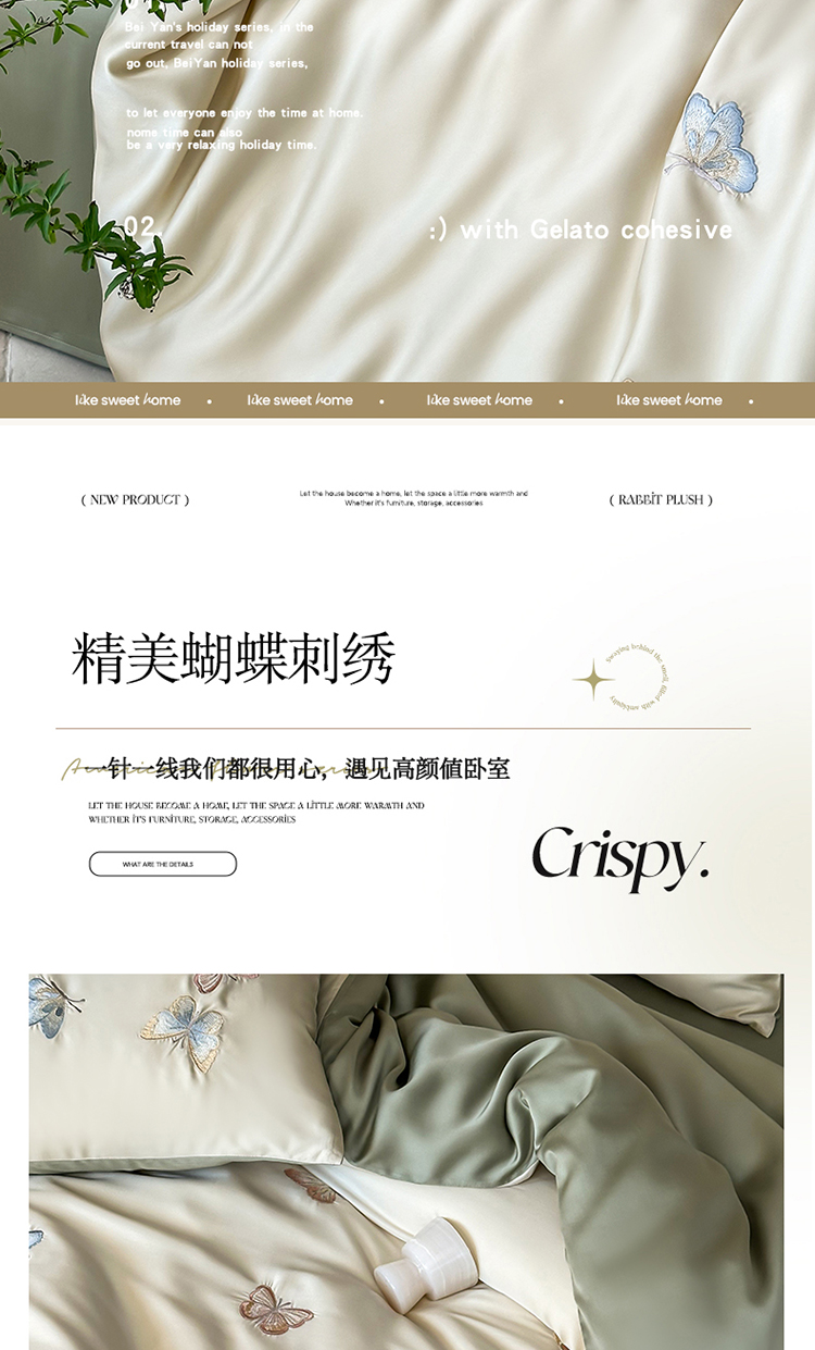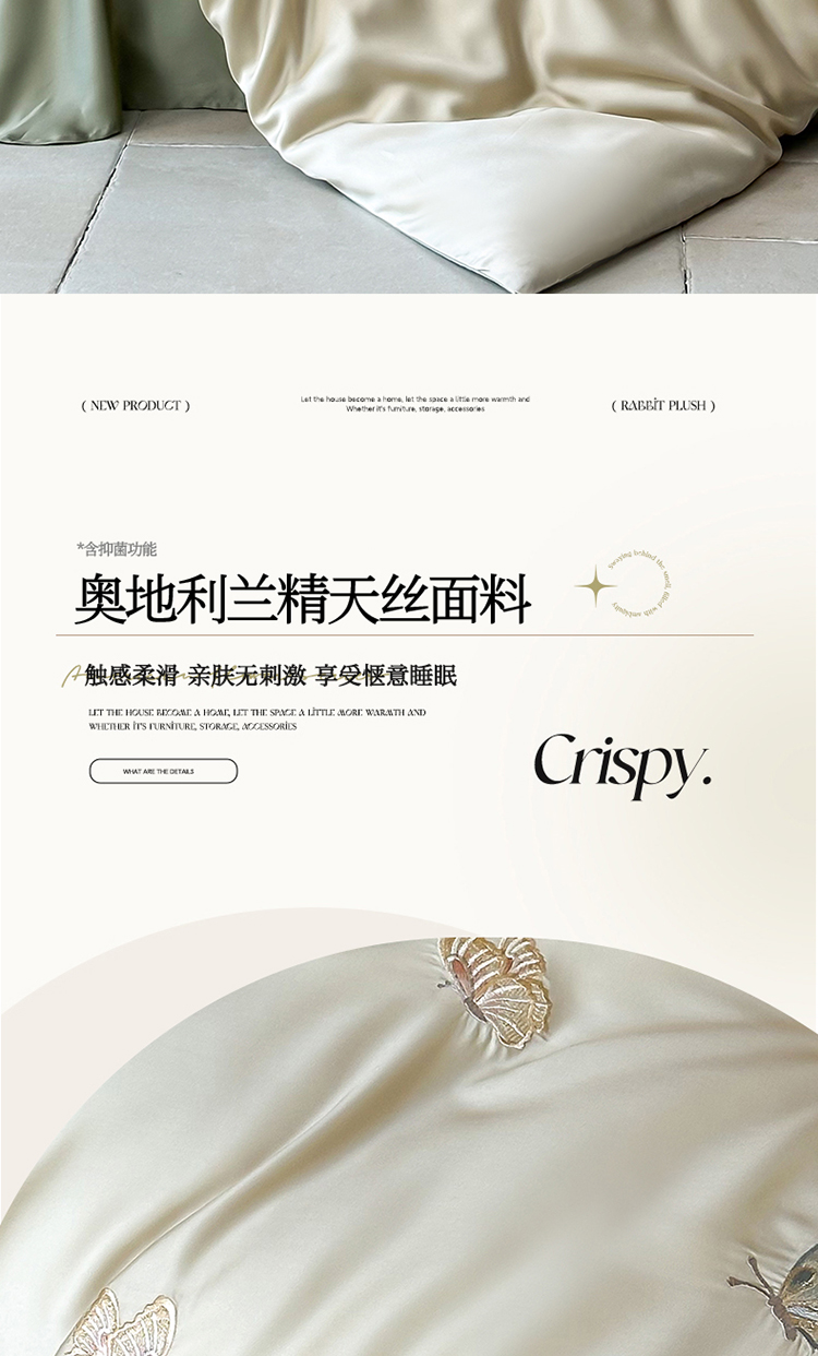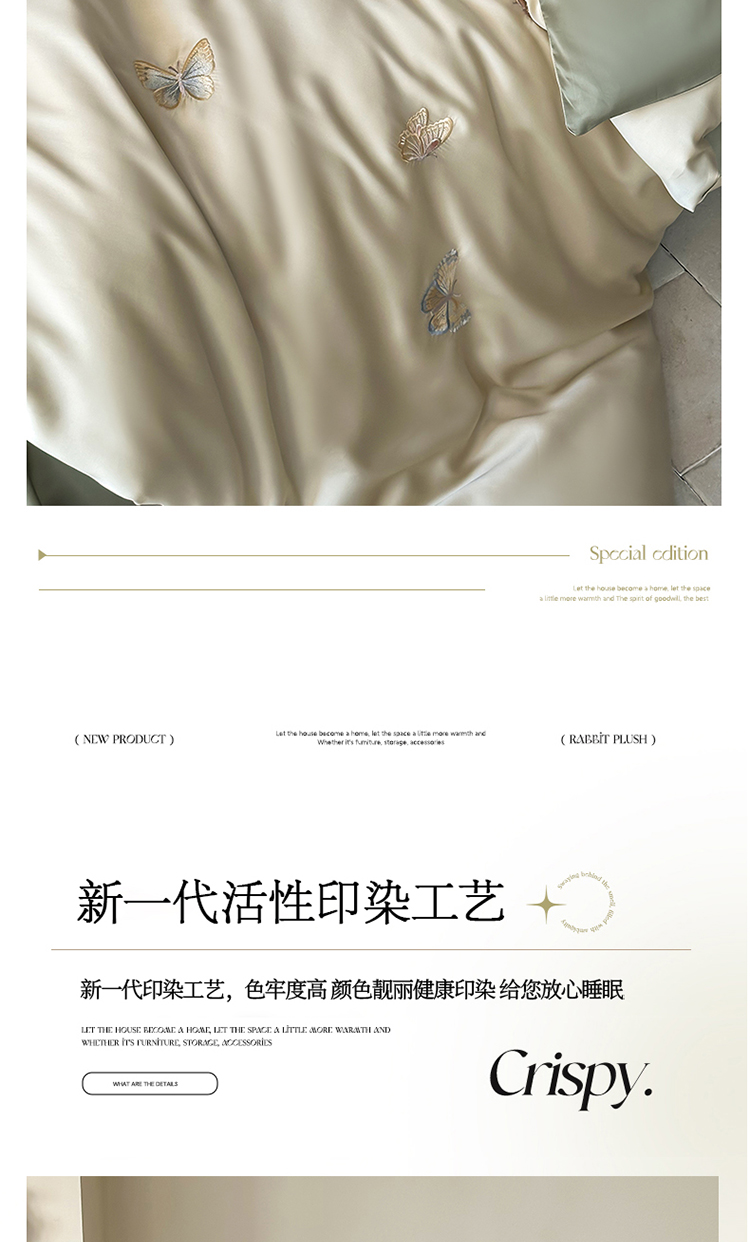 当前位置: 91家纺网 > 商品网购 > 床品套件 > 四件套 > 全棉普通四件套 > 2025新款奥地利60支兰精天丝蝴蝶套件-晨曦 晨曦-绿