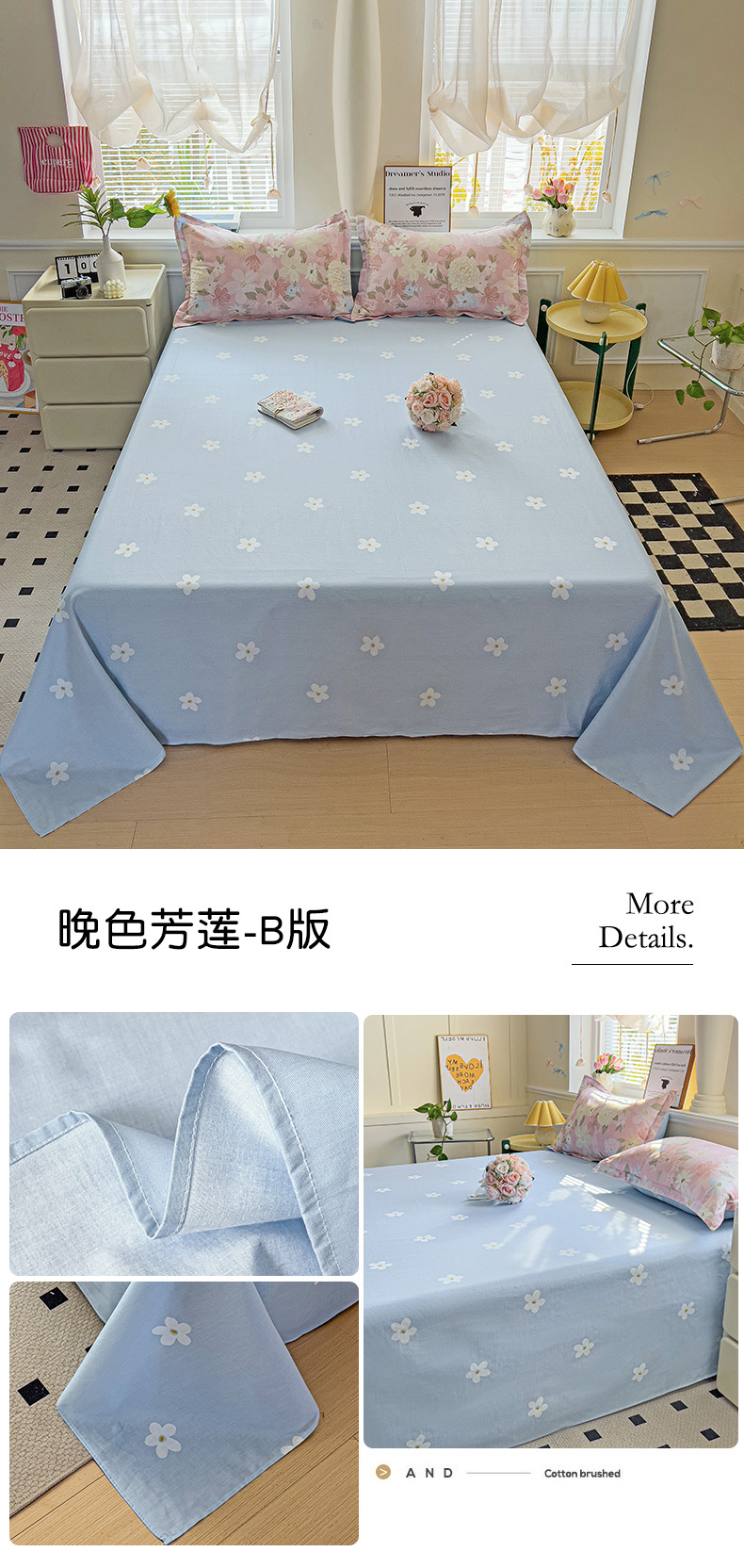 依庭 2025新款全棉印花花卉款四件套单品系列-单床单 晚色芳莲-B版