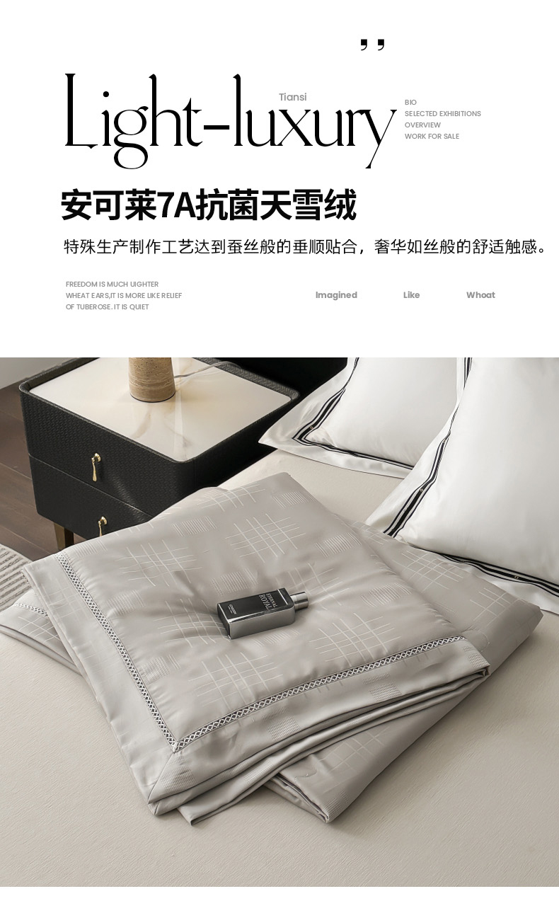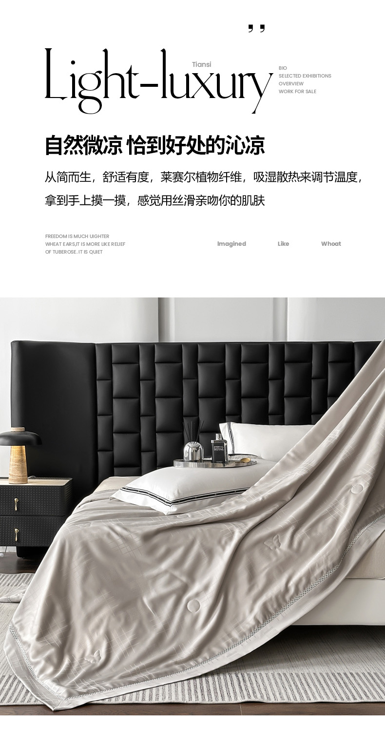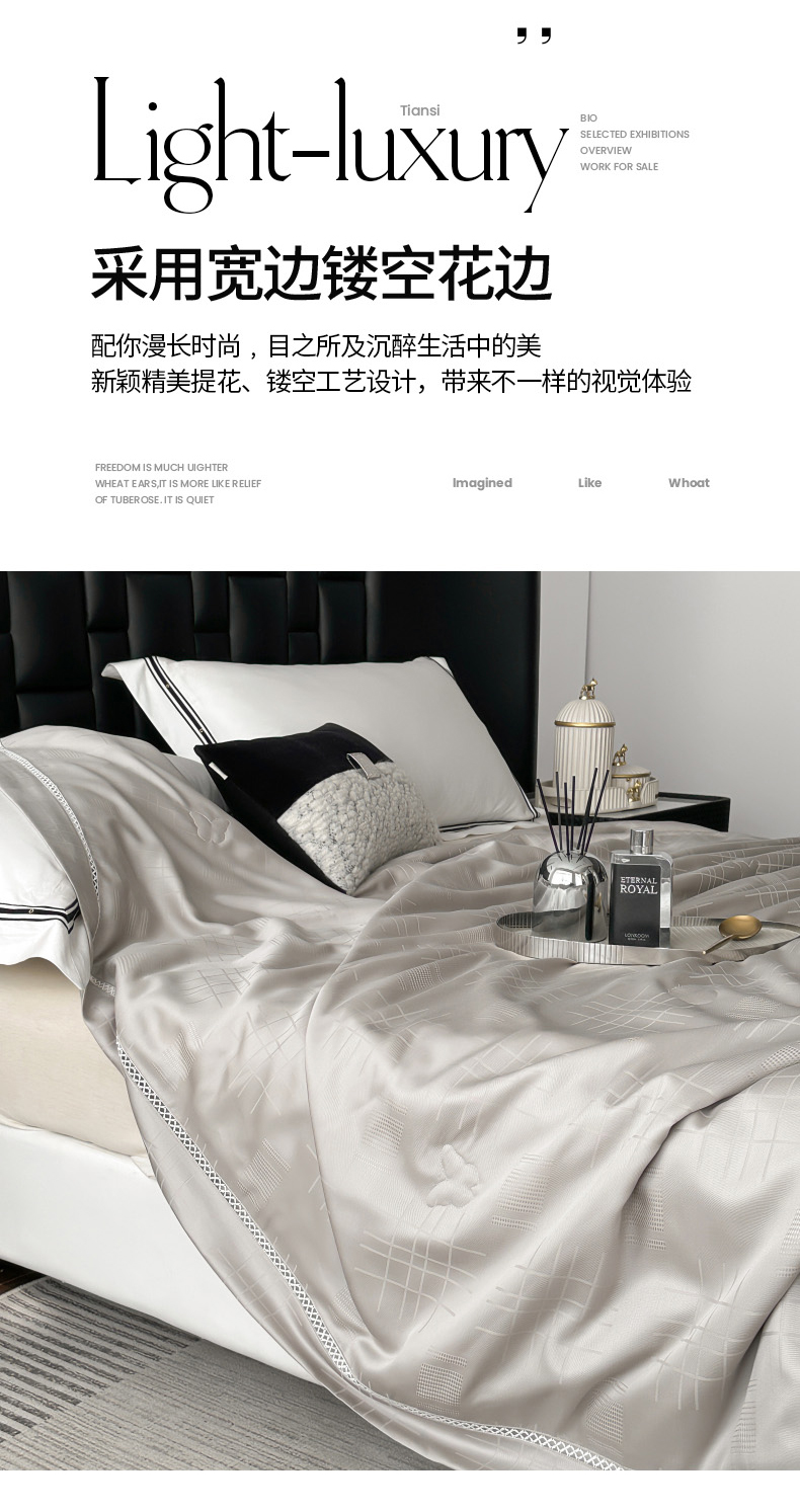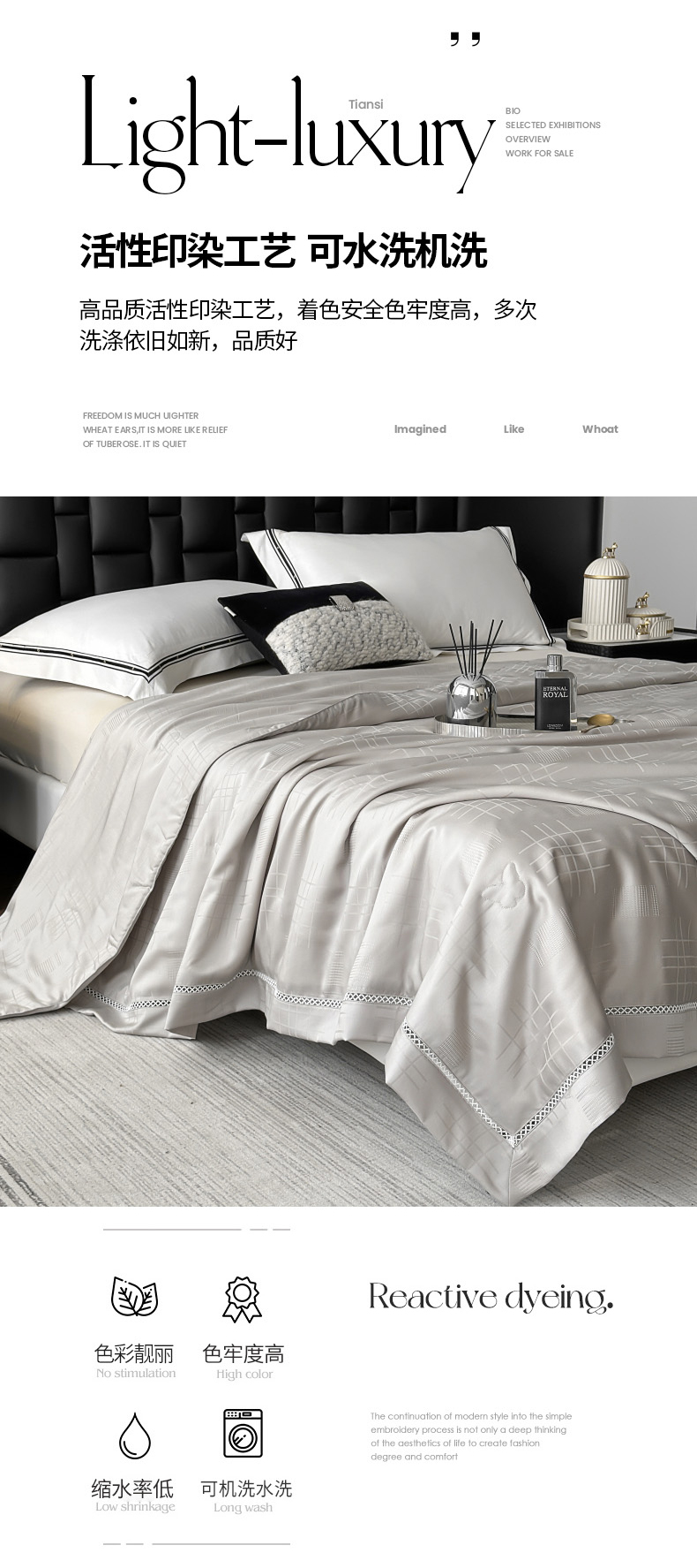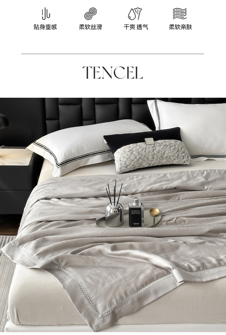 商品名称:蜜柚 2025新款卡伦50s莱赛尔天丝提花工艺夏被夏凉被空调被 卡伦灰