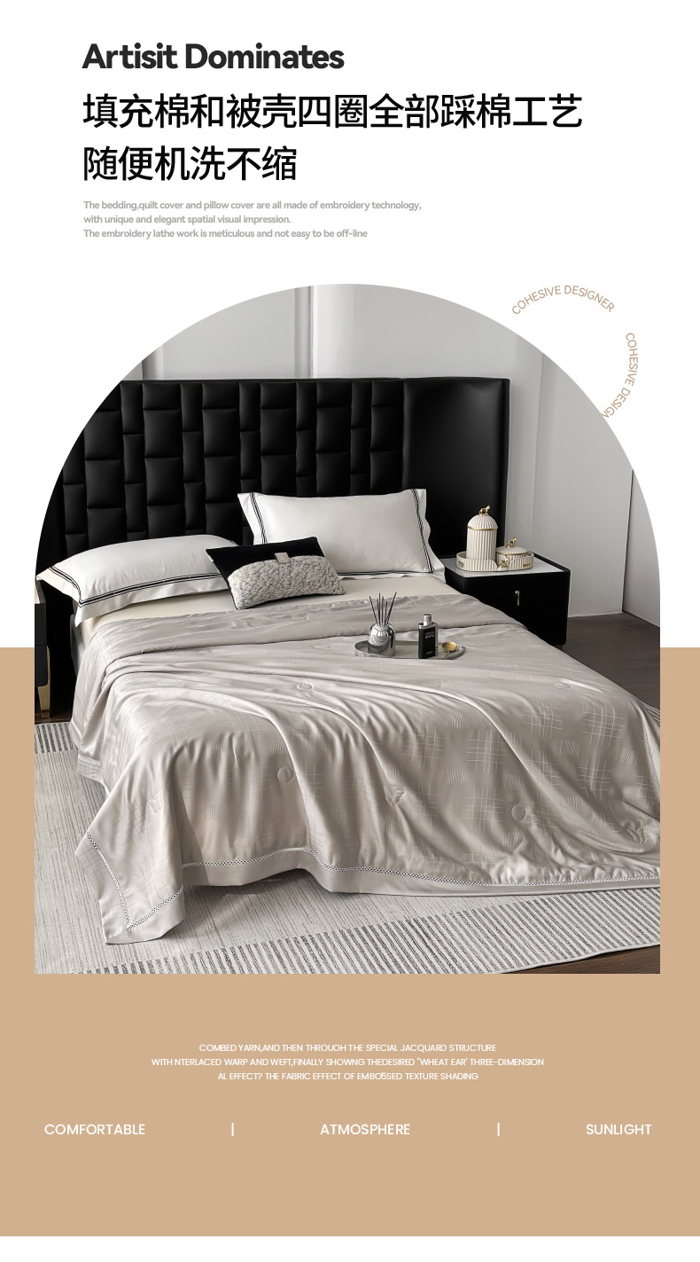 (总)蜜柚 2025新款卡伦50s莱赛尔天丝提花工艺夏被夏凉被空调被,卡伦绿,卡伦金,卡伦灰,卡伦米,组合图仅供参考