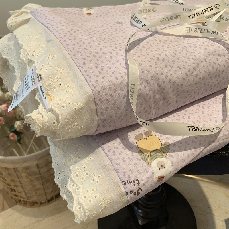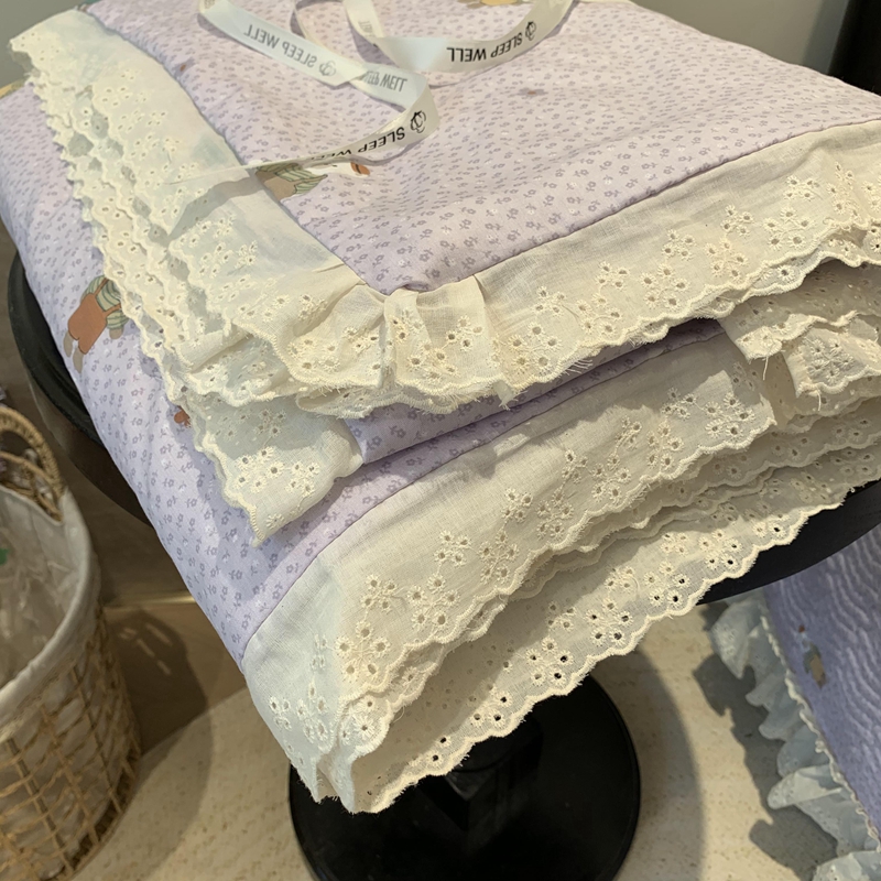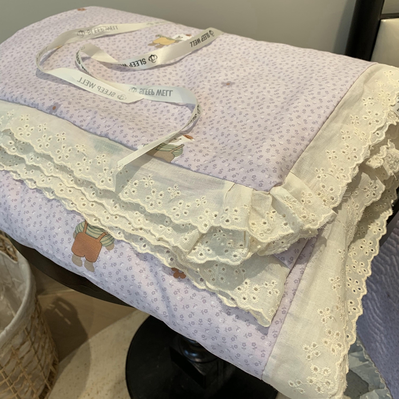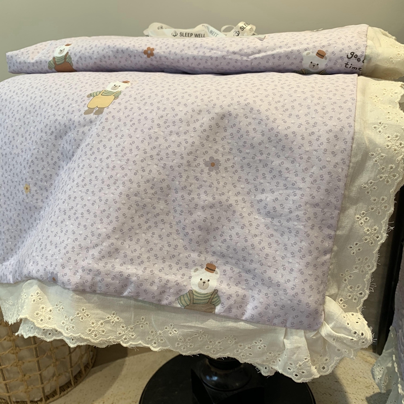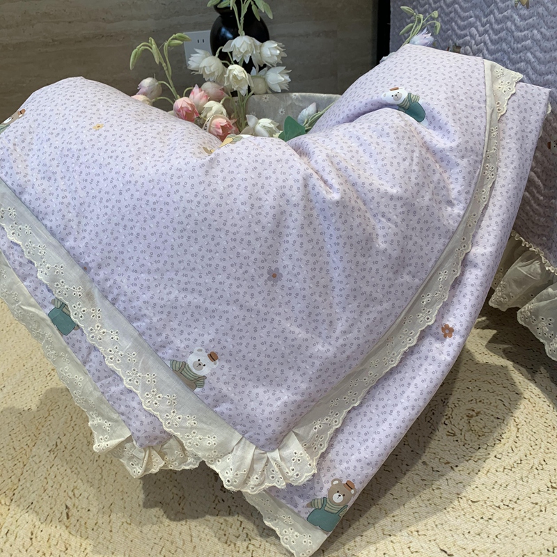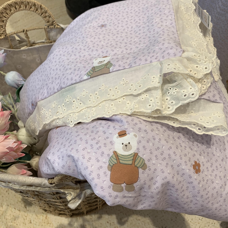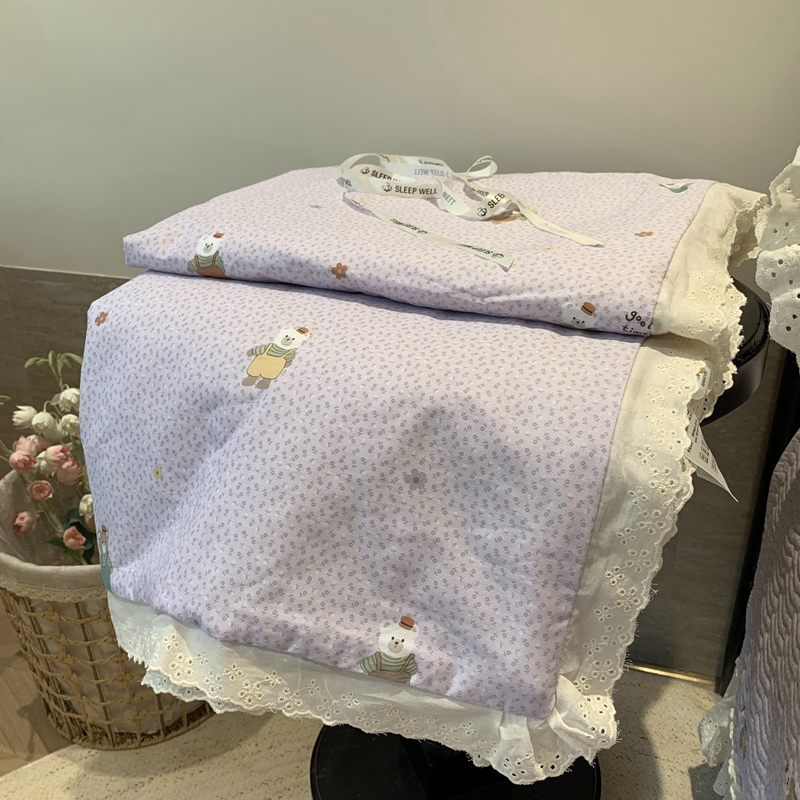 奈萝家纺 2025春夏新款全棉纯棉蕾丝花边款夏被夏凉被空调被 呆呆熊
