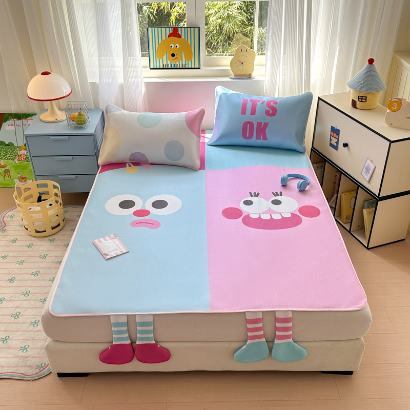 (总)一霖家纺 2025新款大版卡通牛奶绒四件套,搞怪新新紫,俏皮小新-黄,俏皮小新-蓝,甜心猫咪,星空小新