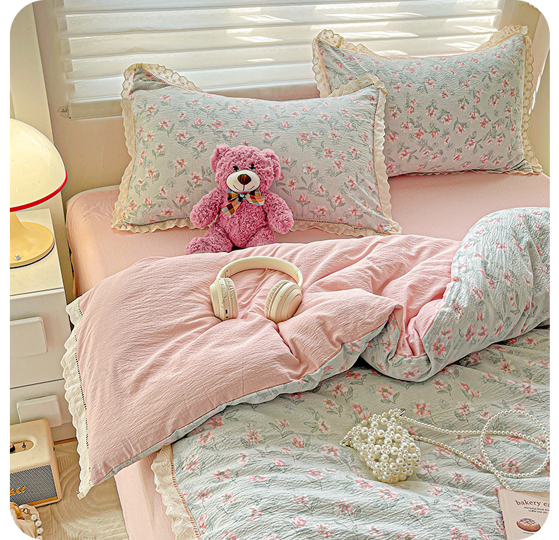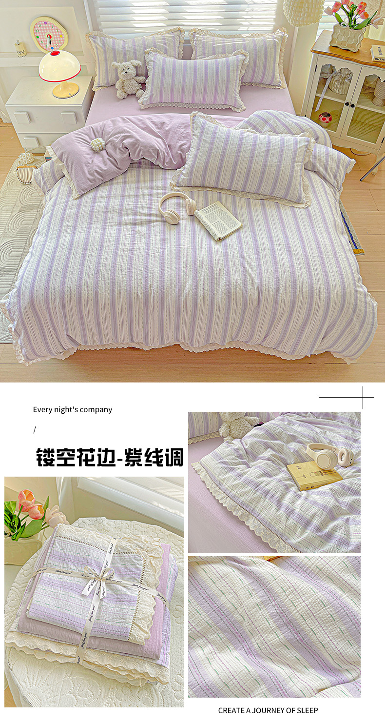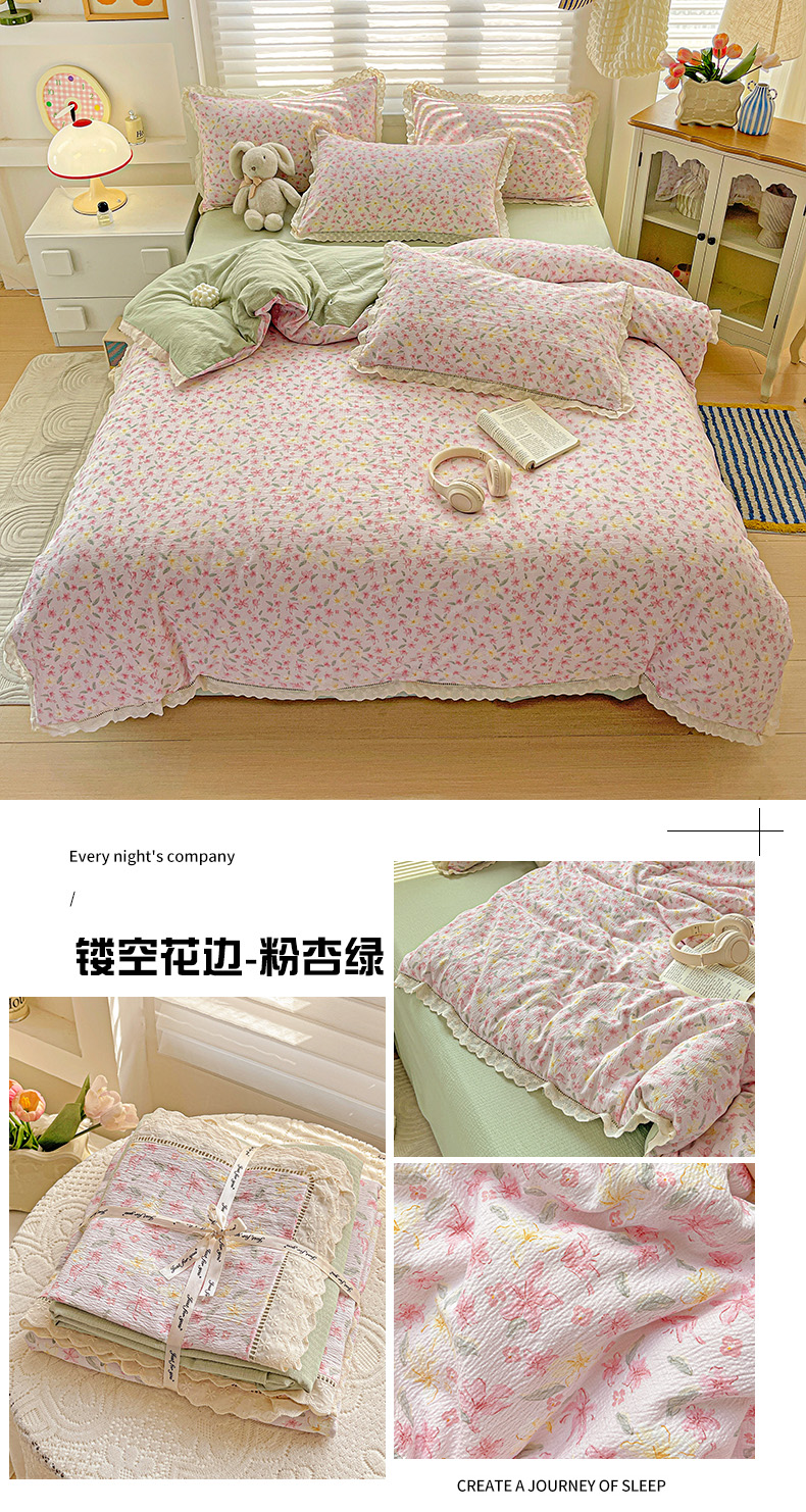 当前位置: 91家纺网 > 商品网购 > 床品套件 > 四件套 > 其它四件套 > 金梦拉家纺 2025新款提花纱布皱皱纱四件套(全棉镂空花边款) 镂空花边-花开半夏