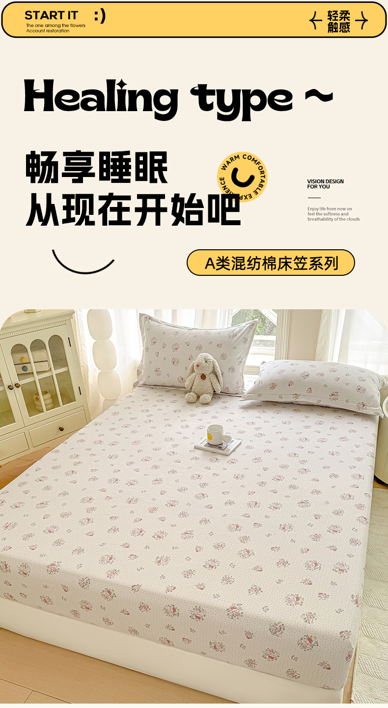 • 91家纺网 家纺一手货源 找家纺 丝芙妮家居(原乐视家纺) 2025新款A类混纺70棉床笠 花间