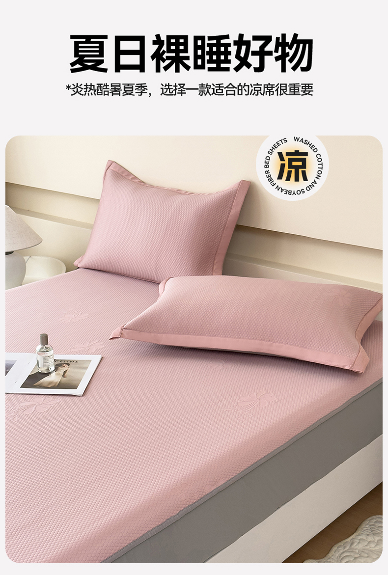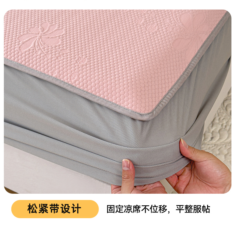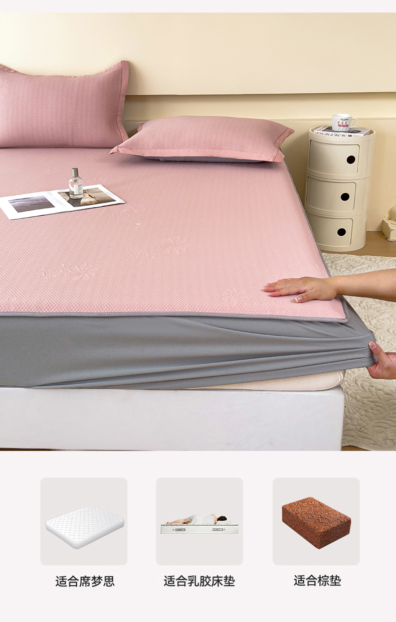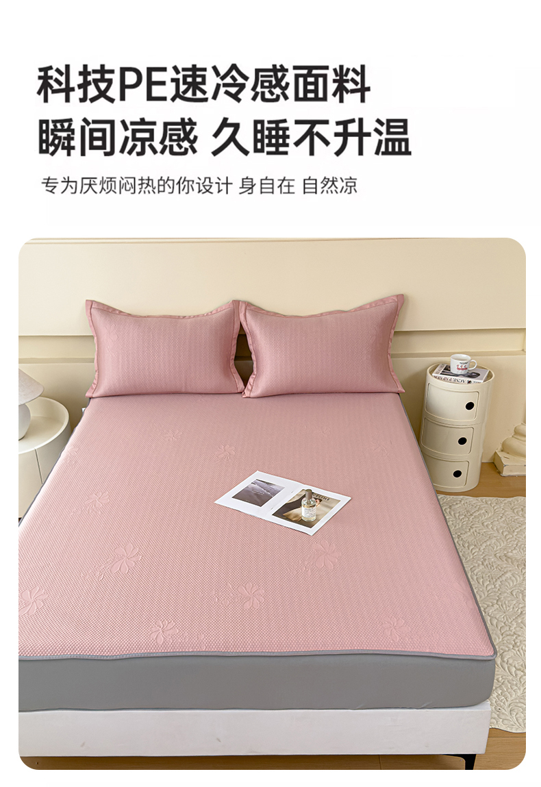 瑞兴纺 2025新款高分子PE软凉席绣花款床笠款 床笠款-花之语-粉
