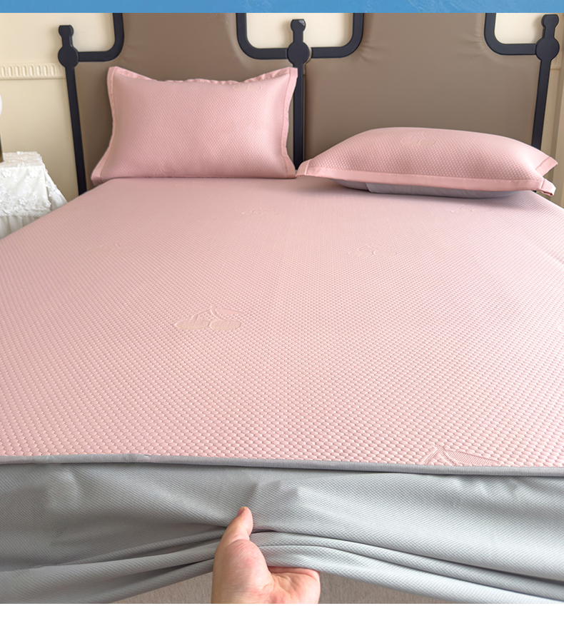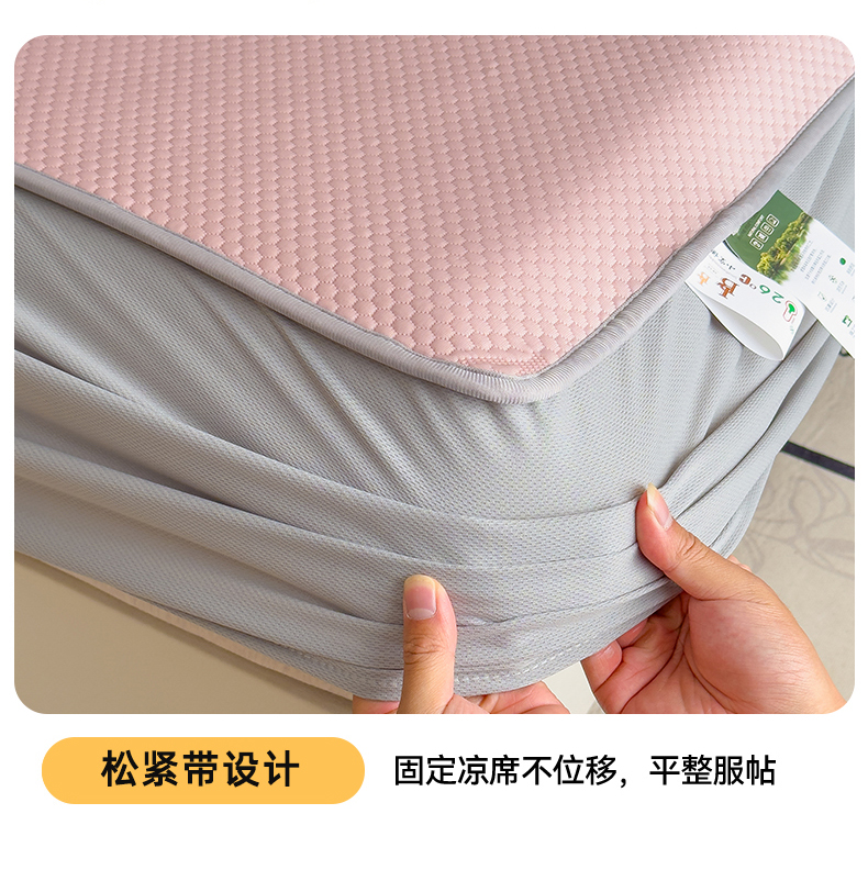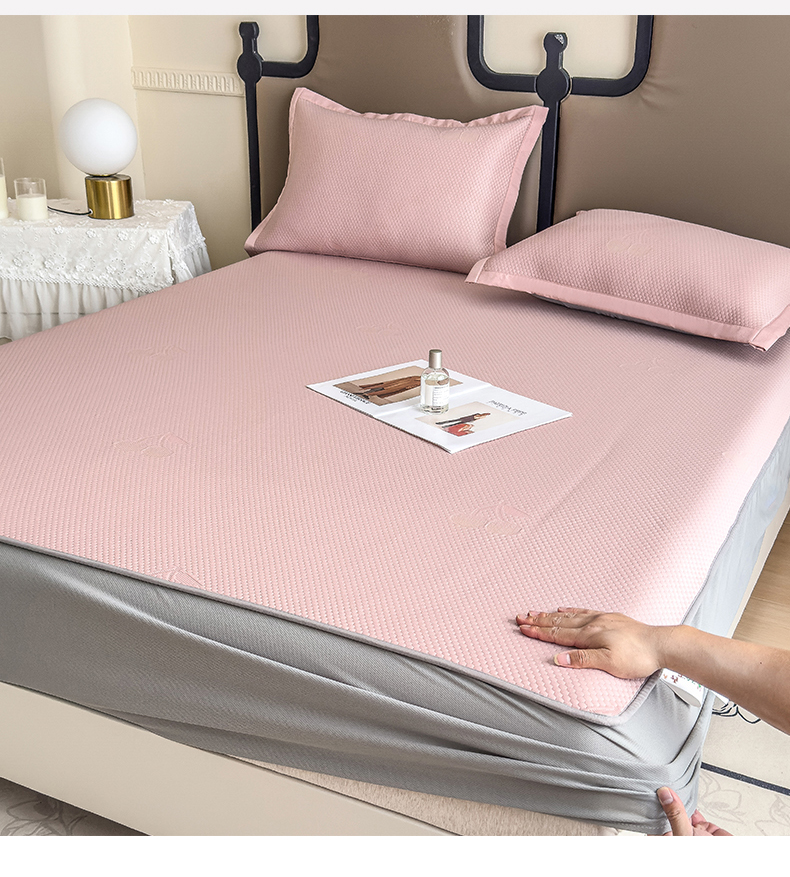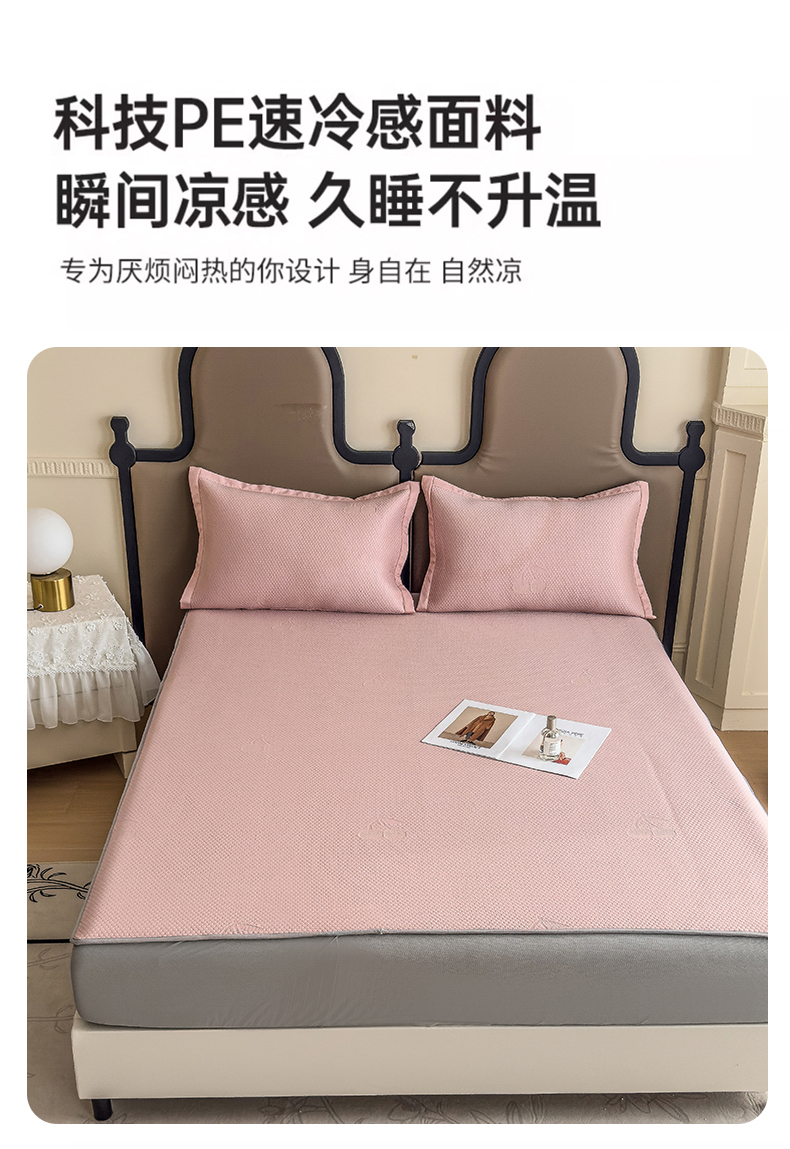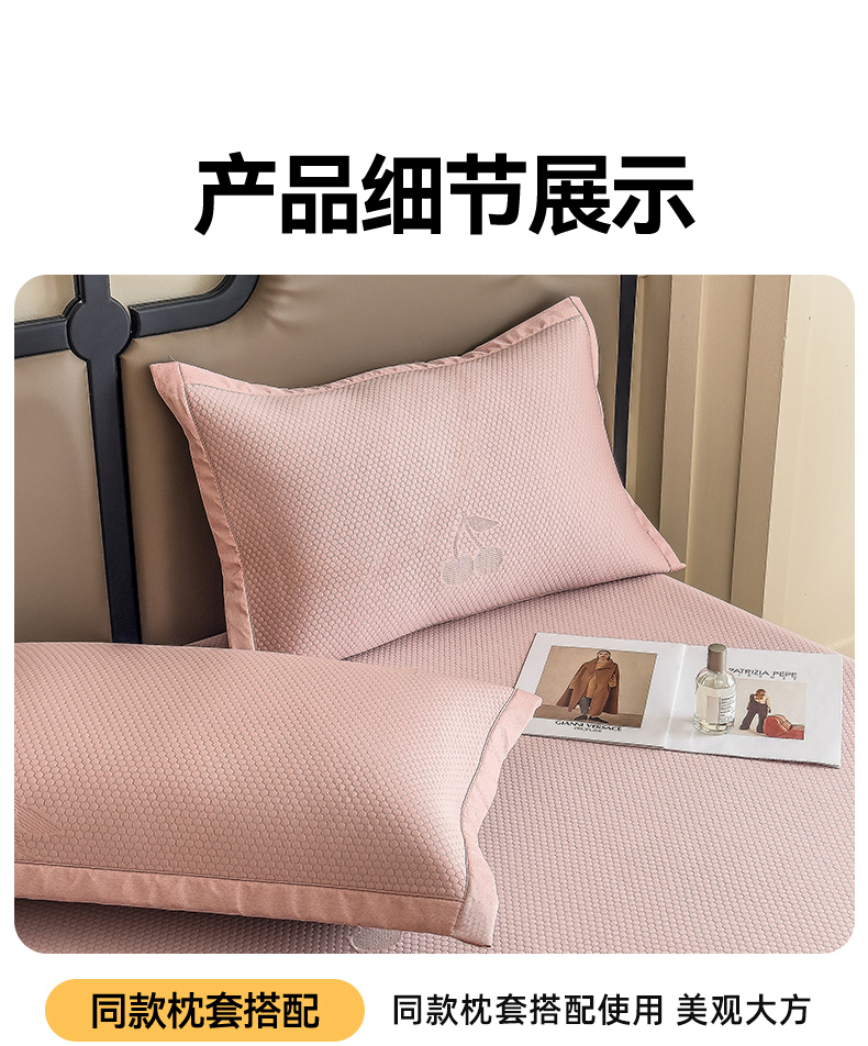 瑞兴纺 2025新款高分子PE软凉席绣花款床笠款 床笠款-樱桃-粉