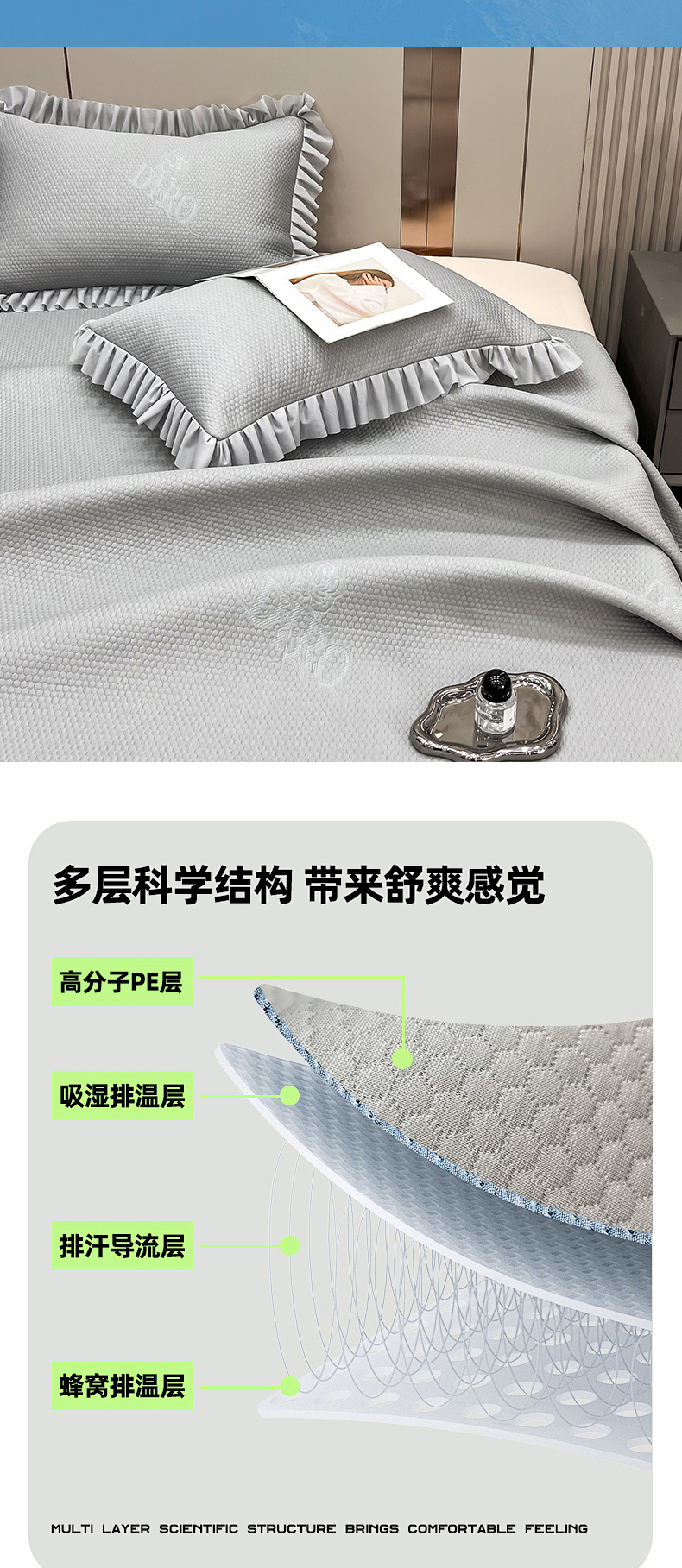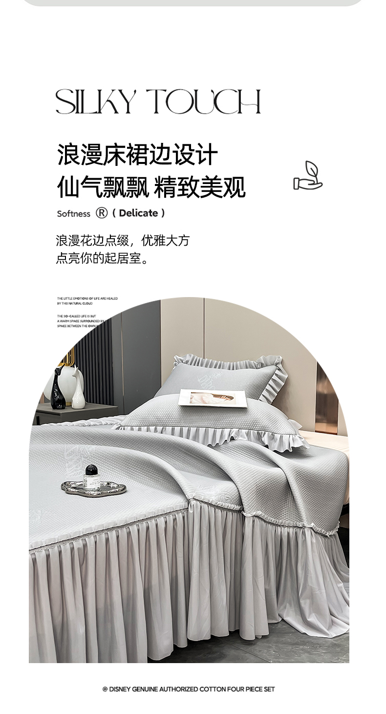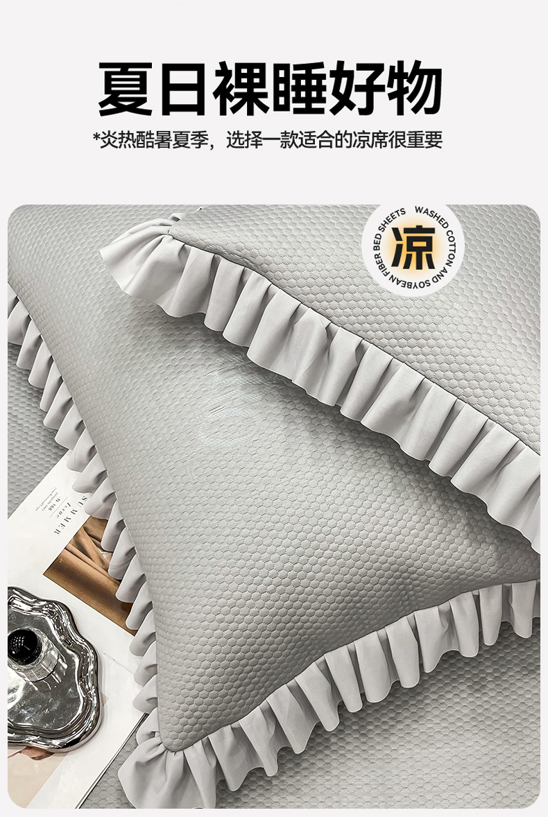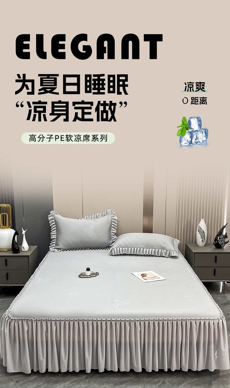 瑞兴纺 2025新款高分子PE软凉席款床裙款 床裙款-玫瑰之恋-灰