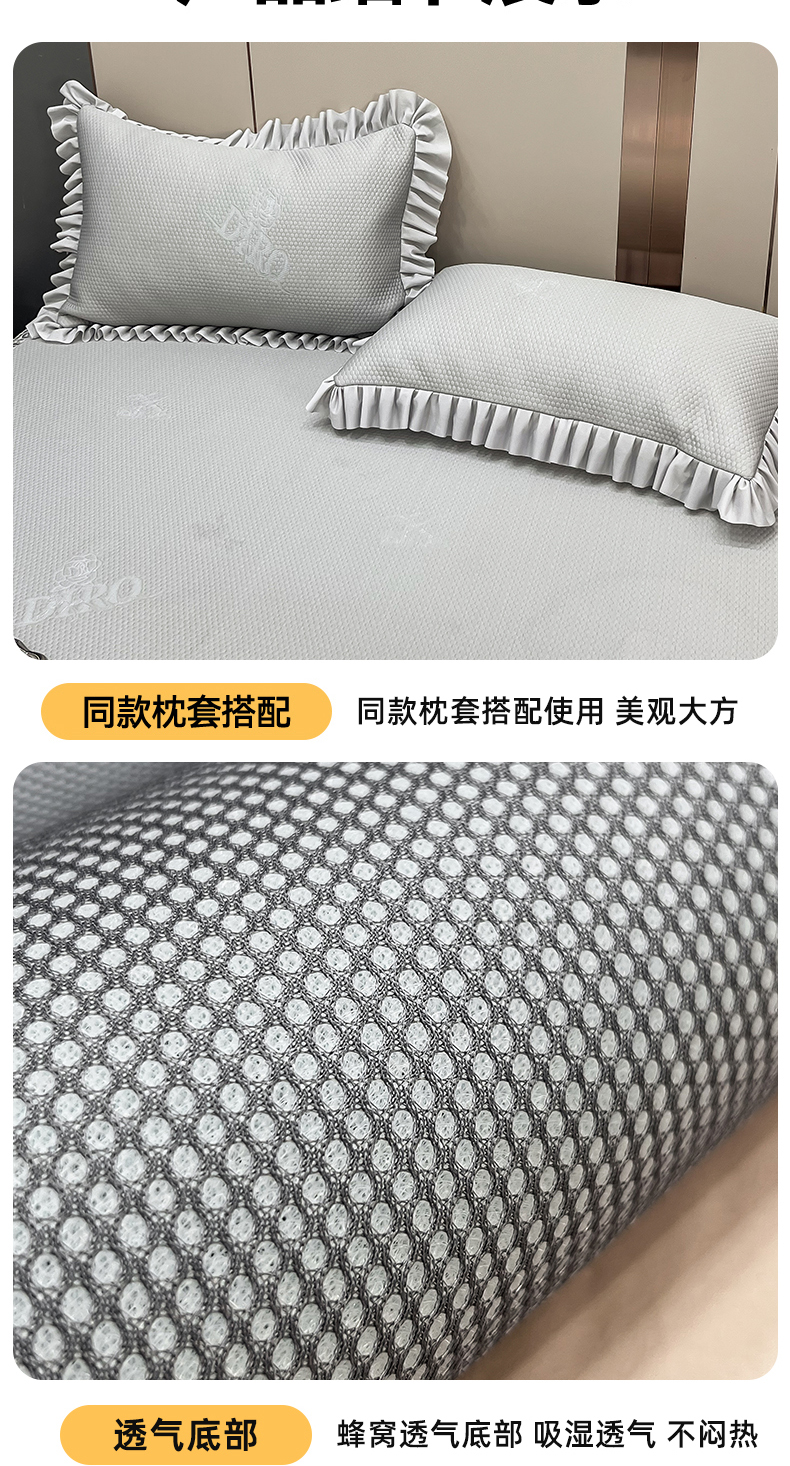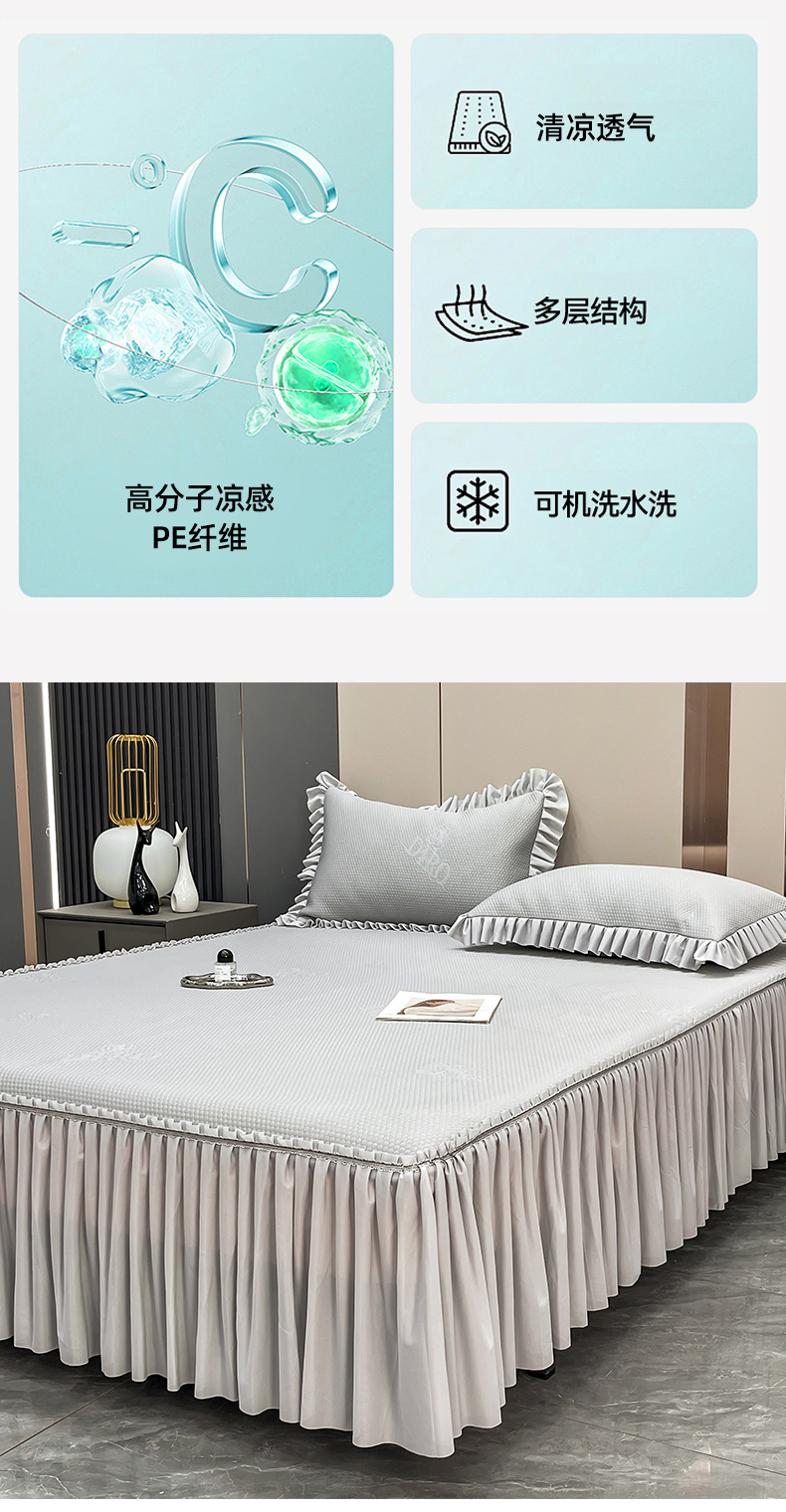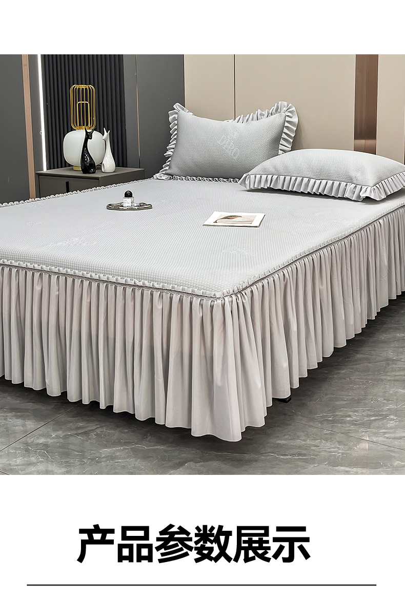 • 91家纺网 家纺一手货源 找家纺 瑞兴纺 2025新款高分子PE软凉席款床裙款 床裙款-玫瑰之恋-灰