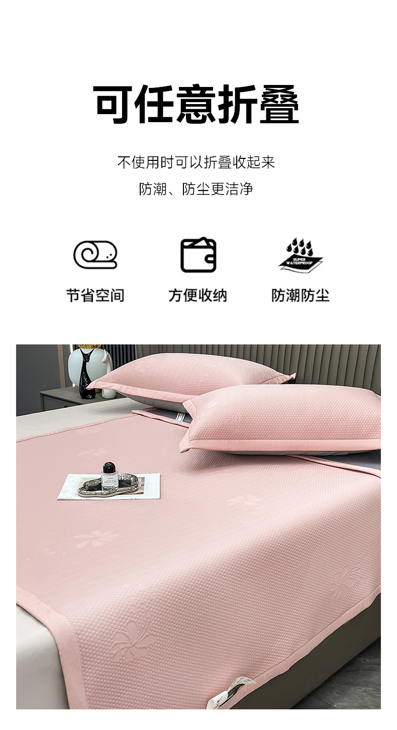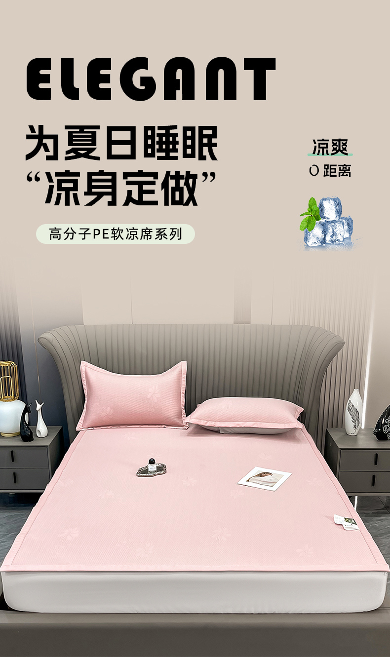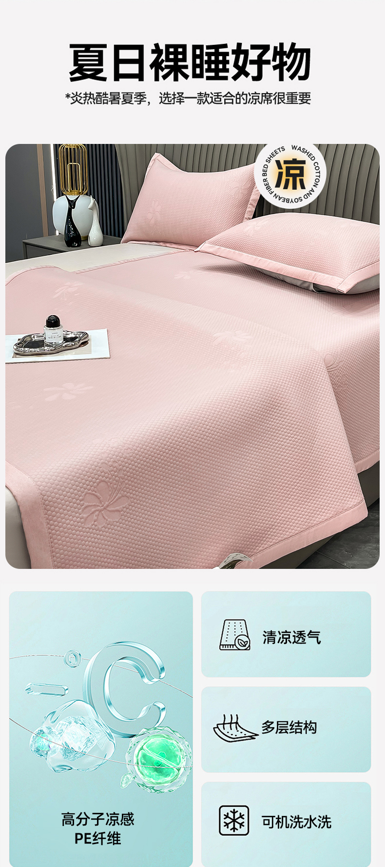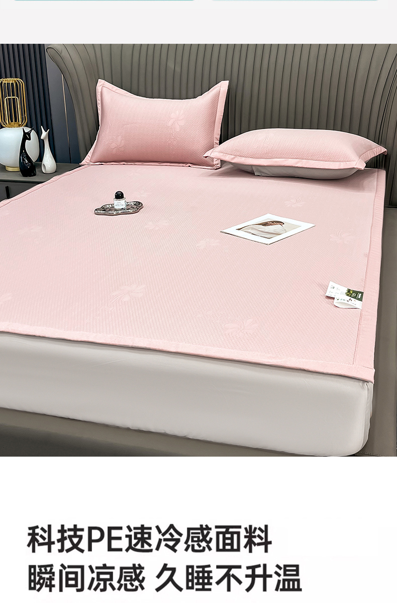 瑞兴纺 2025新款高分子PE软凉席绣花款床单款 床单款-花之语-粉