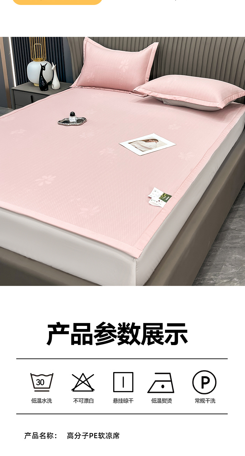 商品名称:瑞兴纺 2025新款高分子PE软凉席绣花款床单款 床单款-花之语-粉