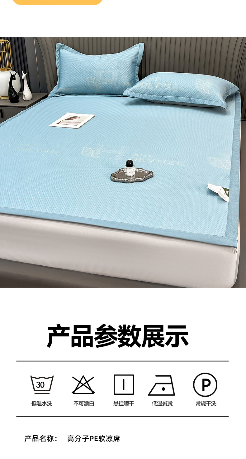 商品名称:瑞兴纺 2025新款高分子PE软凉席绣花款床单款 床单款-路易威-蓝