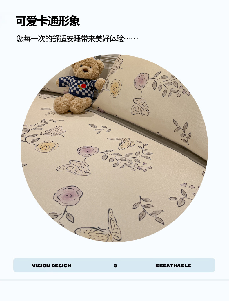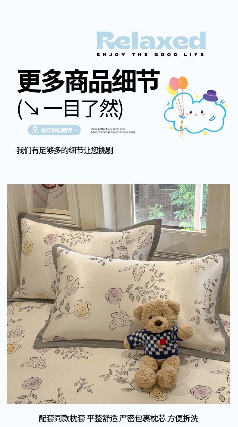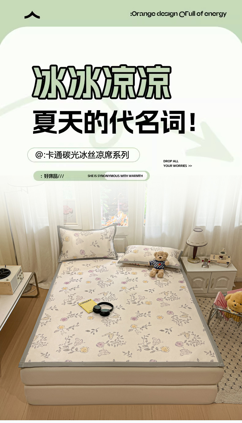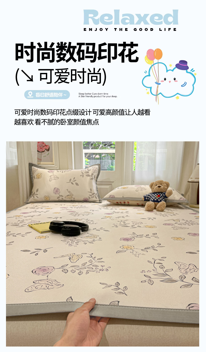 商品名称:慕澄家纺 2025新款小清新萌宠系列碳光冰丝凉席 花间