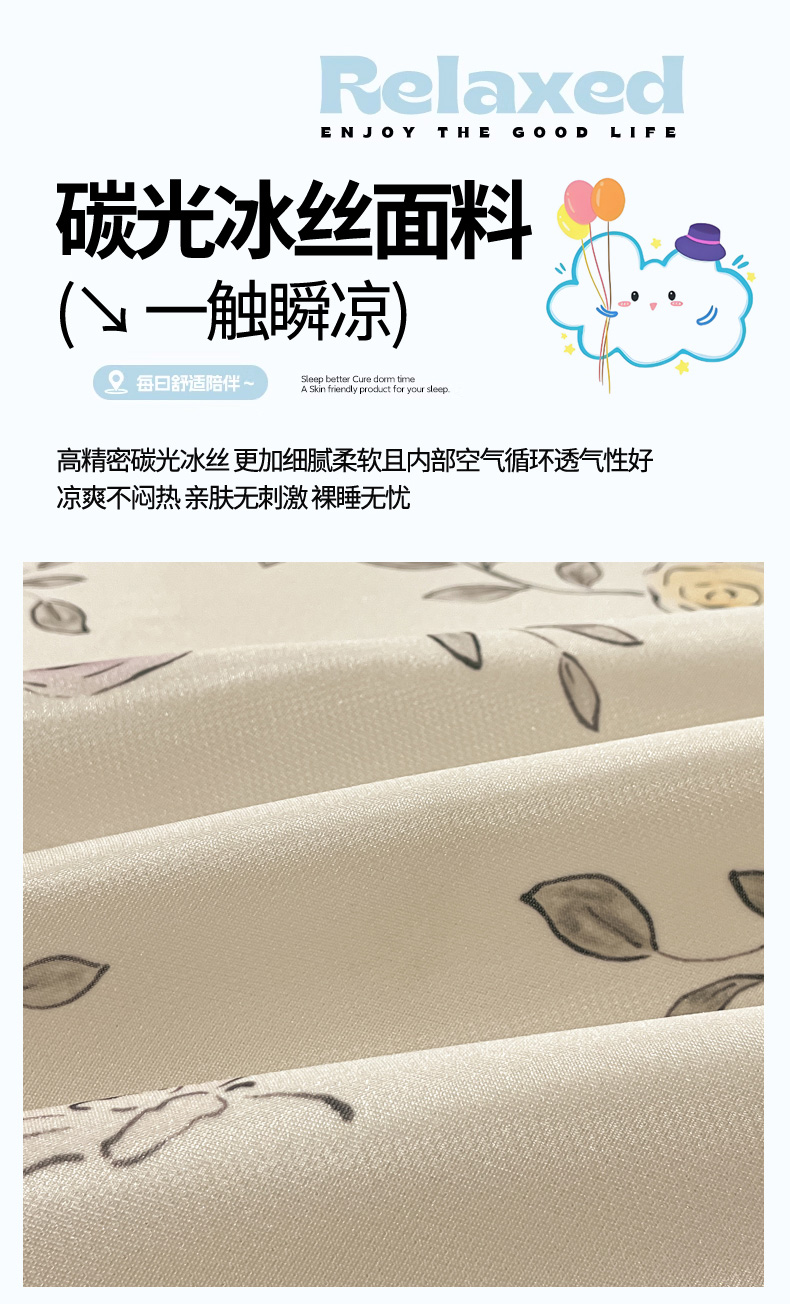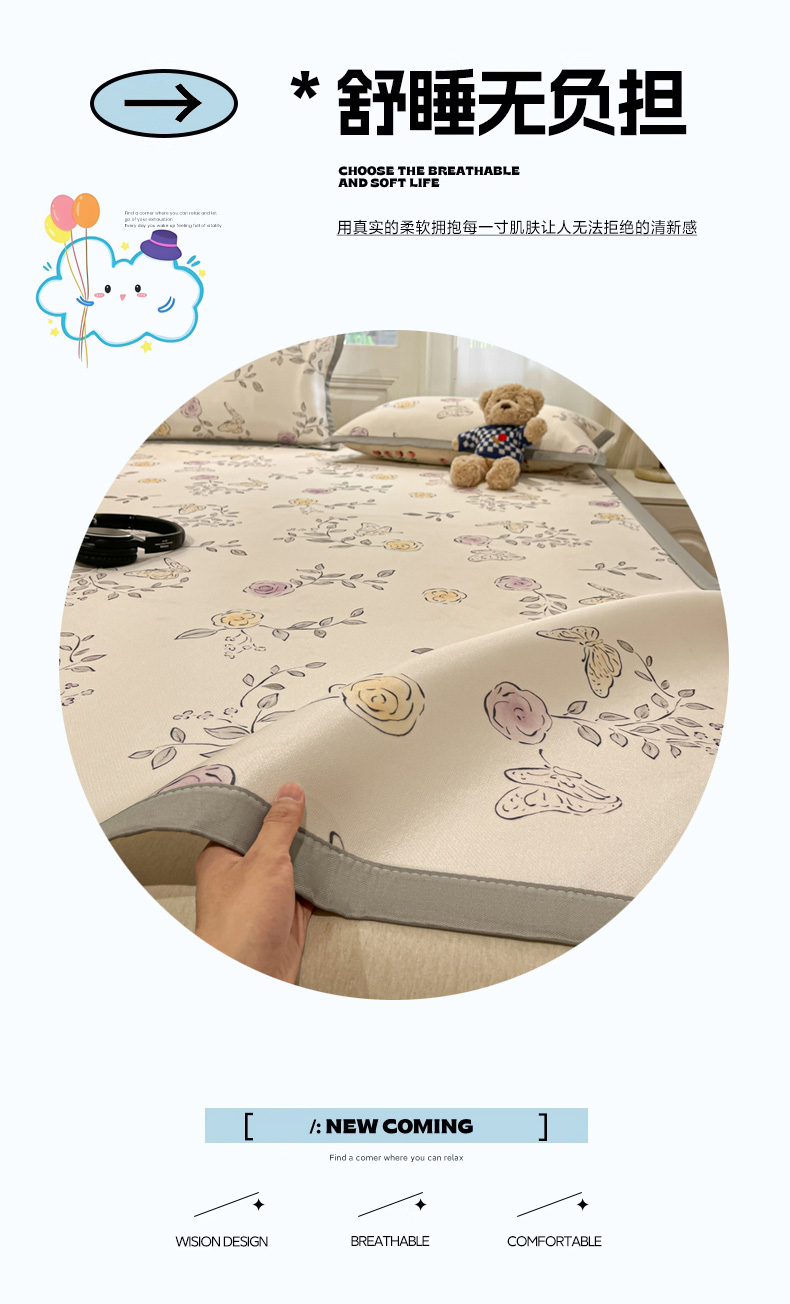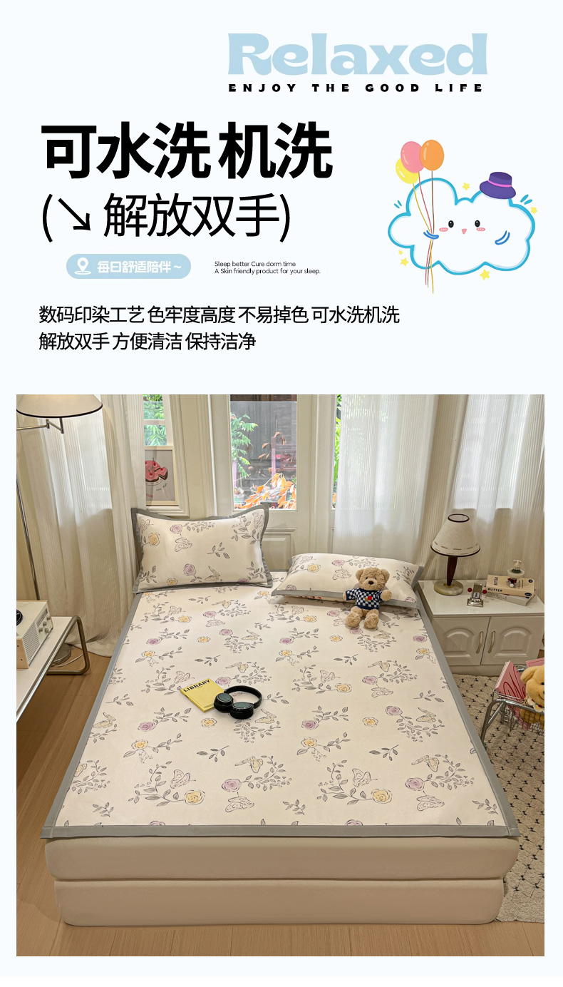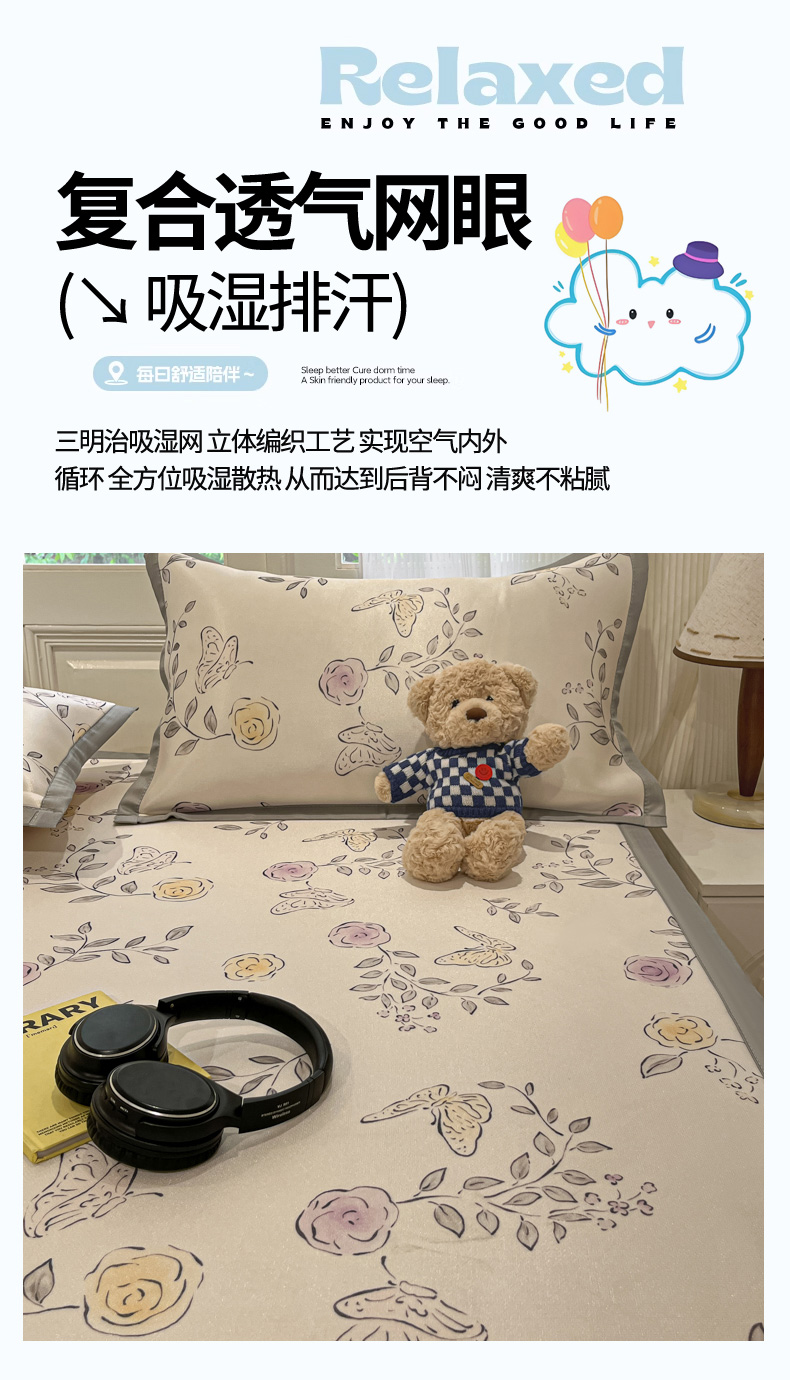 商品名称:慕澄家纺 2025新款小清新萌宠系列碳光冰丝凉席 花间