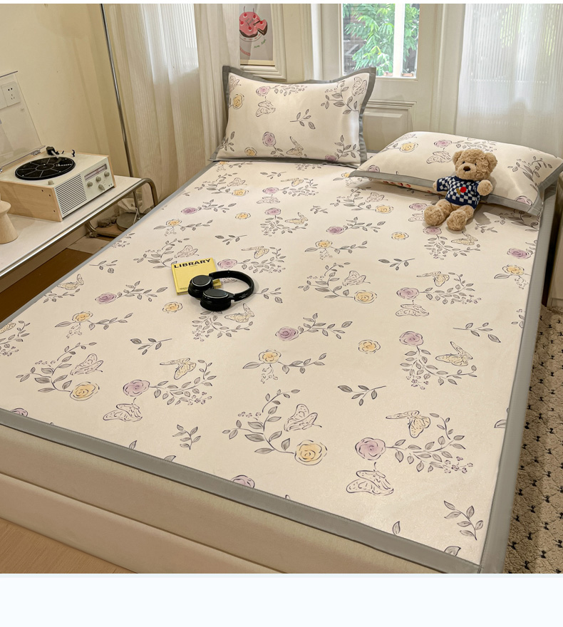 慕澄家纺 2025新款小清新萌宠系列碳光冰丝凉席 花间