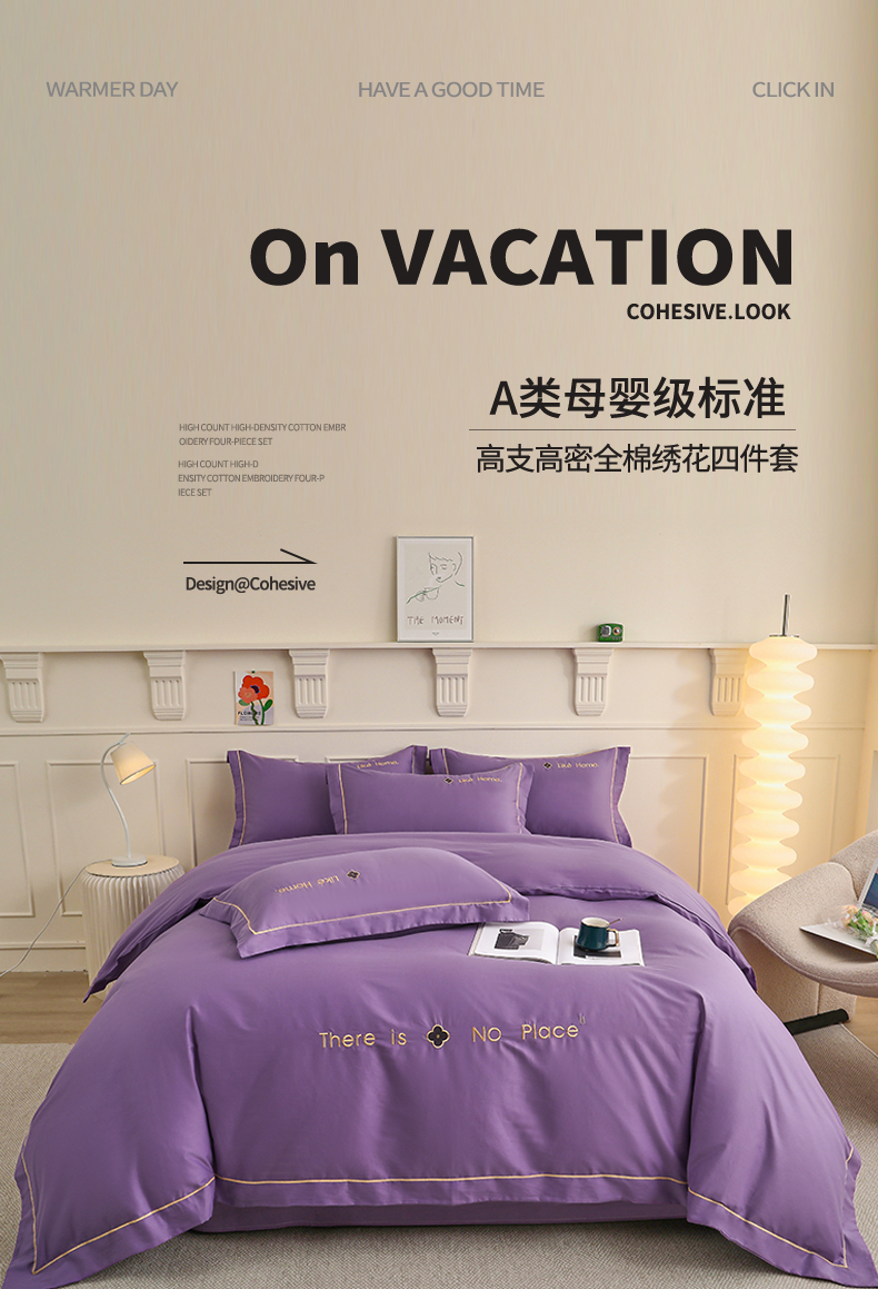 当前位置: 91家纺网 > 商品网购 > 床品套件 > 四件套 > 全棉普通四件套 > 宇彬家纺 2025直播热新款13374全棉母婴级压线一字绣宽边被套纯色刺绣四件套贡缎新疆长绒字母轻奢 暖系列-典雅紫
