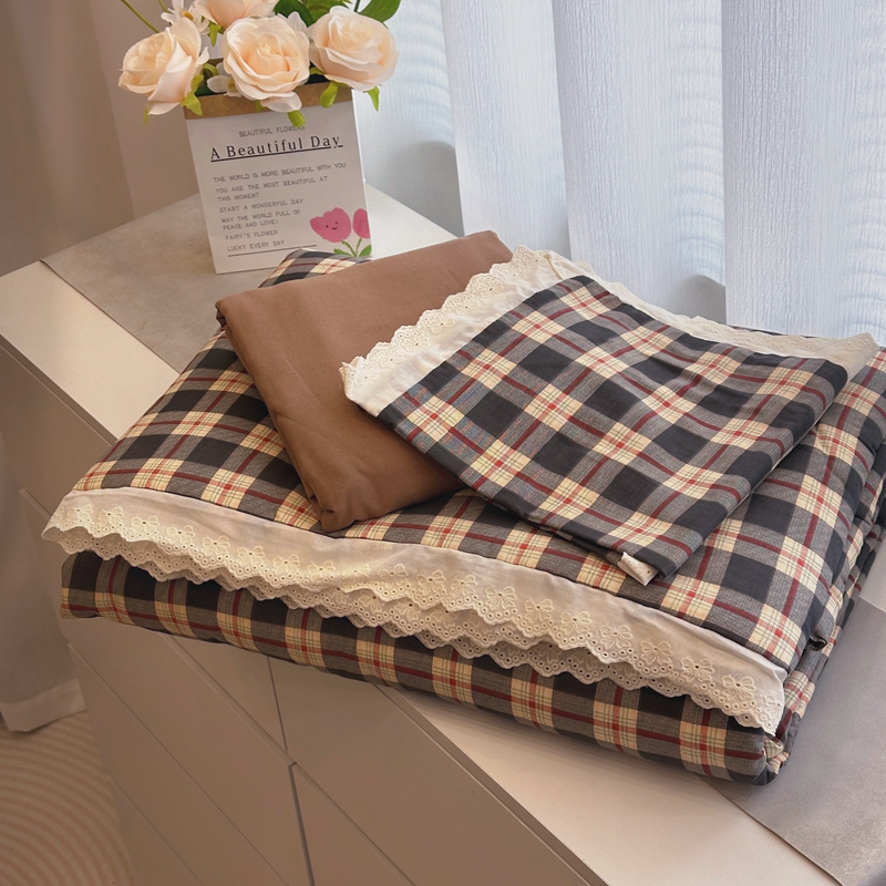 当前位置: 91家纺网 > 商品网购 > 床品套件 > 四件套 > 夏被四件套 > 黛馨 2025春夏新款全棉纯棉A类双层纱工艺款夏被夏凉被空调被四件套蕾丝款 焦糖拿铁