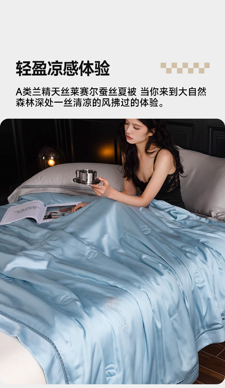 商品名称:被靠被 2025新款可水洗蚕丝夏被-莱德 莱德-冰蓝