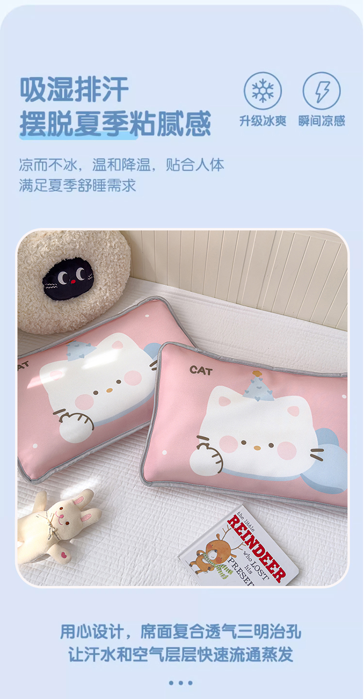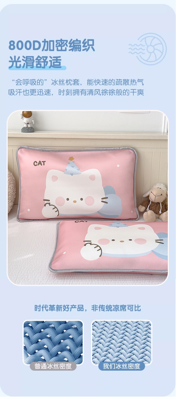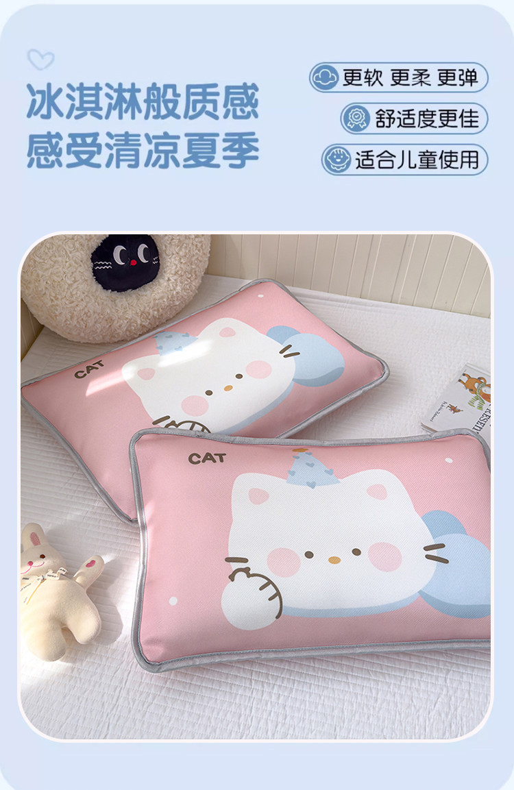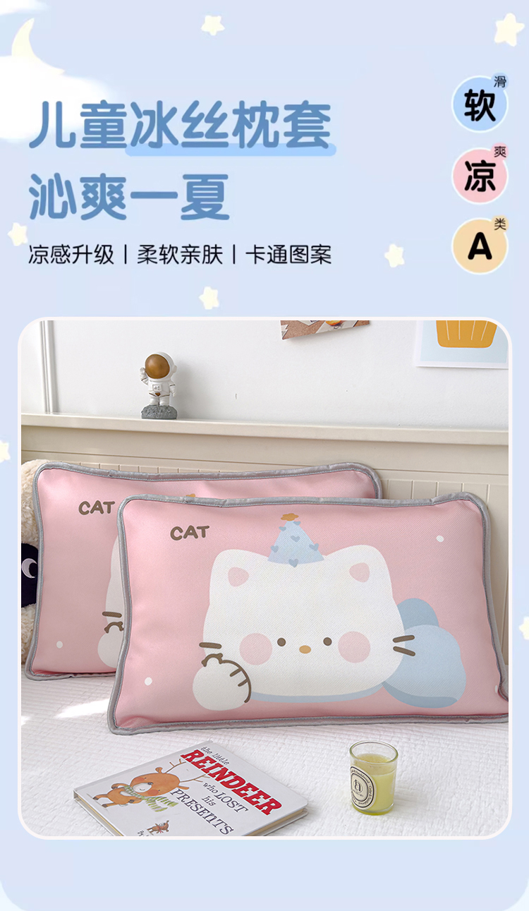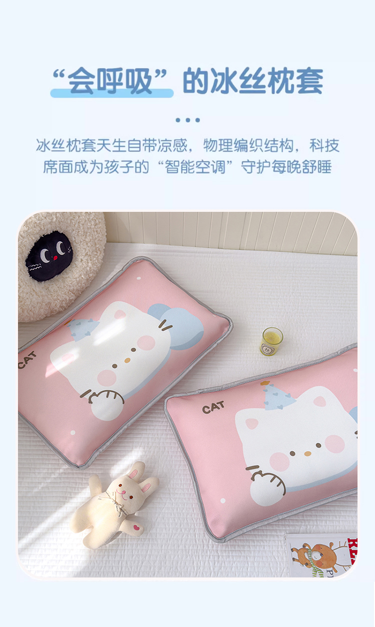 丽美人家纺 2025新款儿童冰丝枕套 生日猫