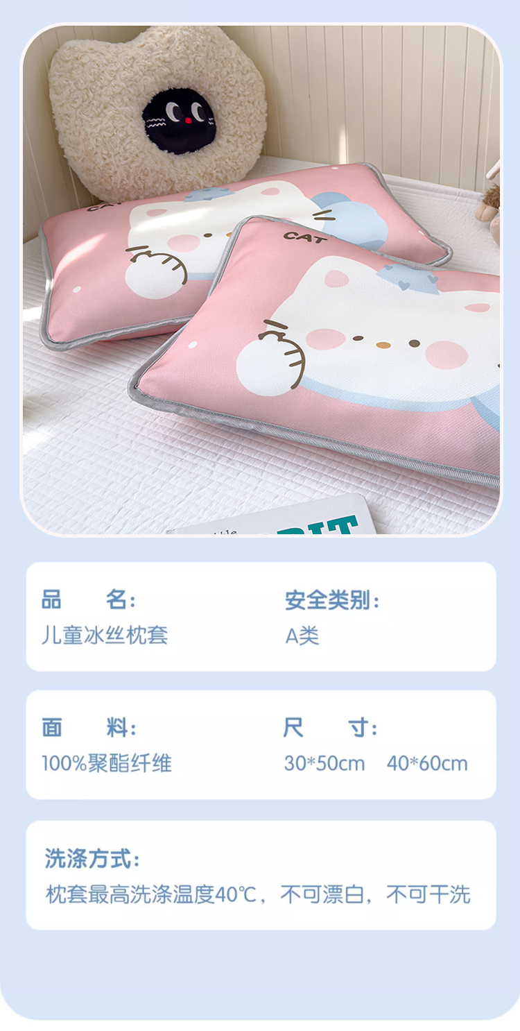 商品名称:丽美人家纺 2025新款儿童冰丝枕套 生日猫