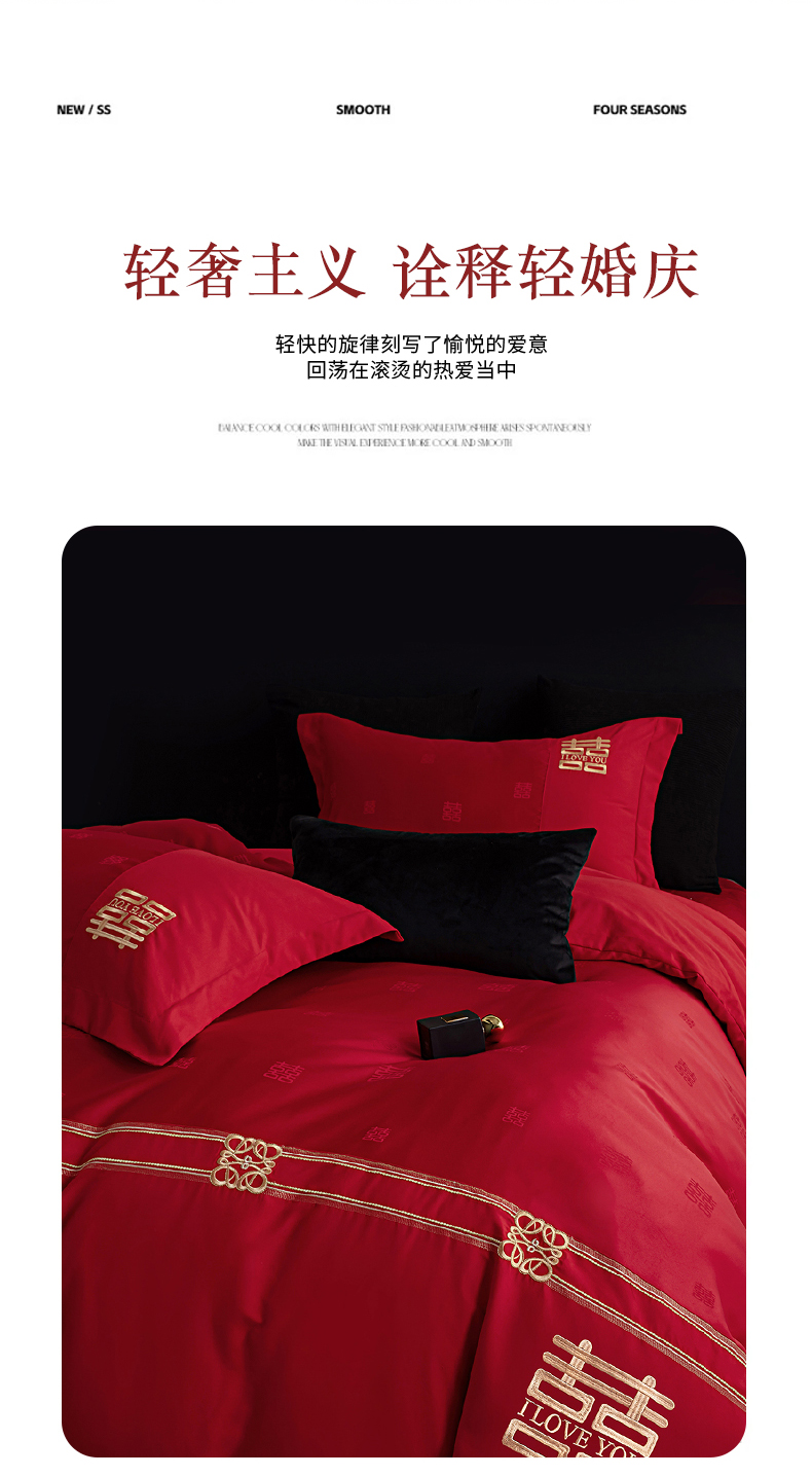 商品名称:卓缦家纺 2025新款提花刺绣婚庆四件套 喜悦