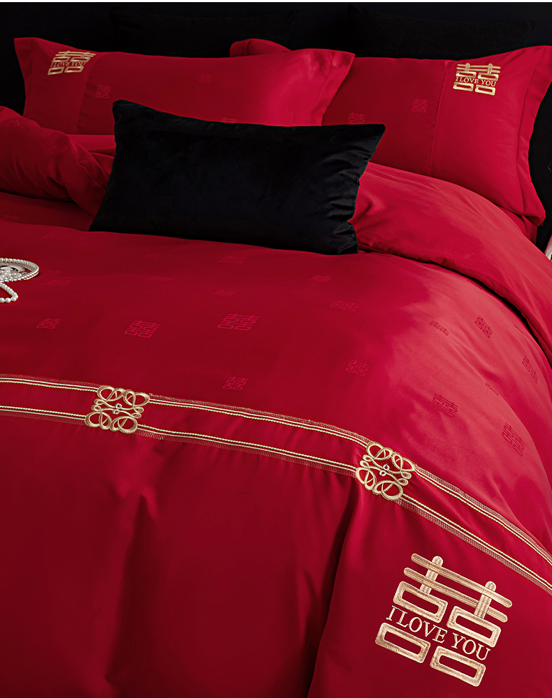 卓缦家纺 2025新款提花刺绣婚庆四件套 喜悦