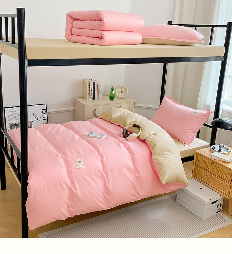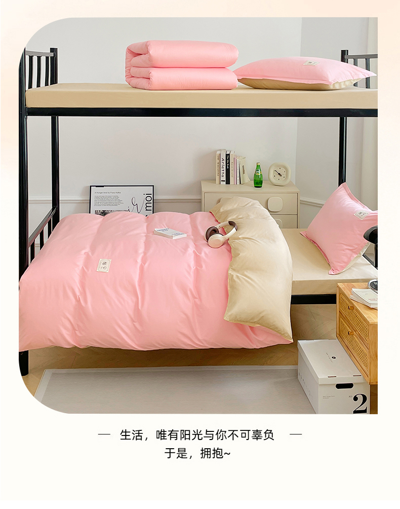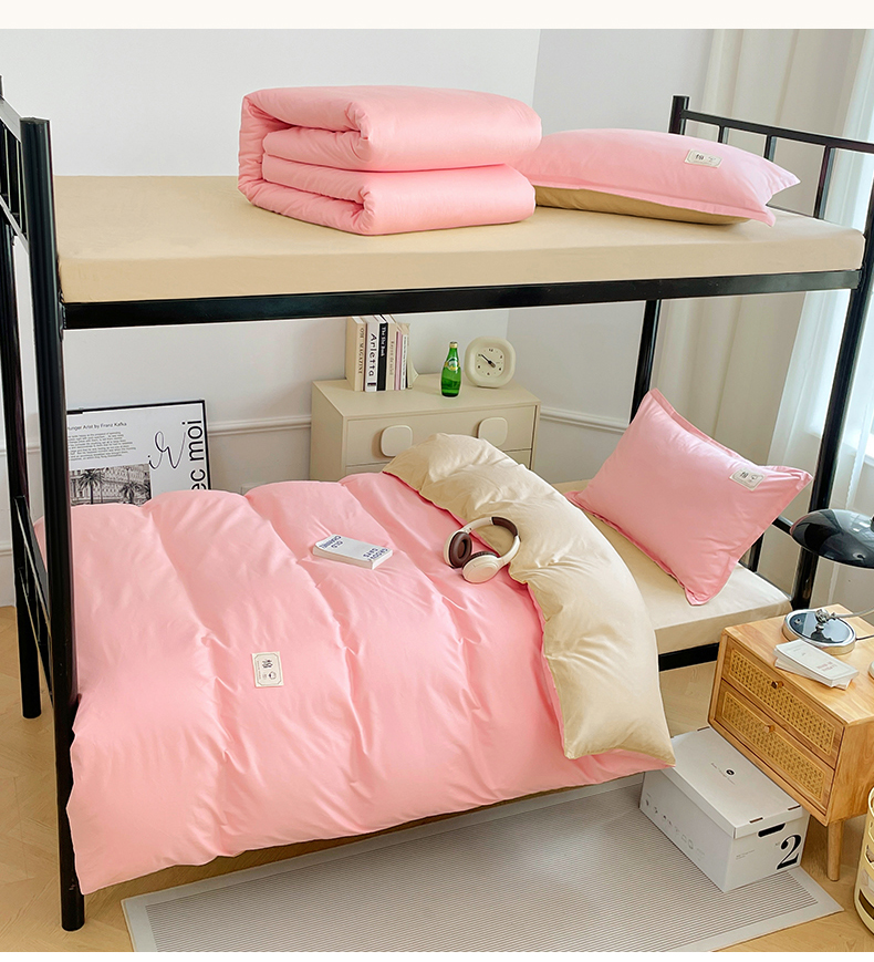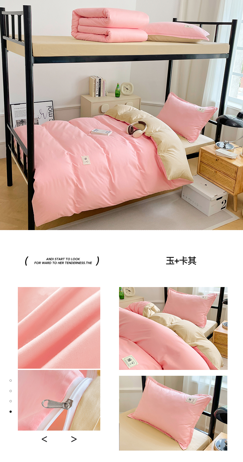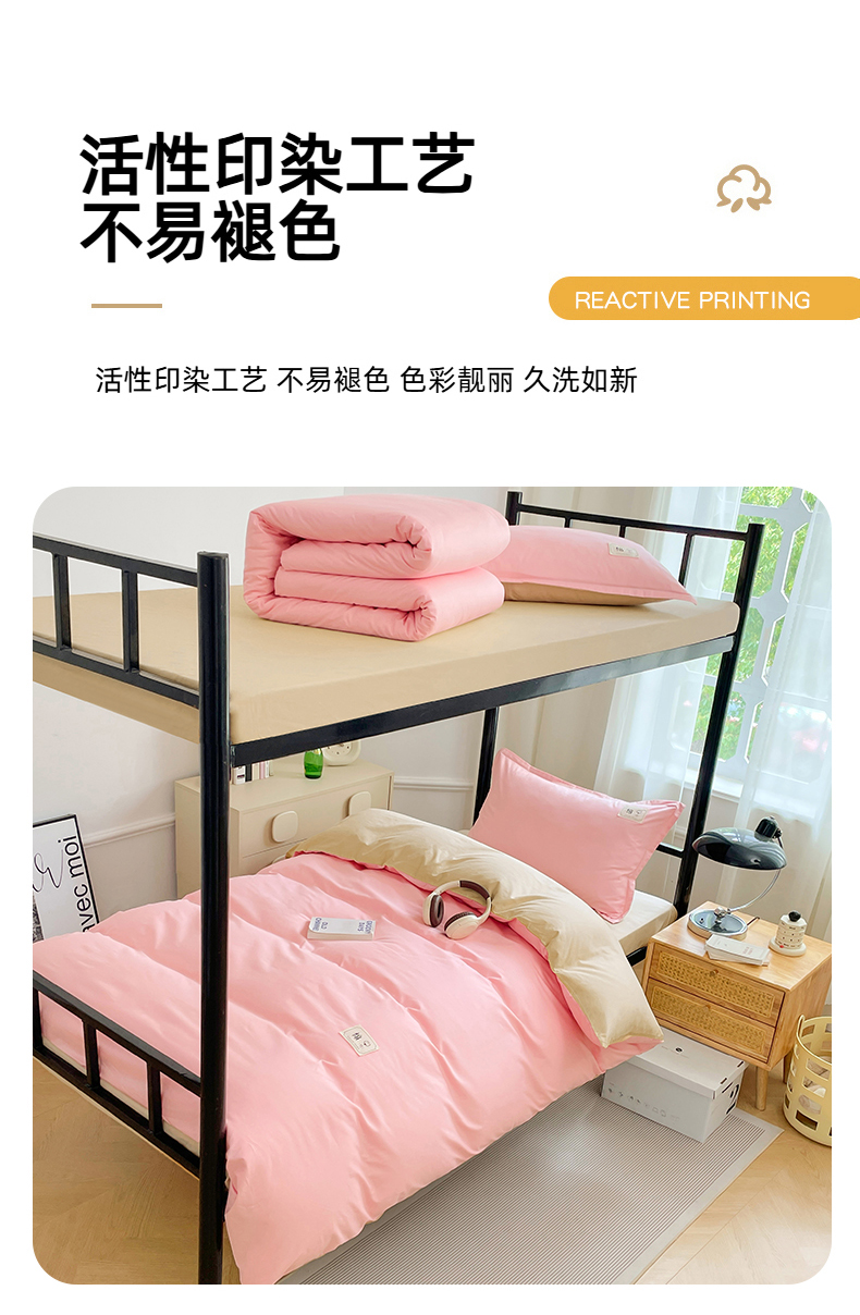 锦润家纺2025新款13372全棉纯色双拼学生宿舍三件套六件套