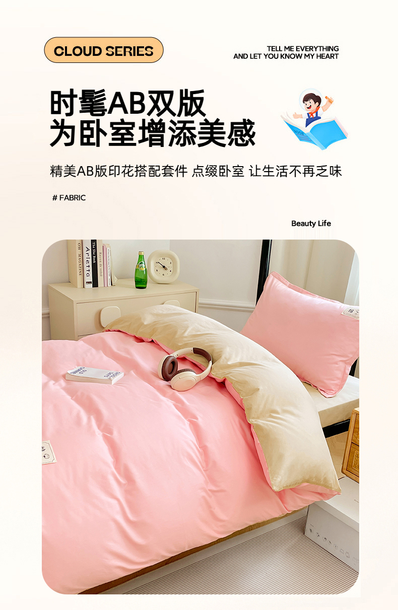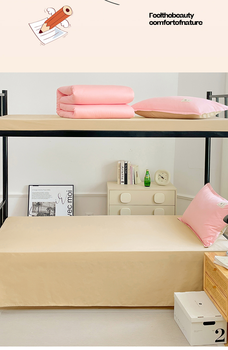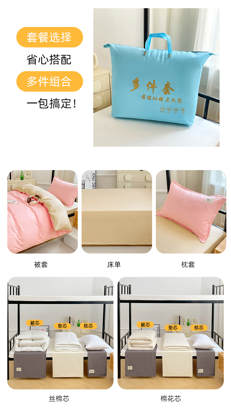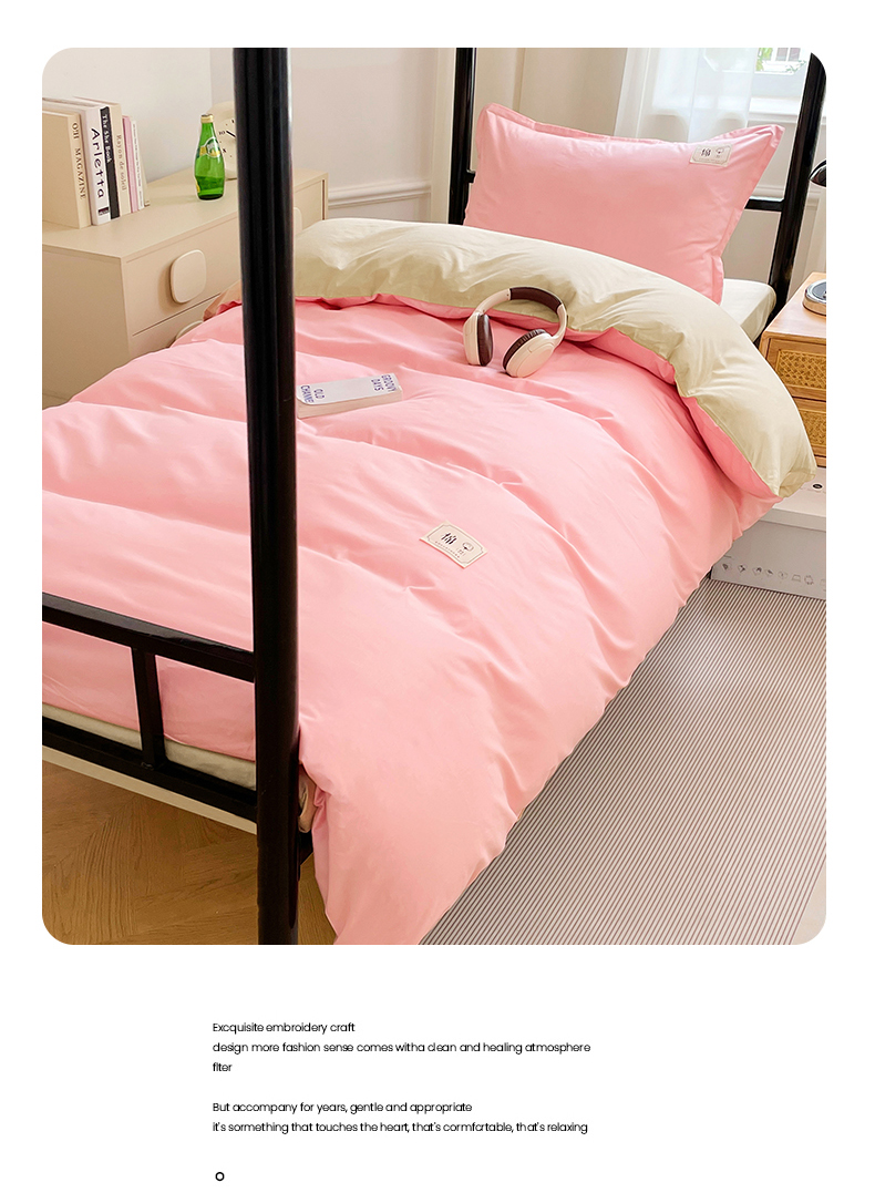 锦润家纺2025新款13372全棉纯色双拼学生宿舍三件套六件套
