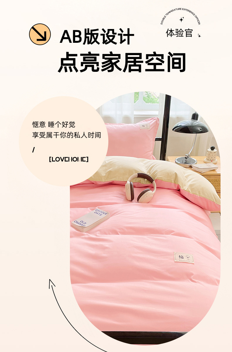 • 91家纺网 家纺一手货源 找家纺 锦润家纺2025新款13372全棉纯色双拼学生宿舍三件套六件套