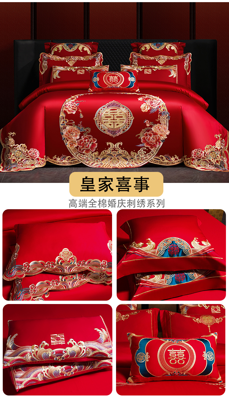 当前位置: 91家纺网 > 商品网购 > 床品套件 > 四件套 > 婚庆四件套 > 用心 2025新款婚庆全棉刺绣四件套多件套系列皇家喜事