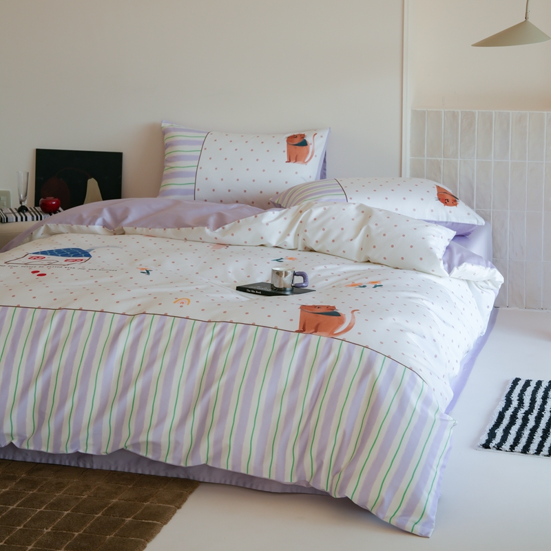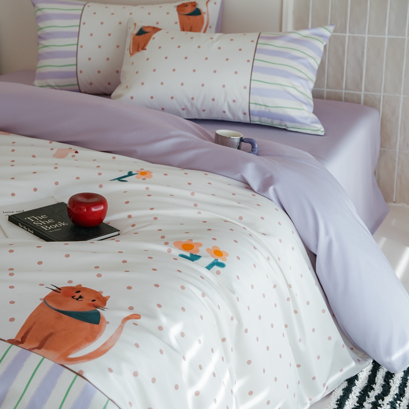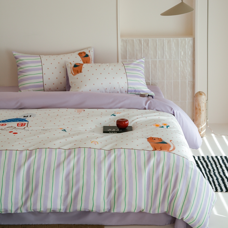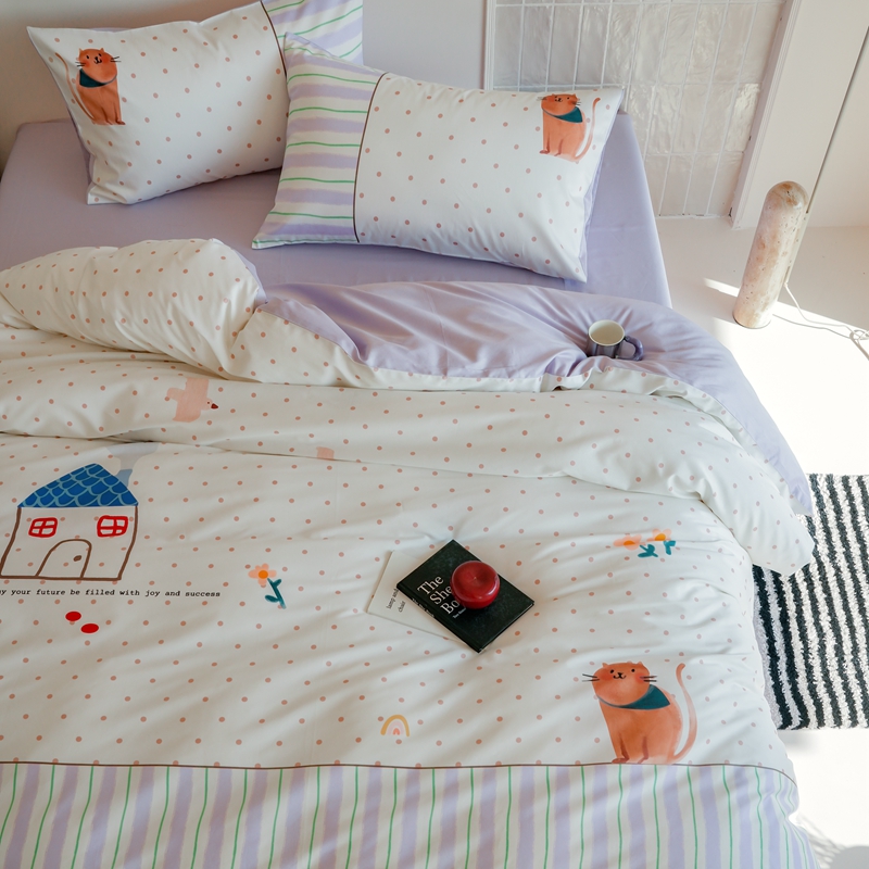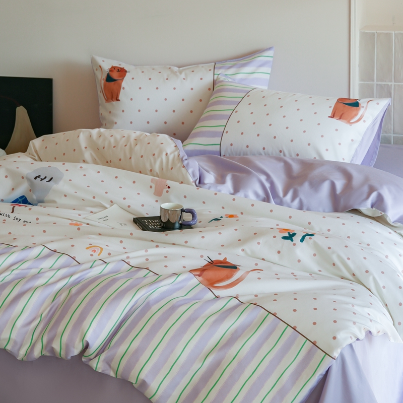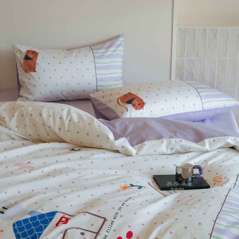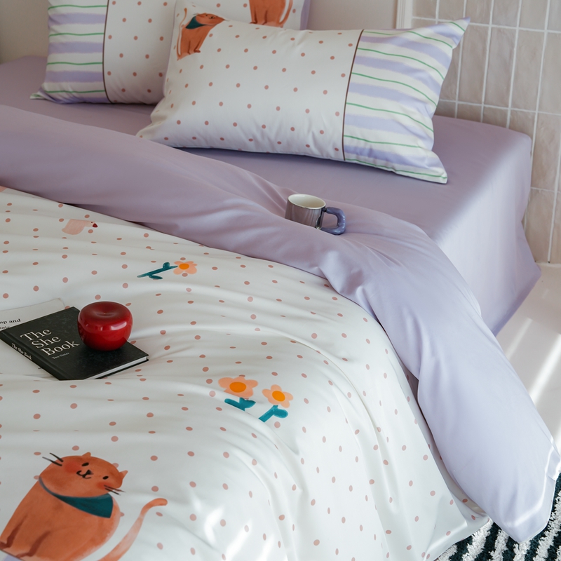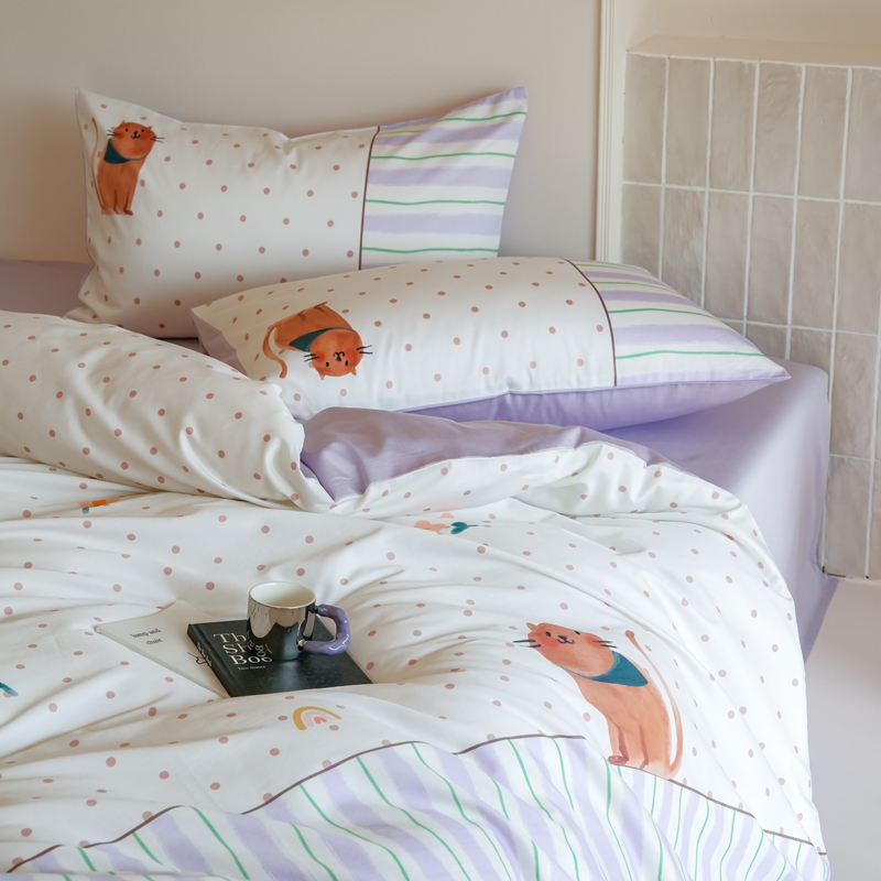 当前位置: 91家纺网 > 商品网购 > 床品套件 > 四件套 > 长绒棉四件套 > (总)云胡 2025新款A类100%长绒棉纯棉四件套-猫咪日记