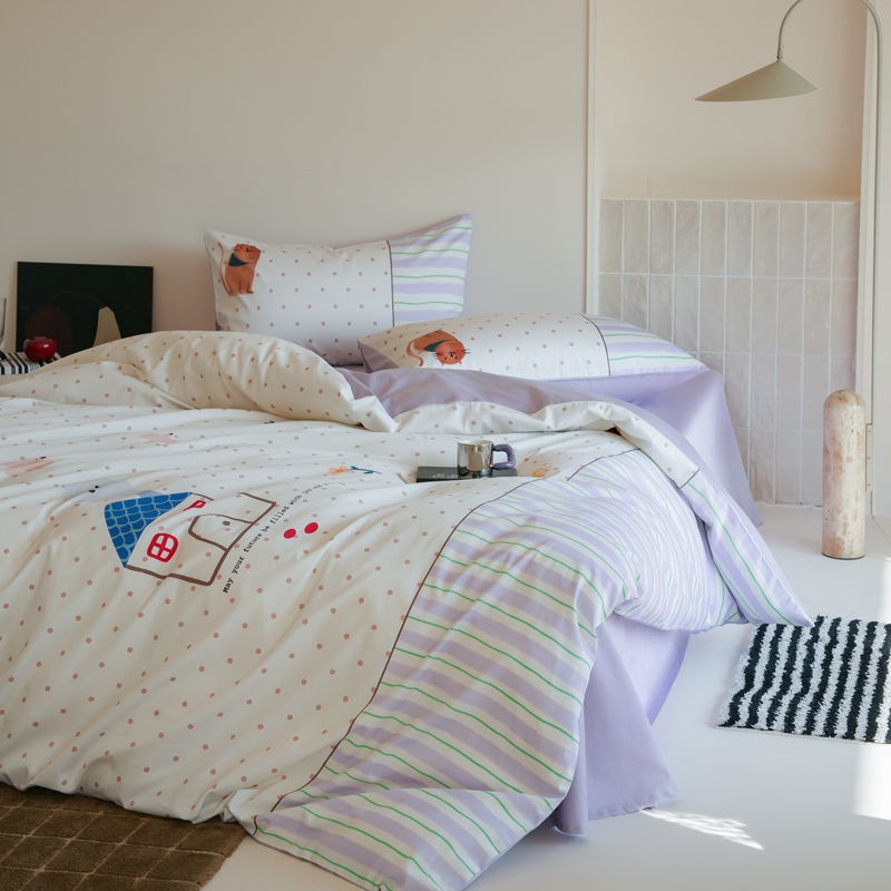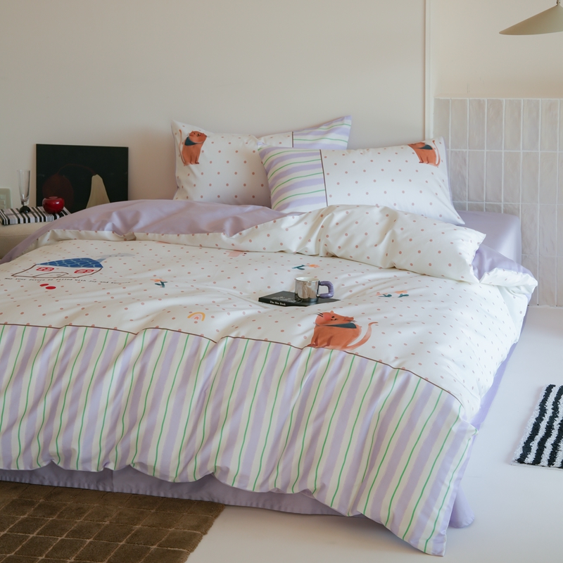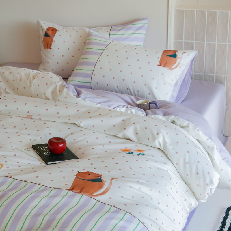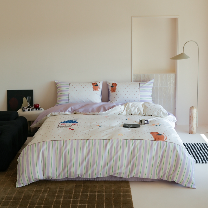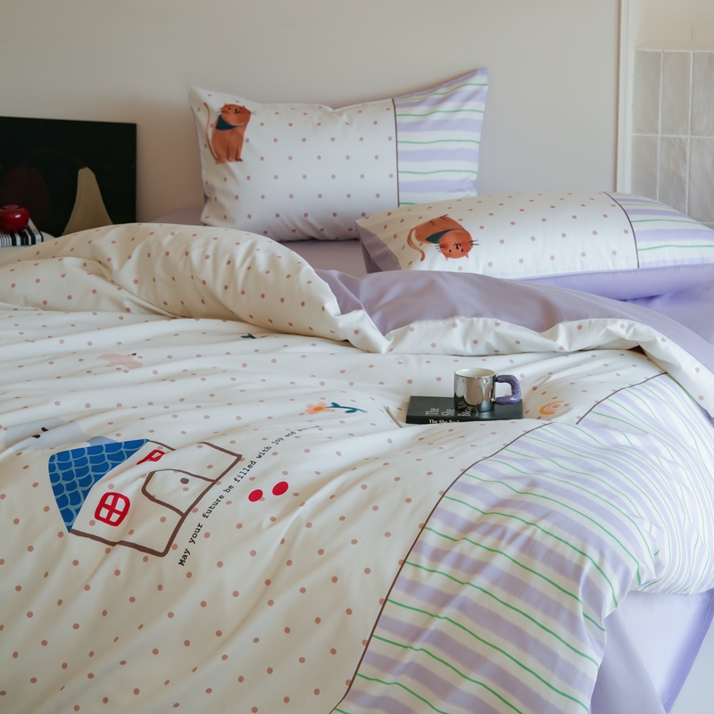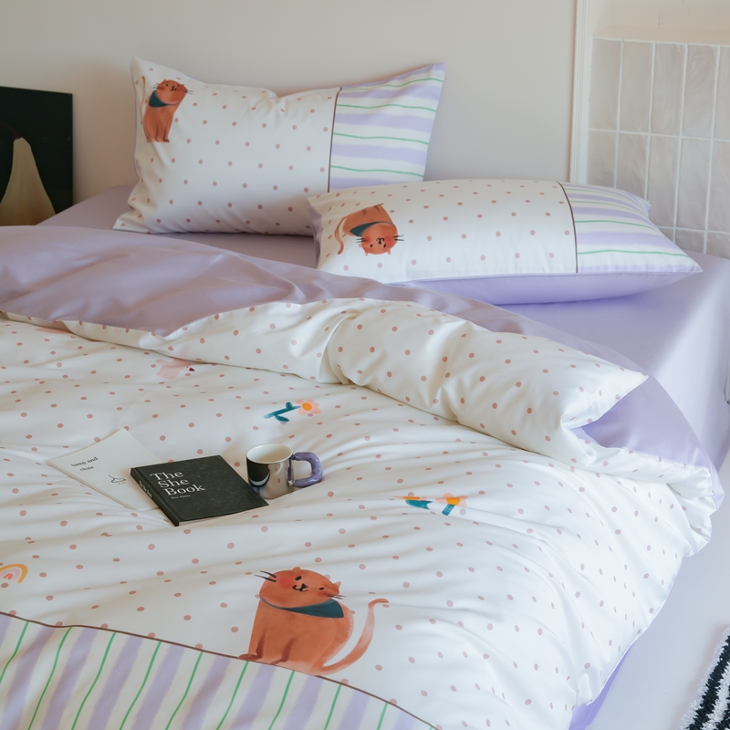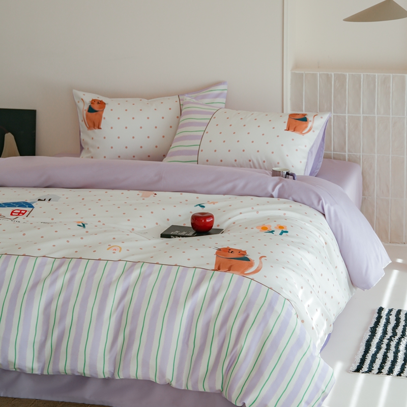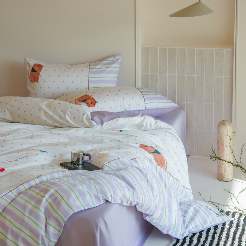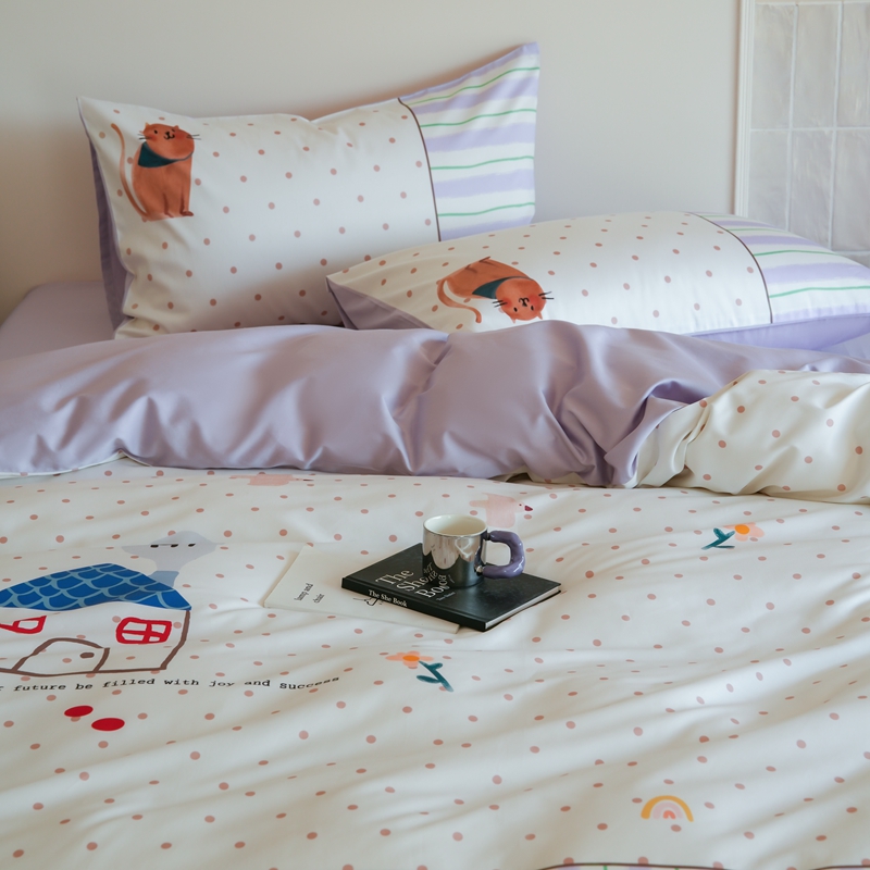当前位置: 91家纺网 > 商品网购 > 床品套件 > 四件套 > 长绒棉四件套 > (总)云胡 2025新款A类100%长绒棉纯棉四件套-猫咪日记