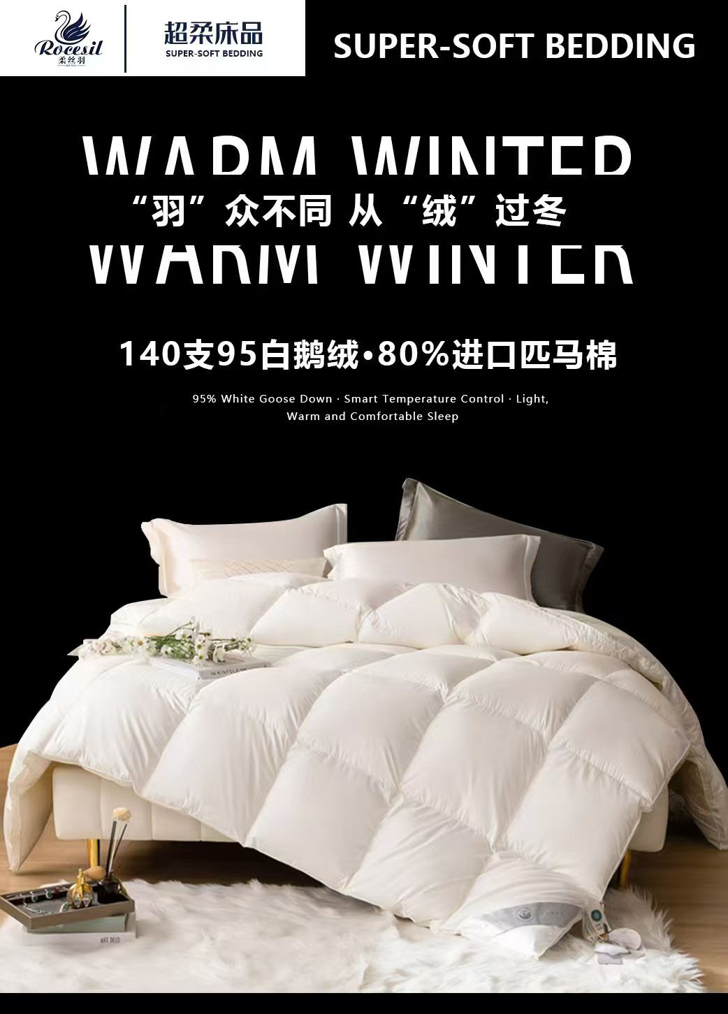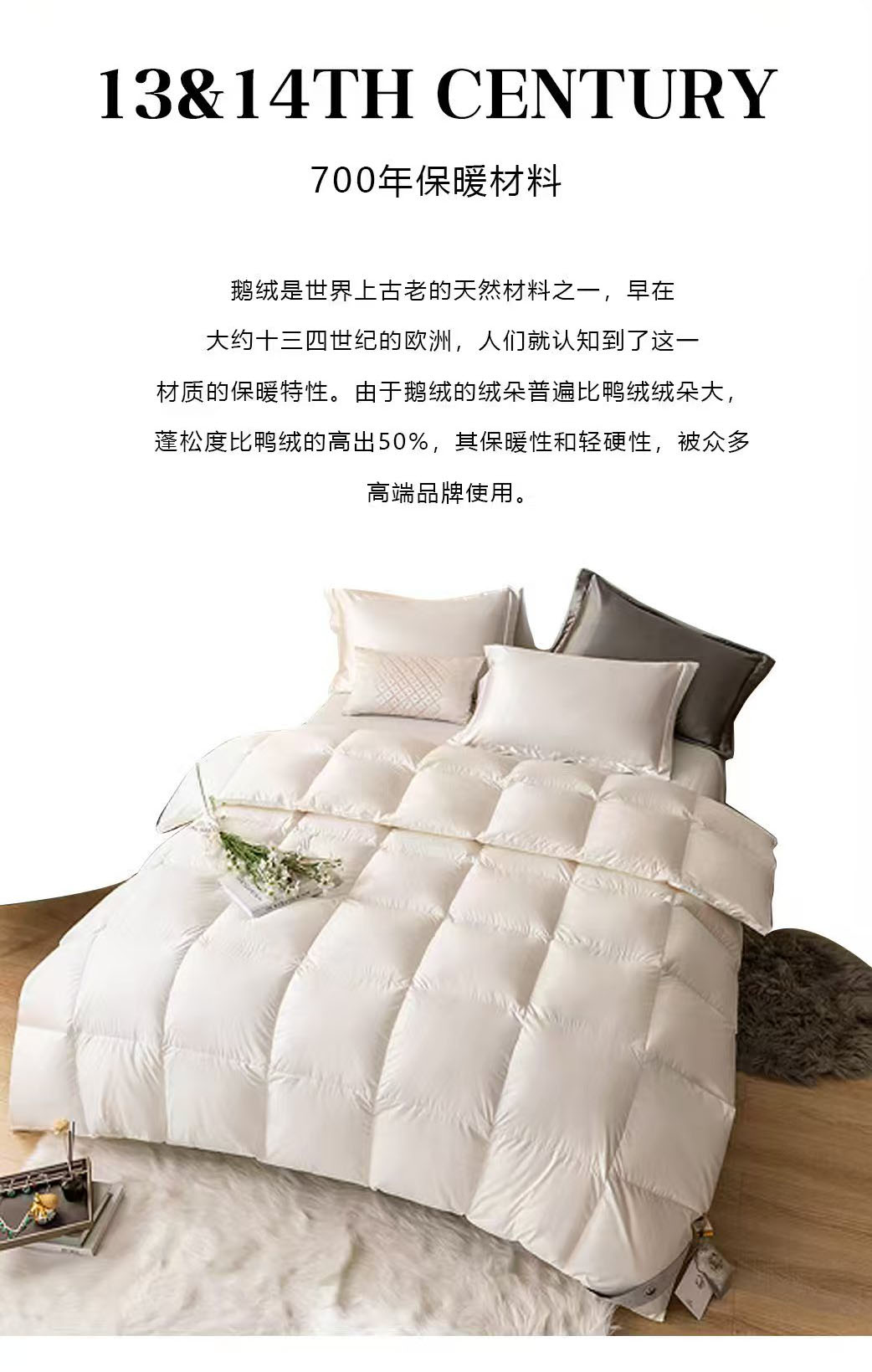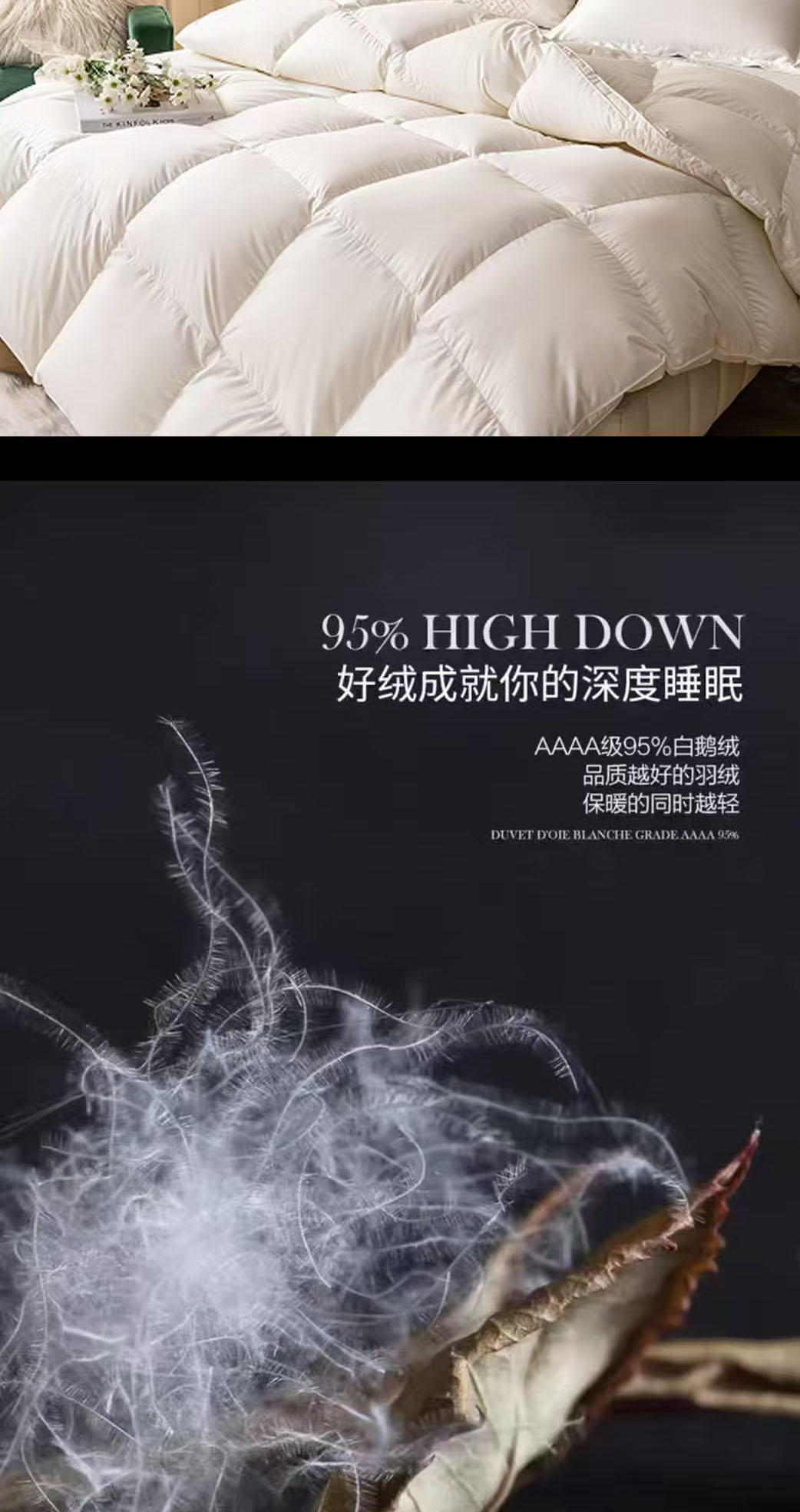商品名称:圣梦莱羽绒家纺 2025新款140支超薄匹马棉羽绒冬被 95鹅绒被子加厚被芯羽绒(假一赔十万元) 白色