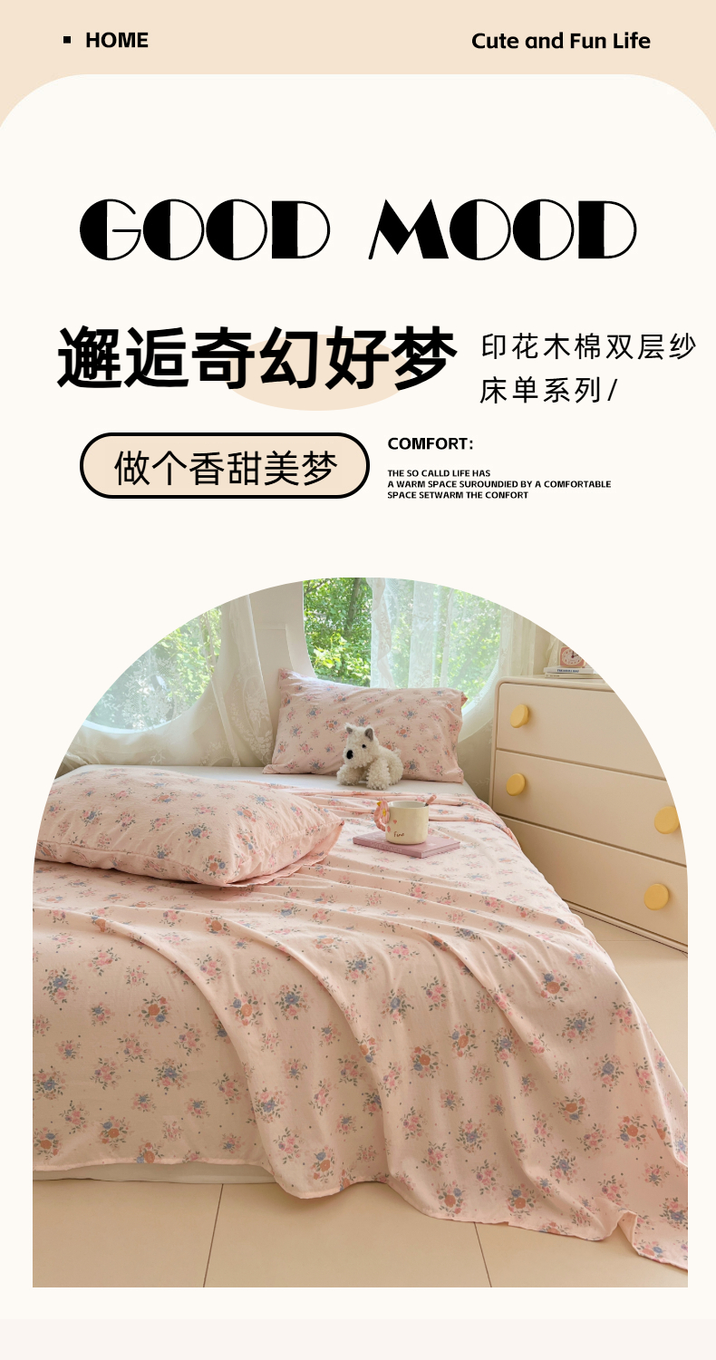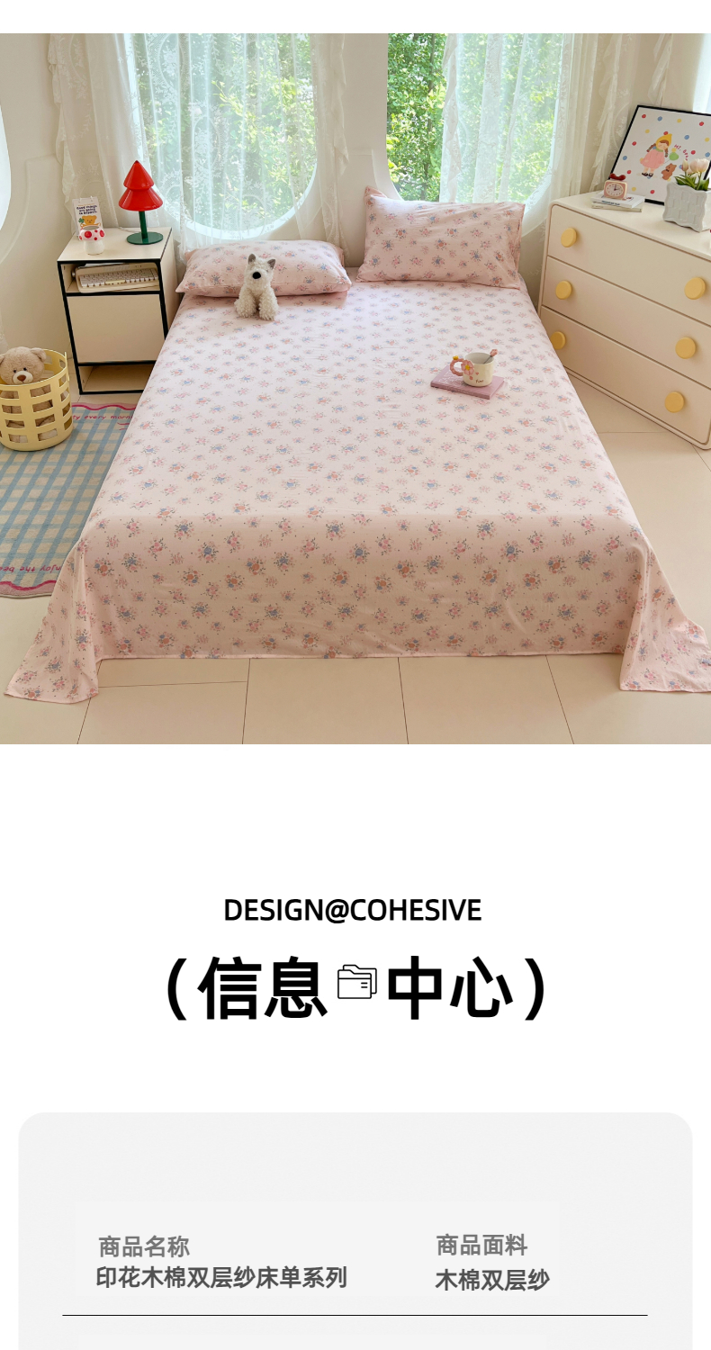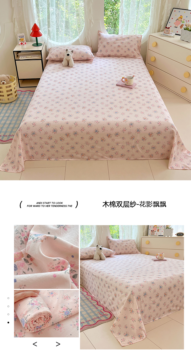 卡迪熊家纺 2025新款印花木m双层纱床单系列 木m双层纱-花影飘飘