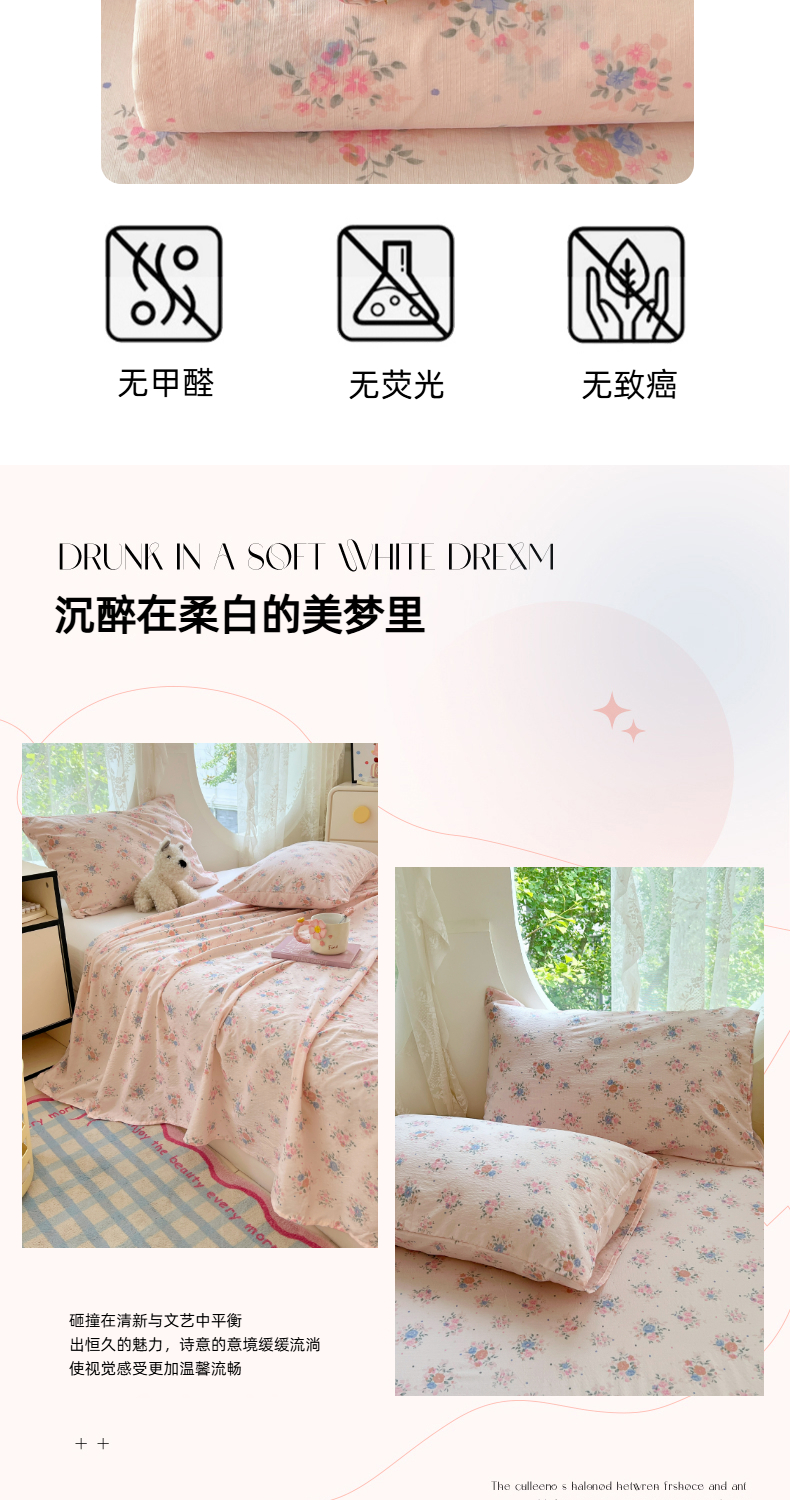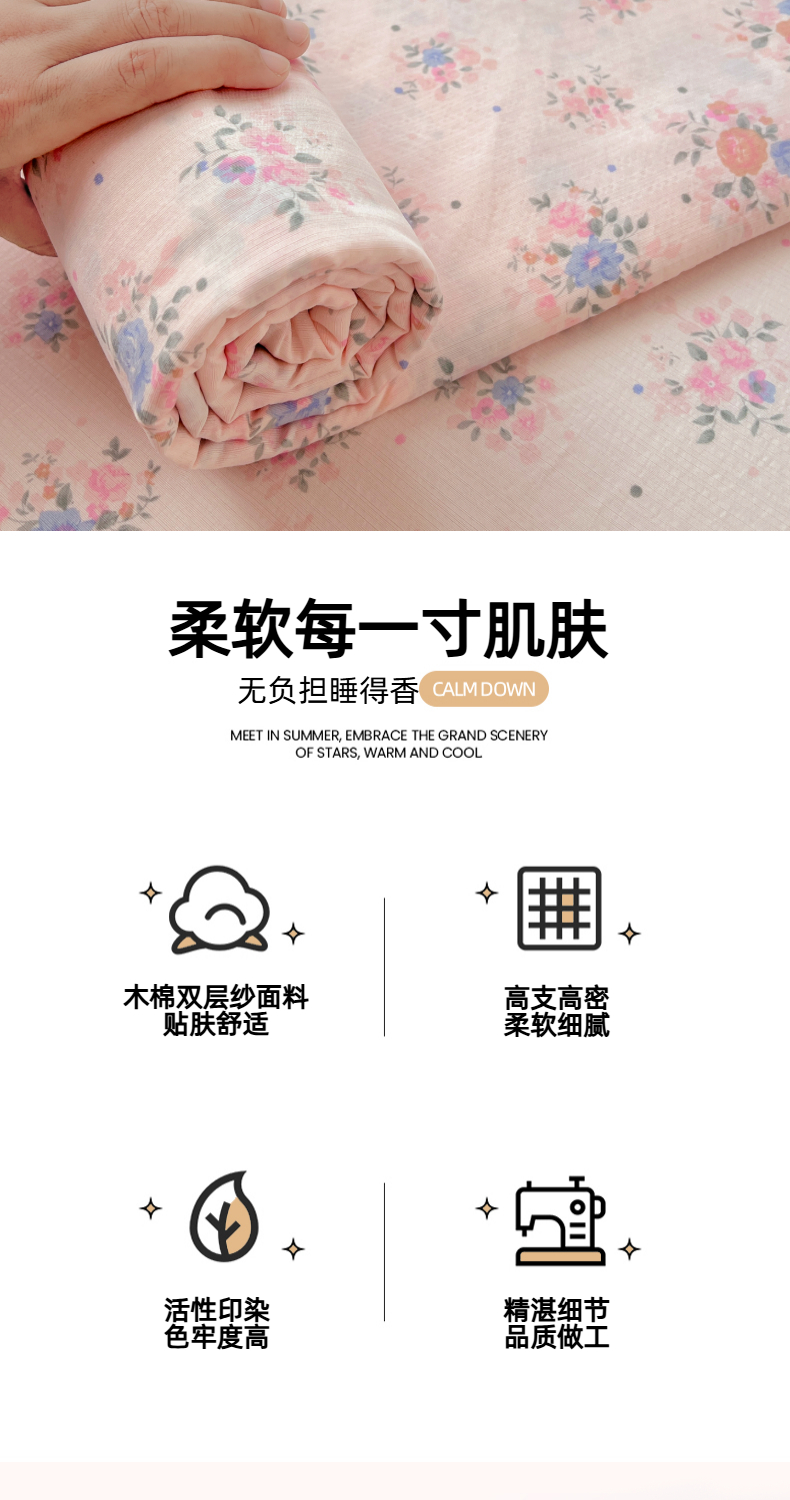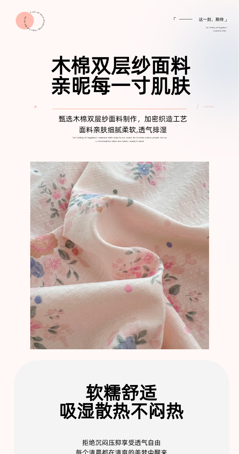卡迪熊家纺 2025新款印花木m双层纱床单系列 木m双层纱-花影飘飘