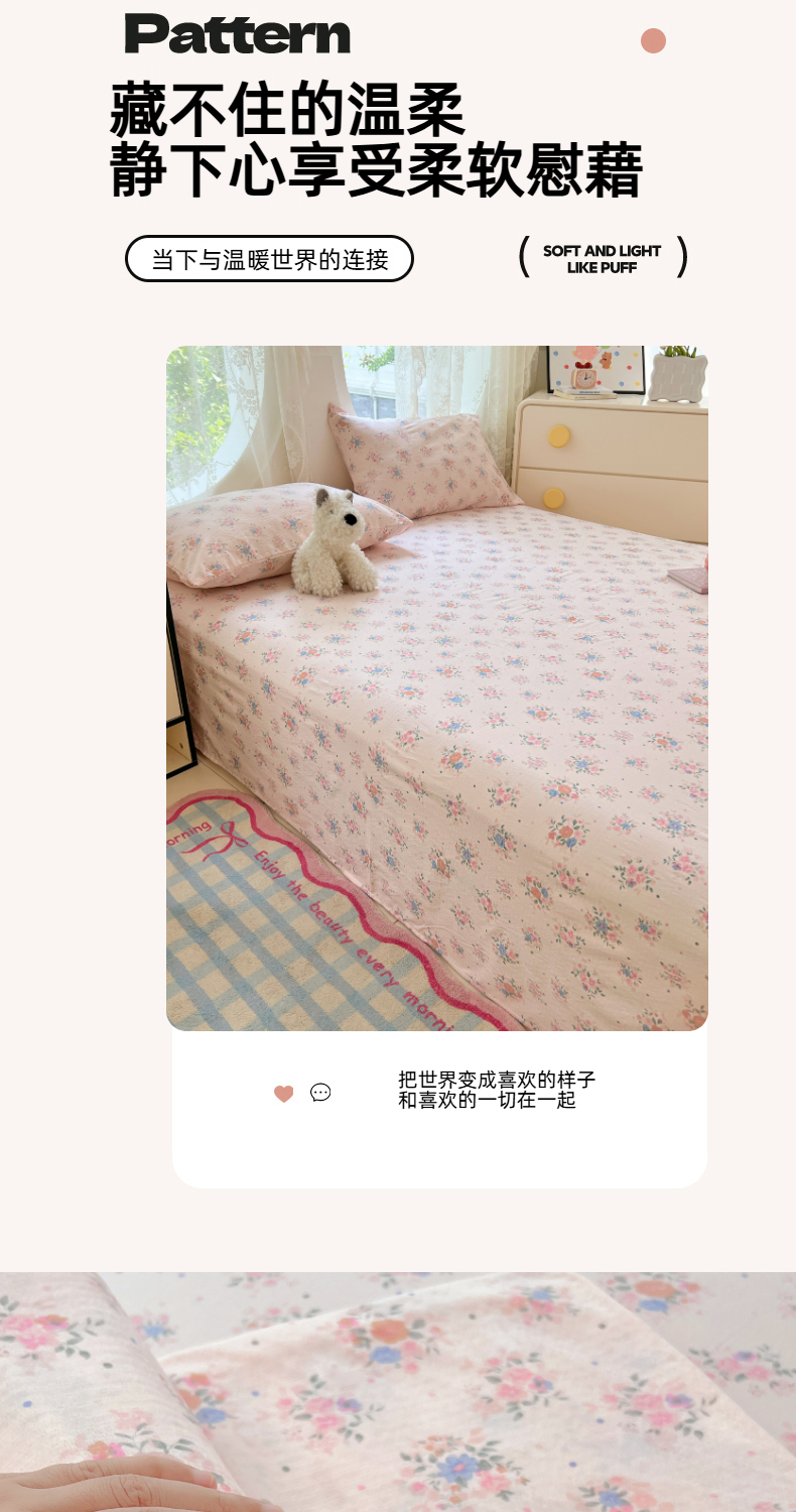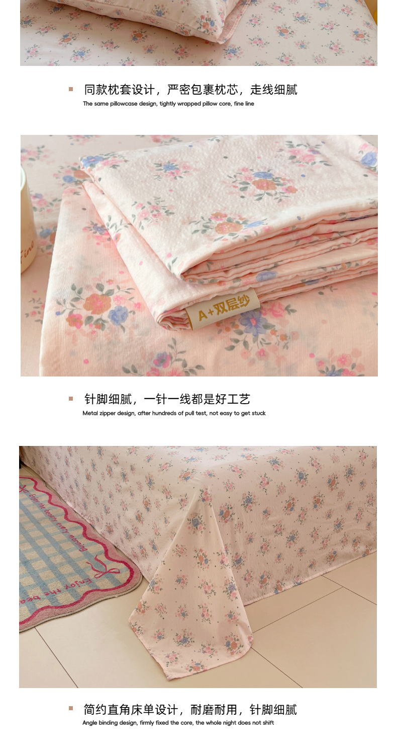 (总)卡迪熊家纺 2025新款水洗双层纱双拼碎花四件套,爱心蝴蝶结,彩色波点,多彩心情,分格棋盘,格纹猫咪,黑色波点,花园兔子,欢乐聚会,欢乐小狗,可爱猫猫,腊肠狗狗,满满花海,美好心情,藤条花蔓,甜点小屋,甜甜小兔,甜心猫咪,晚安世界,小花朵朵,小小樱桃